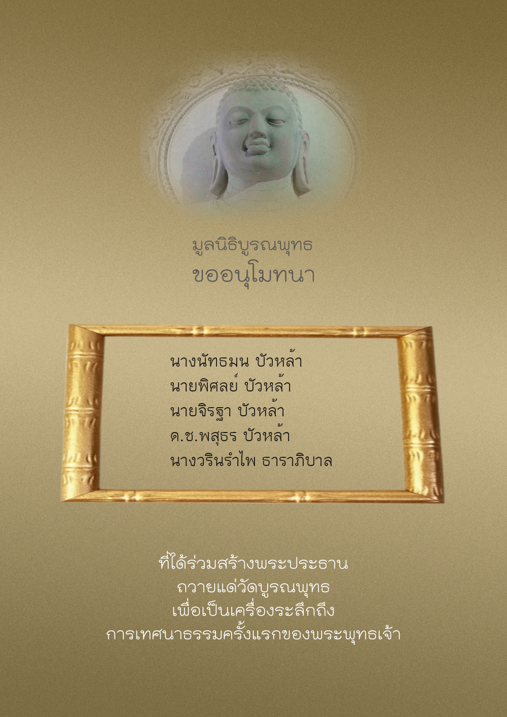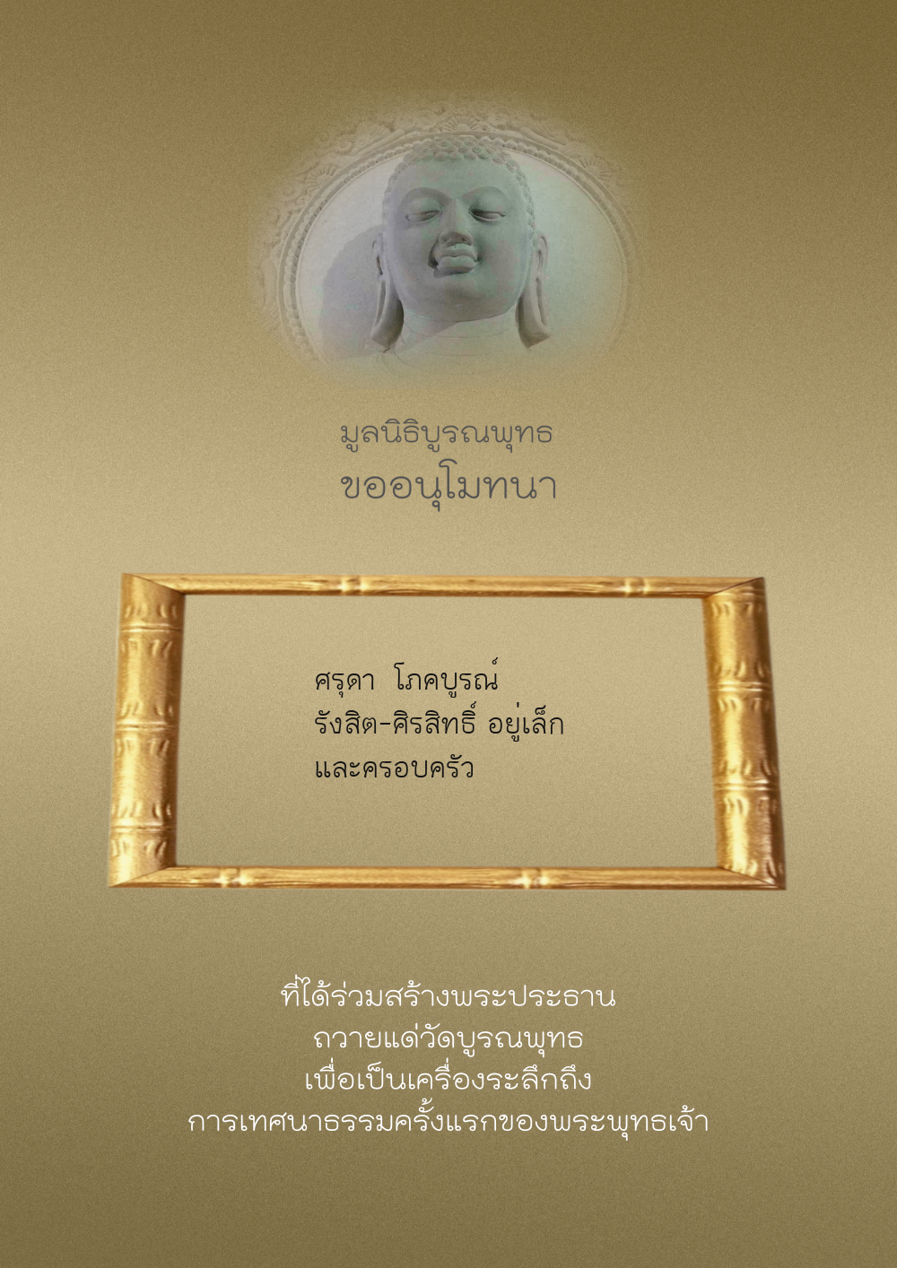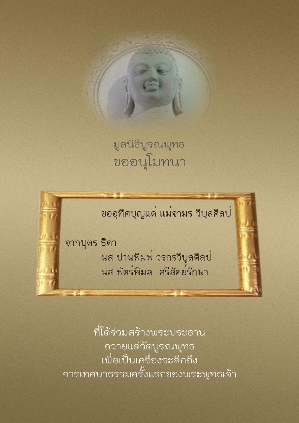| ลำดับที่ 44 | ศุภะกรณี ตั้งจิตนบและครอบครัว | 1,000.00 บาท | ภาพที่ระลึก |