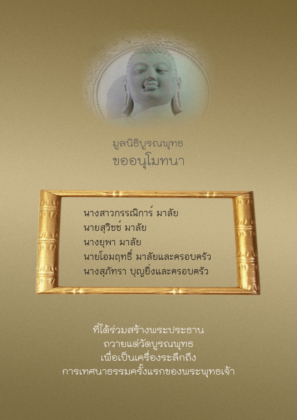 | ลำดับที่ 40 | อรอุมา ชลัมพุชและครอบครัว | 500.00 บาท | ภาพที่ระลึก |