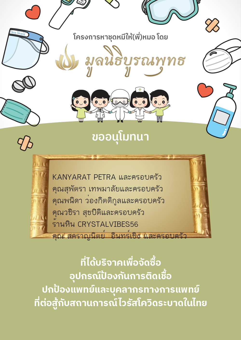| ลำดับที่ 2030 | แมสของแท้ให้พี่หมอ | 1,000.00 บาท | ภาพที่ระลึก |