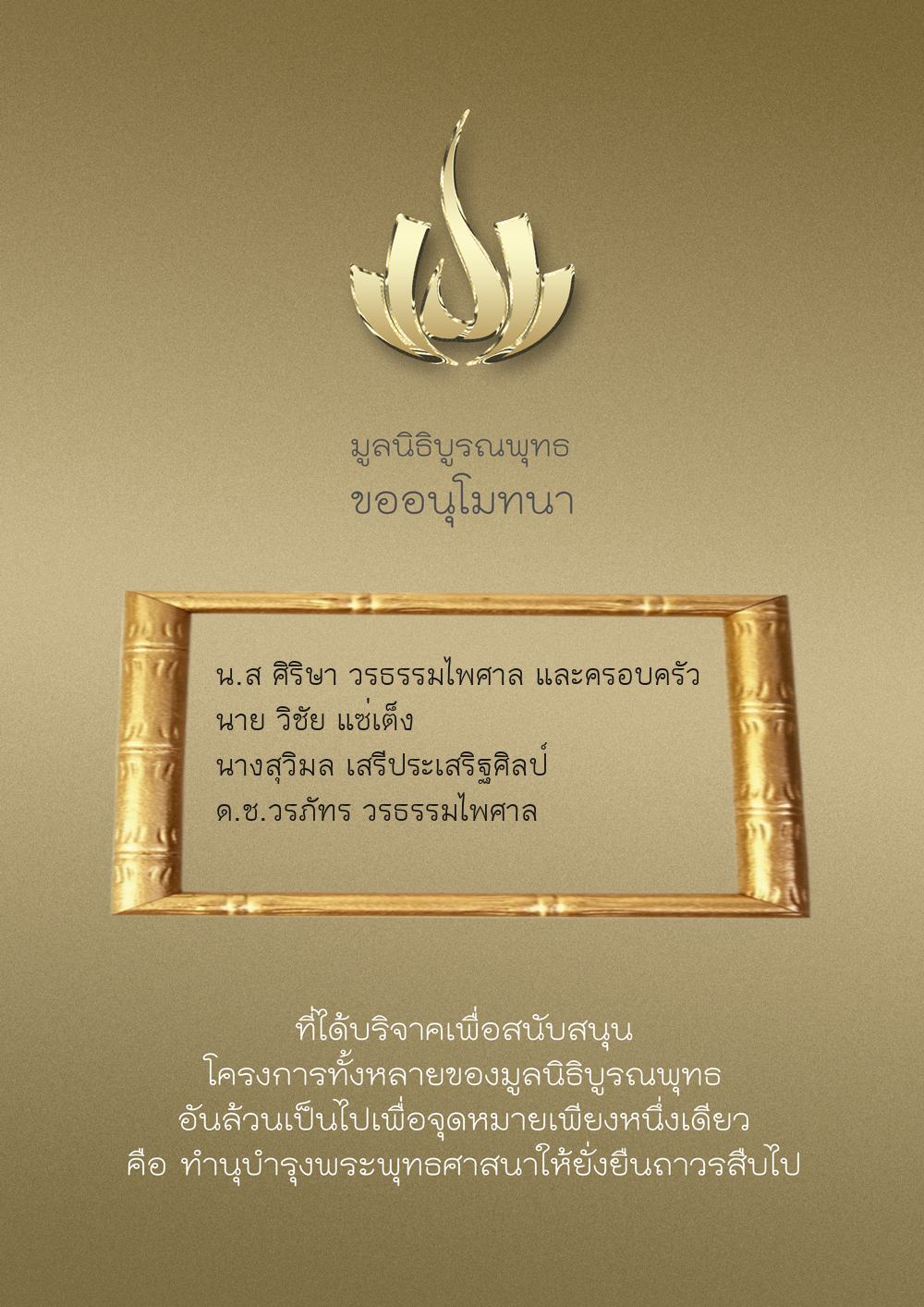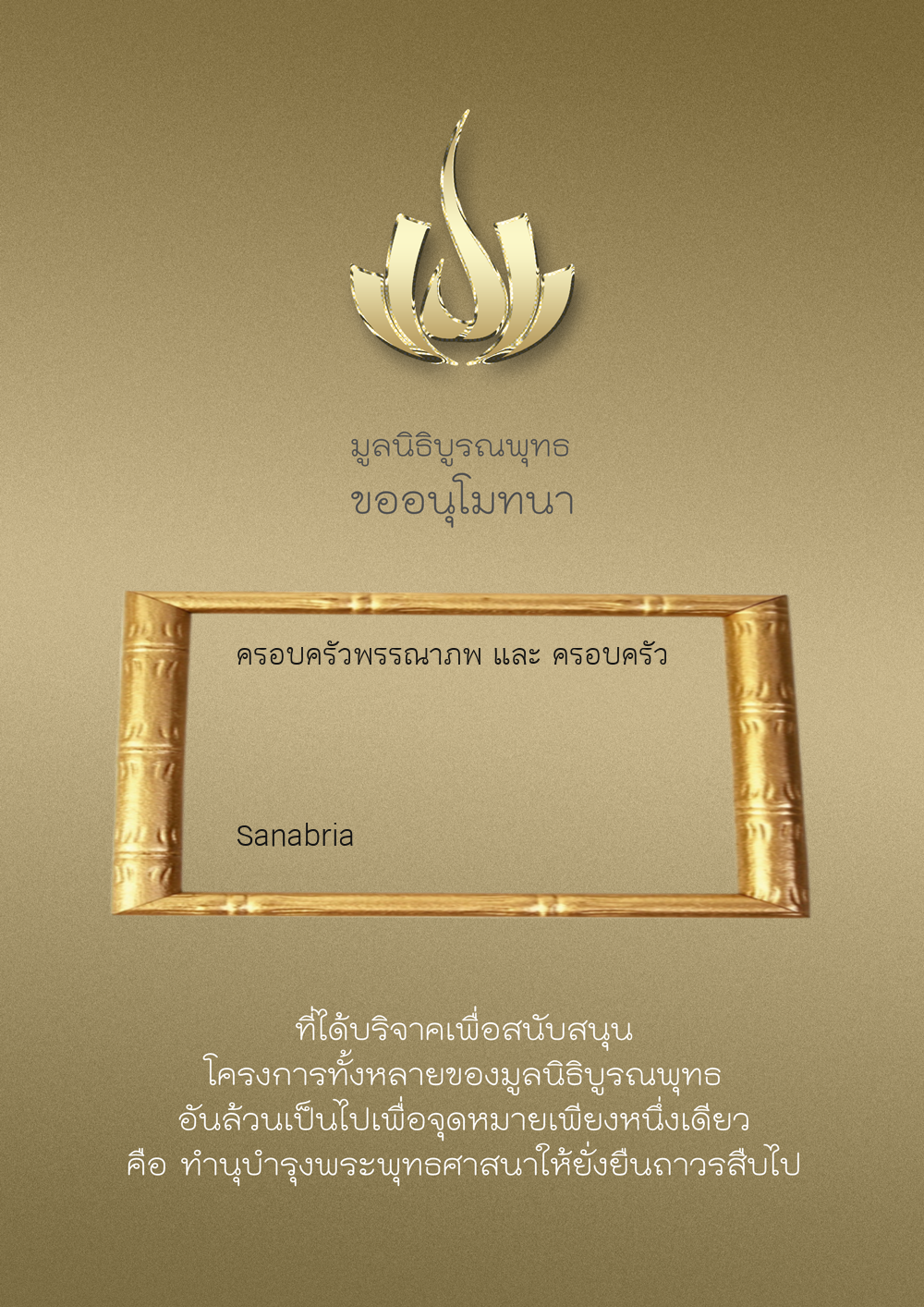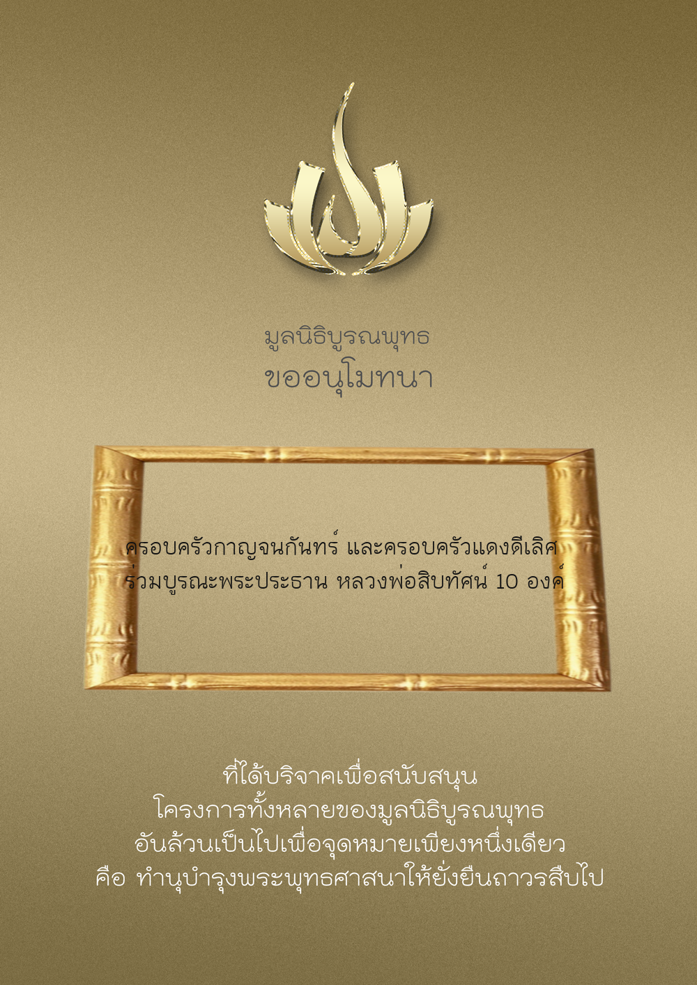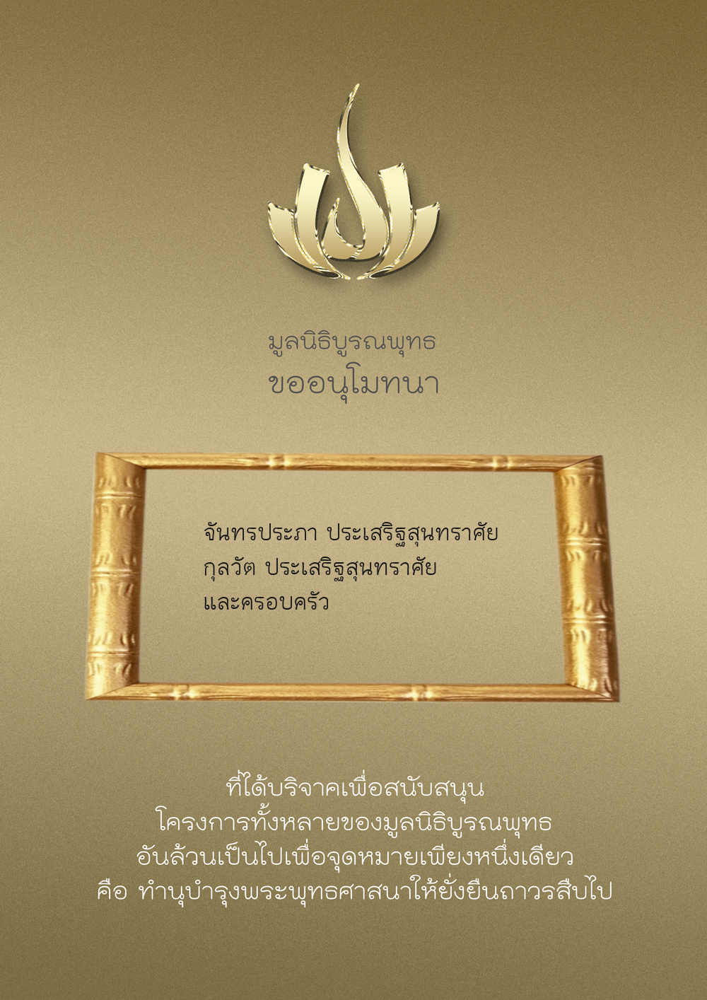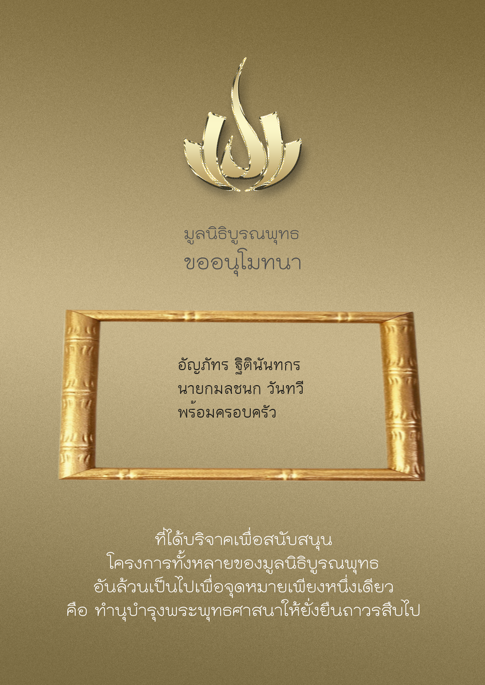 | ลำดับที่ 9949 | ณัฐพร ขันทเขตต์ และ ครอบครัว | 10,000.00 บาท | ภาพที่ระลึก |
