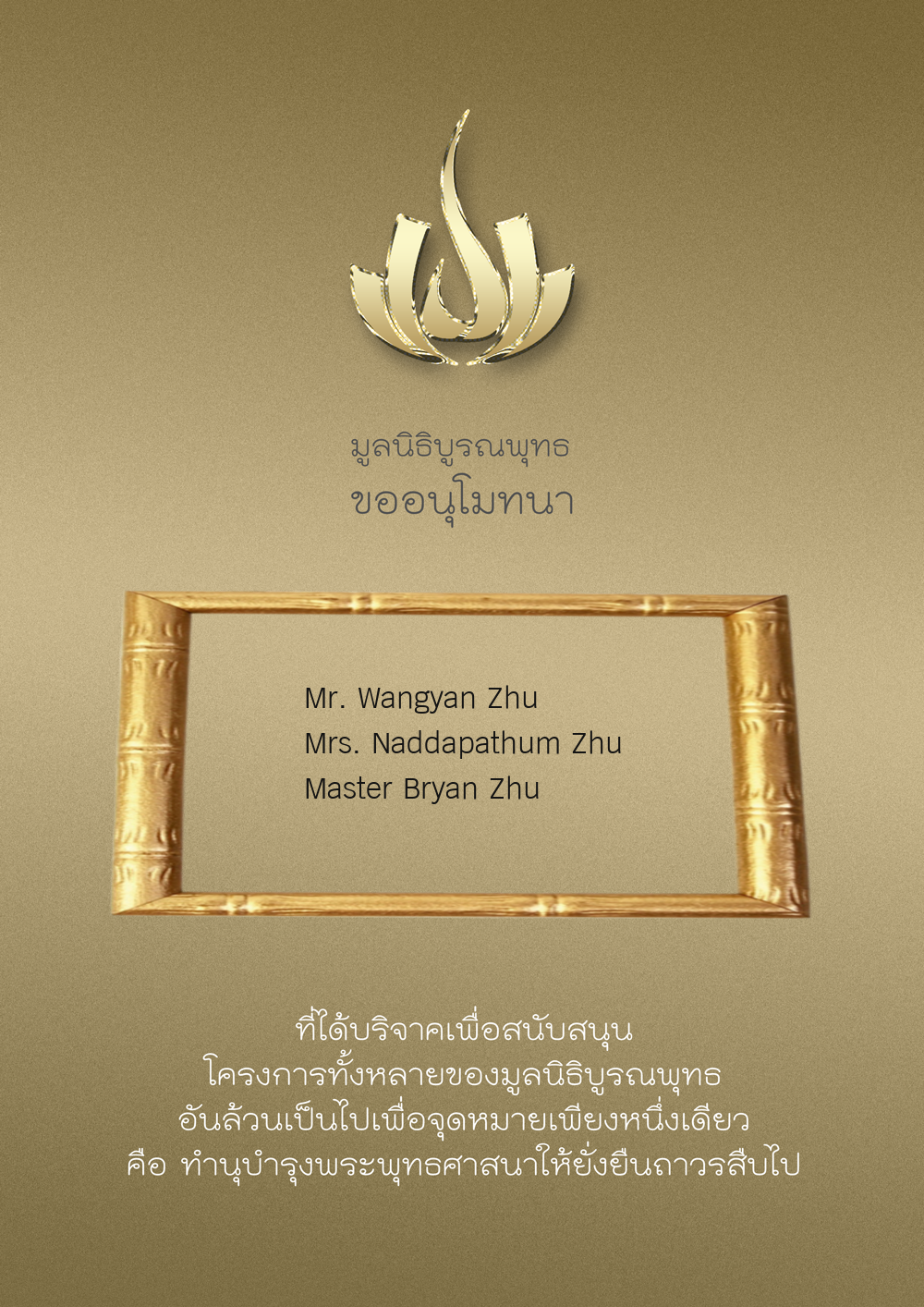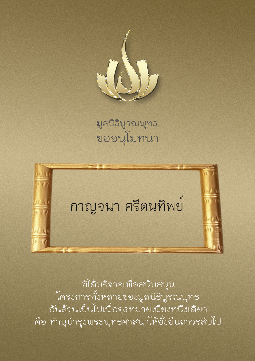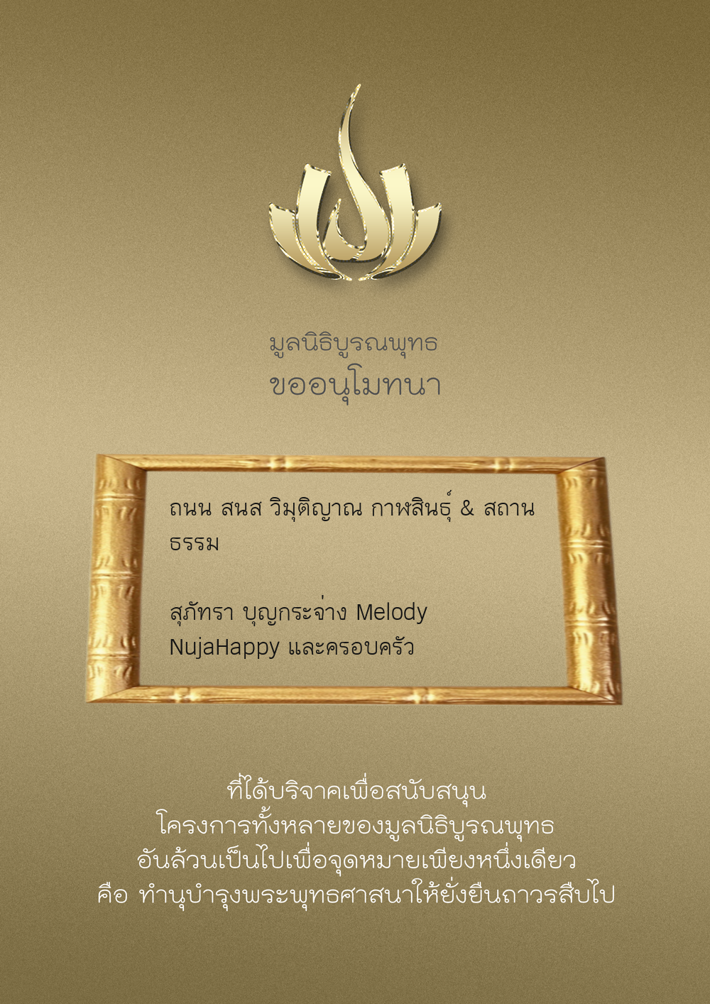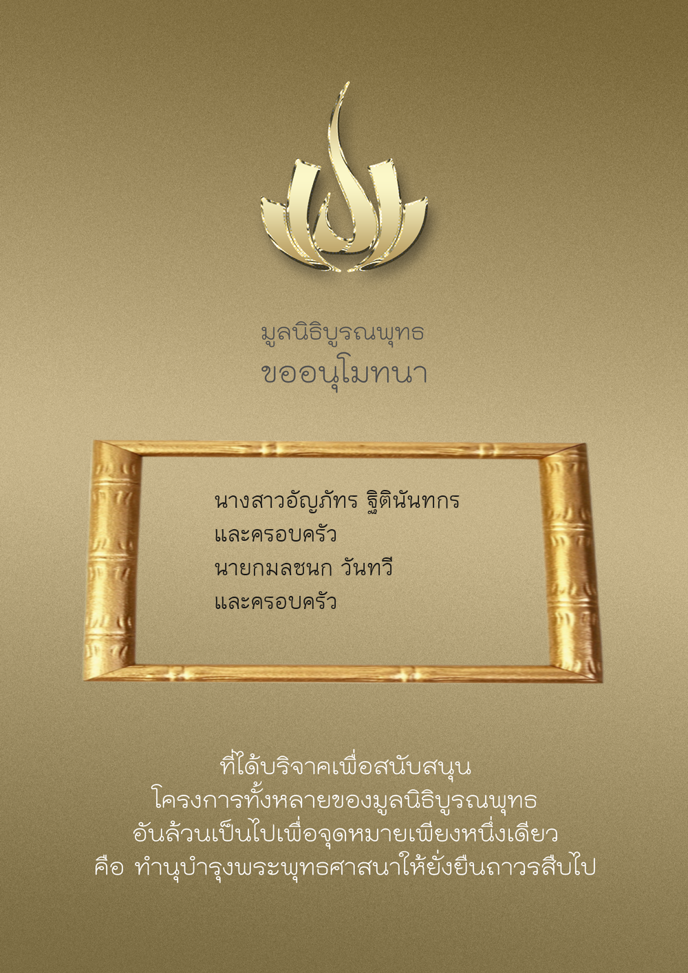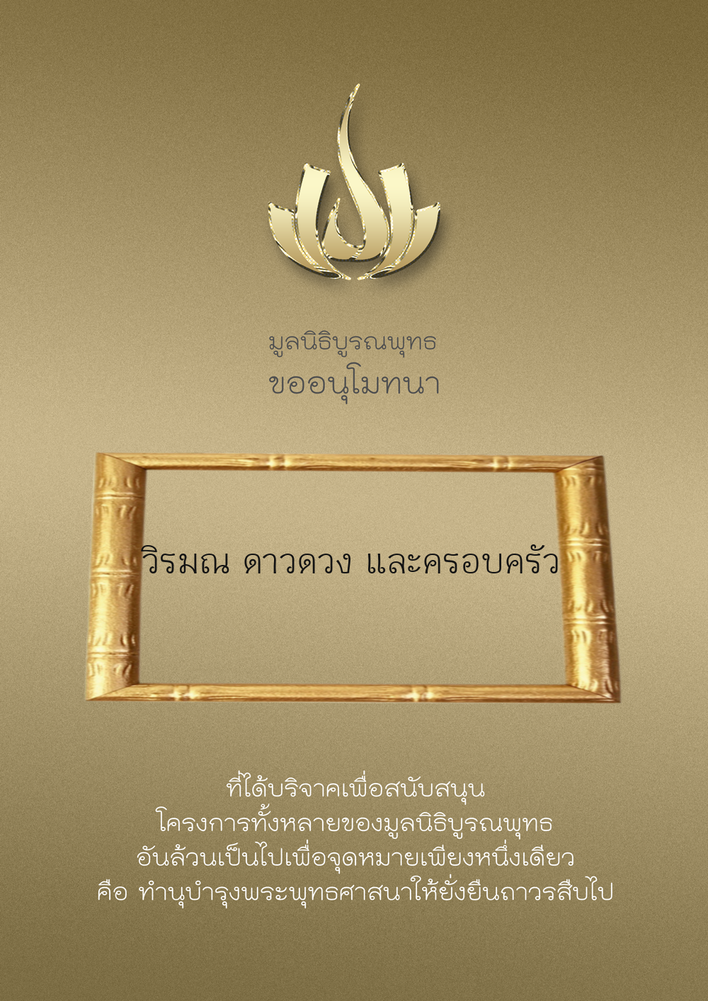| ลำดับที่ 9949 | ณัฐพร ขันทเขตต์ และ ครอบครัว | 10,000.00 บาท | ภาพที่ระลึก |