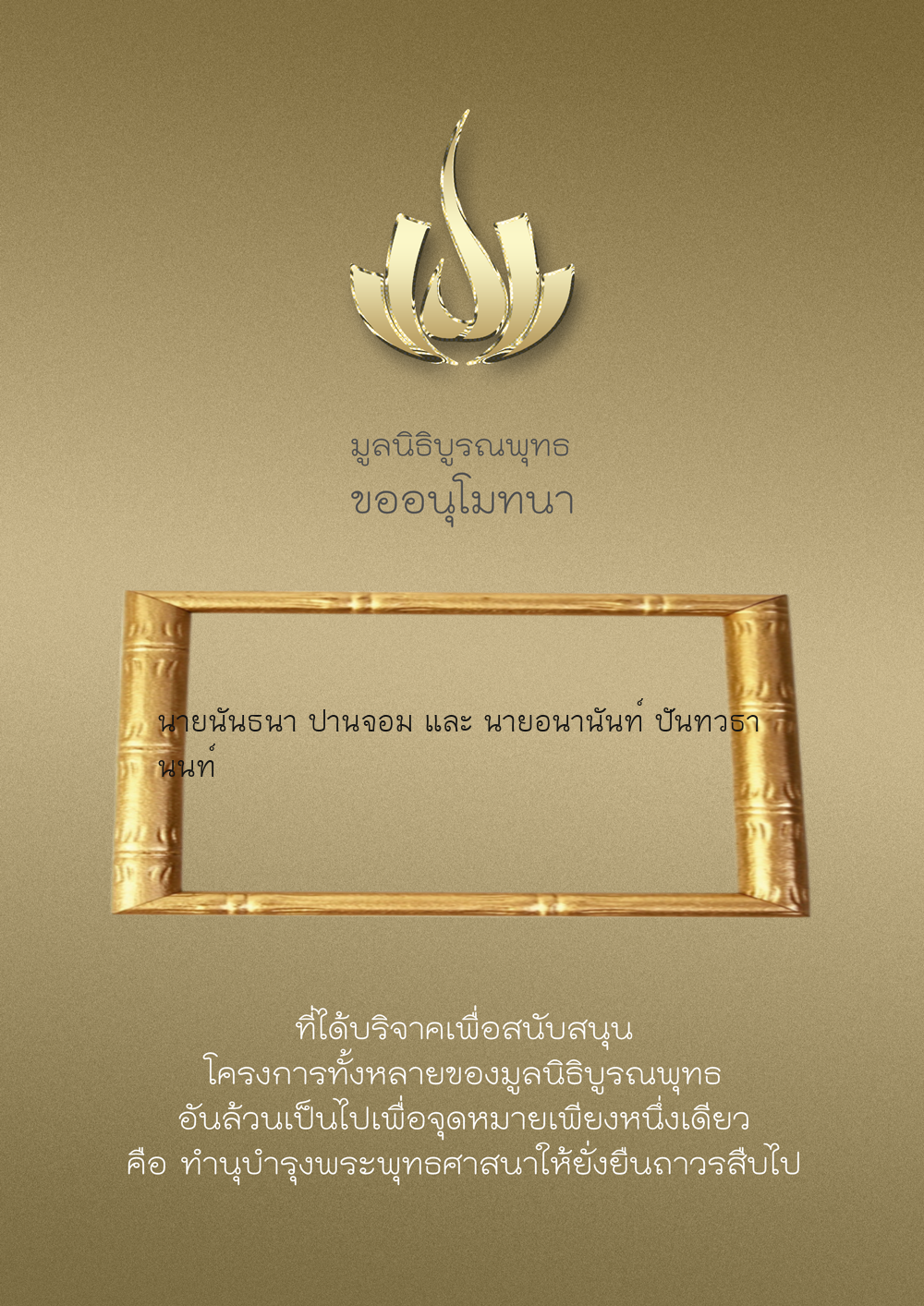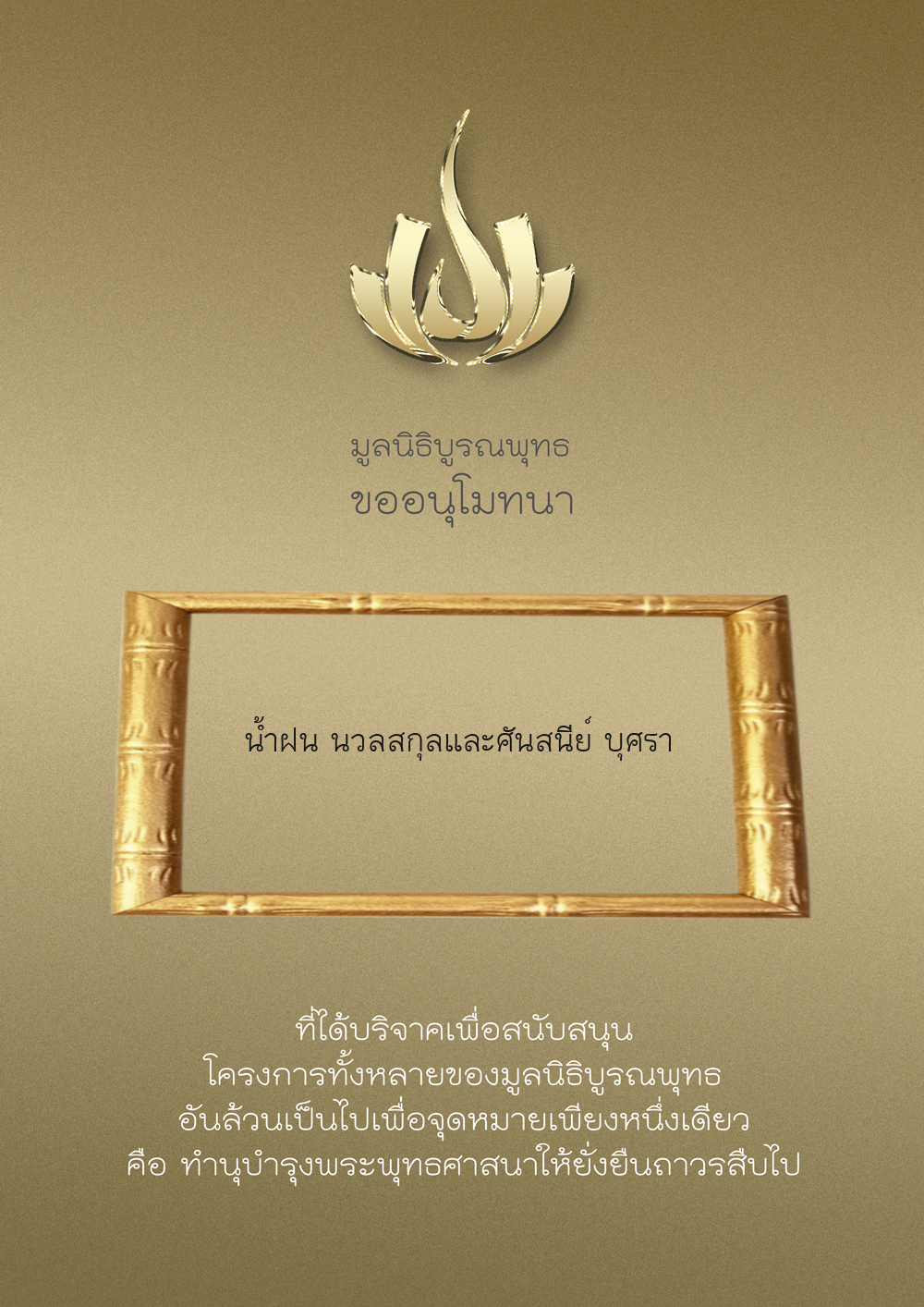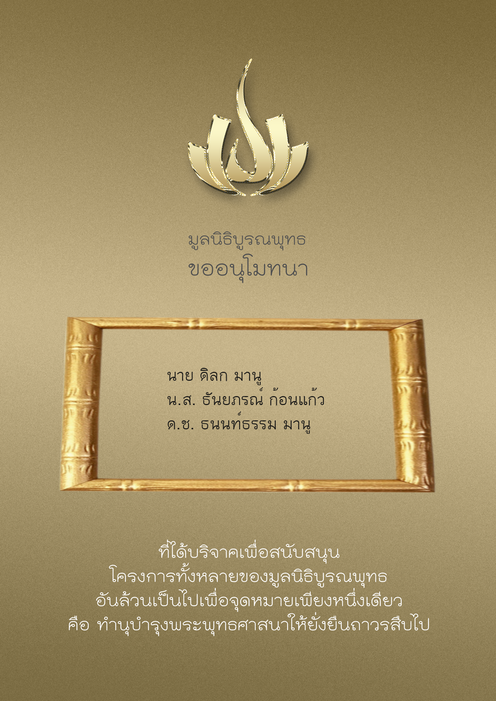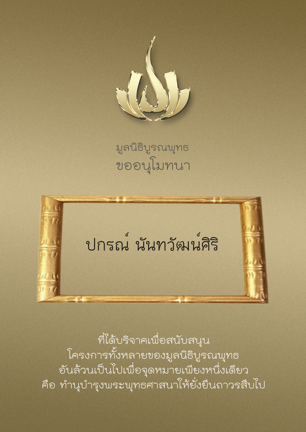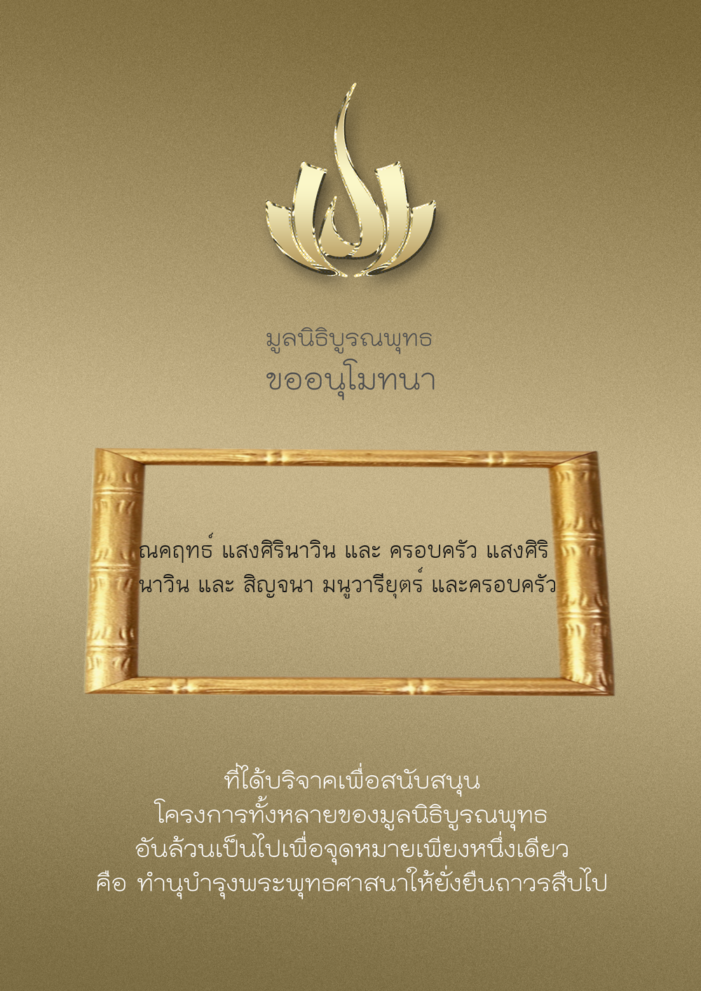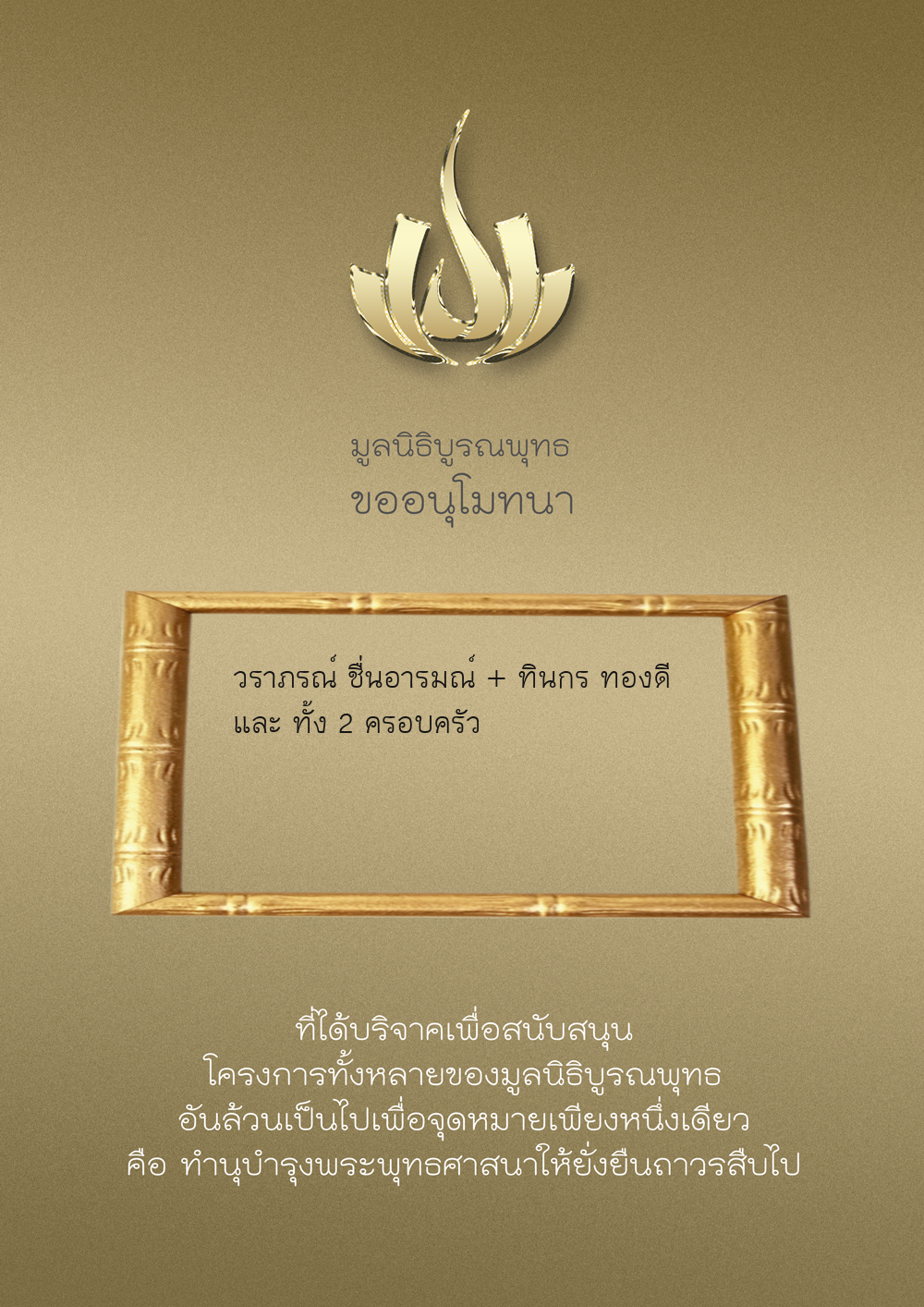 | ลำดับที่ 9949 | ณัฐพร ขันทเขตต์ และ ครอบครัว | 10,000.00 บาท | ภาพที่ระลึก |