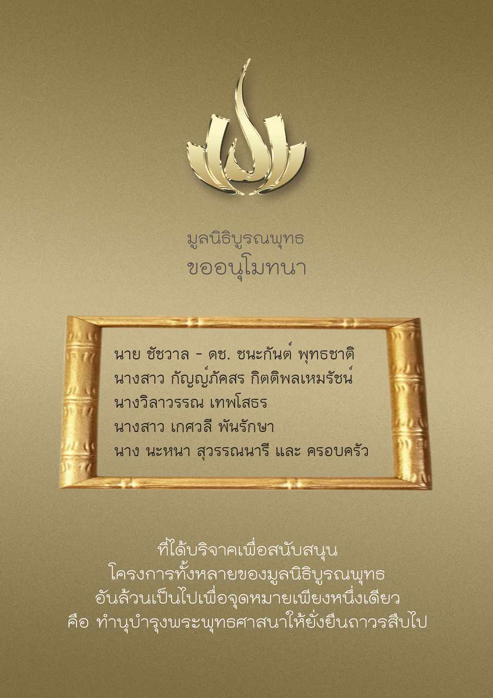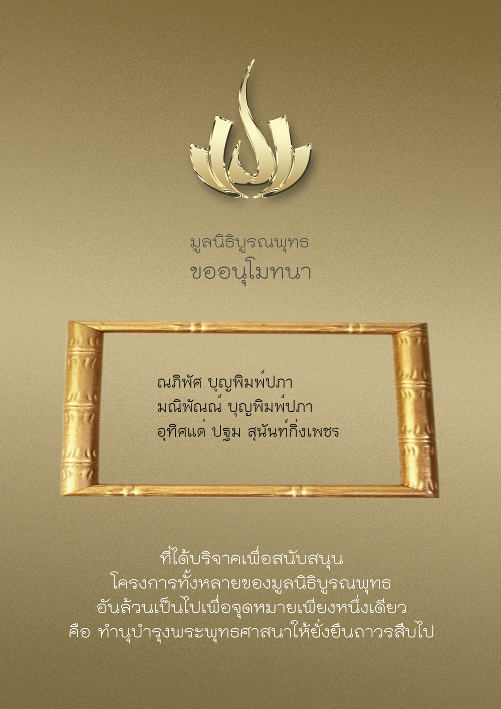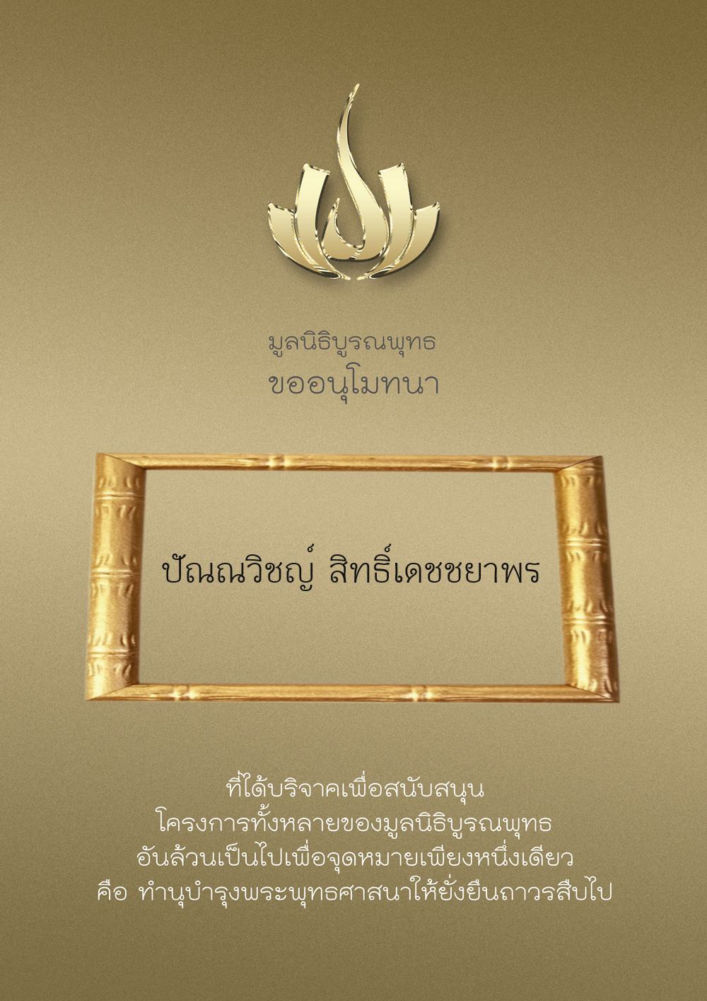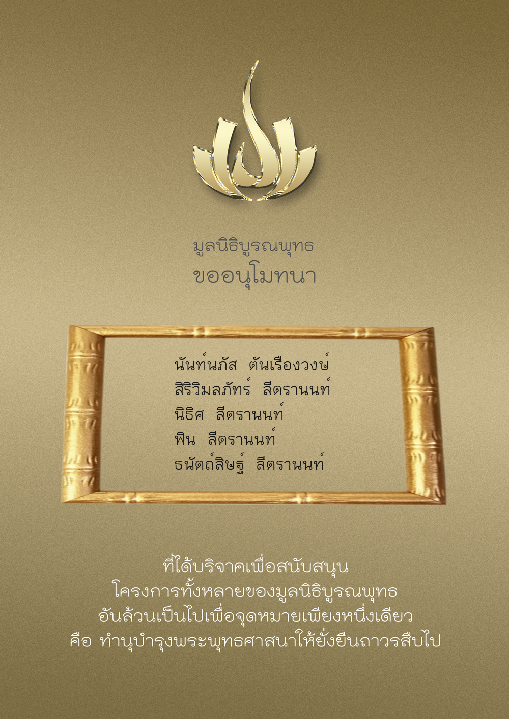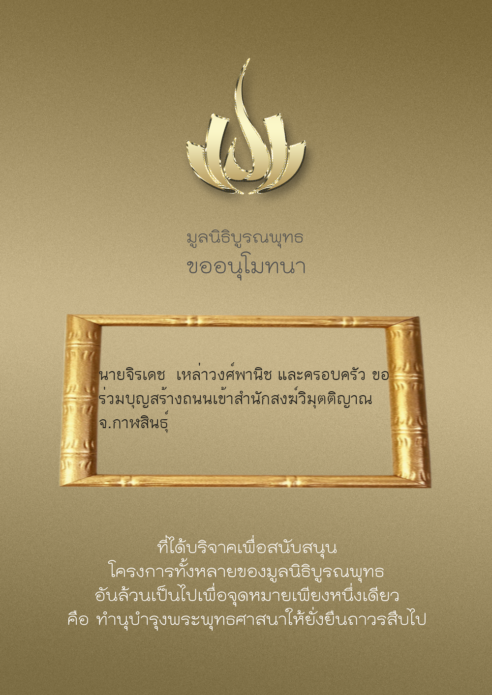 | ลำดับที่ 9949 | ณัฐพร ขันทเขตต์ และ ครอบครัว | 10,000.00 บาท | ภาพที่ระลึก |