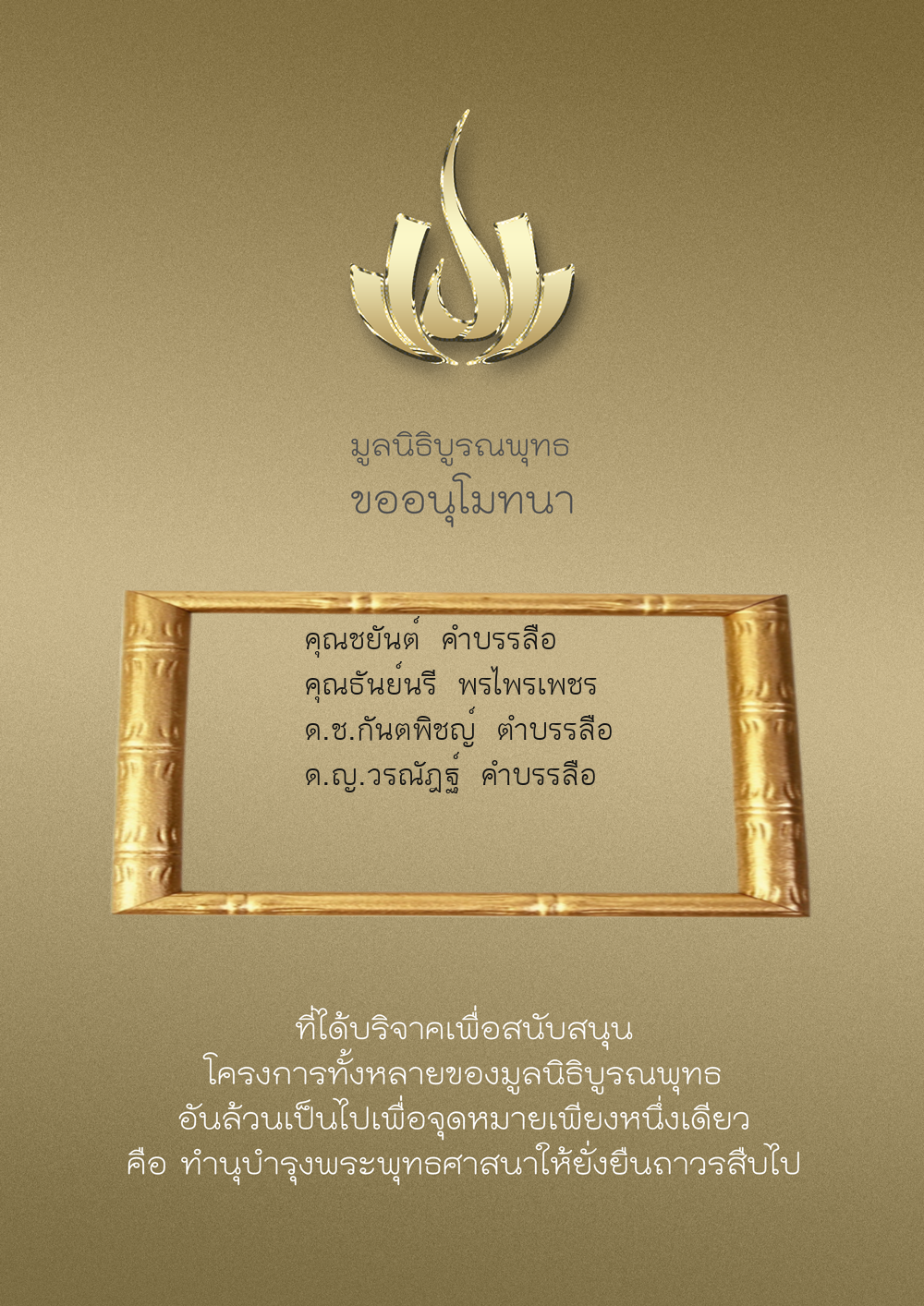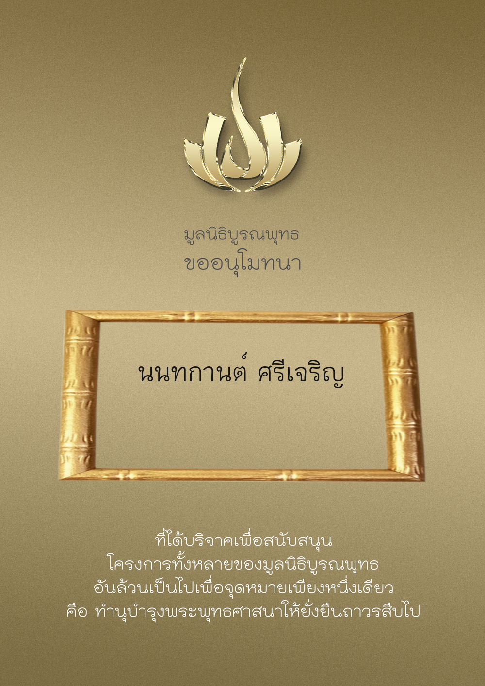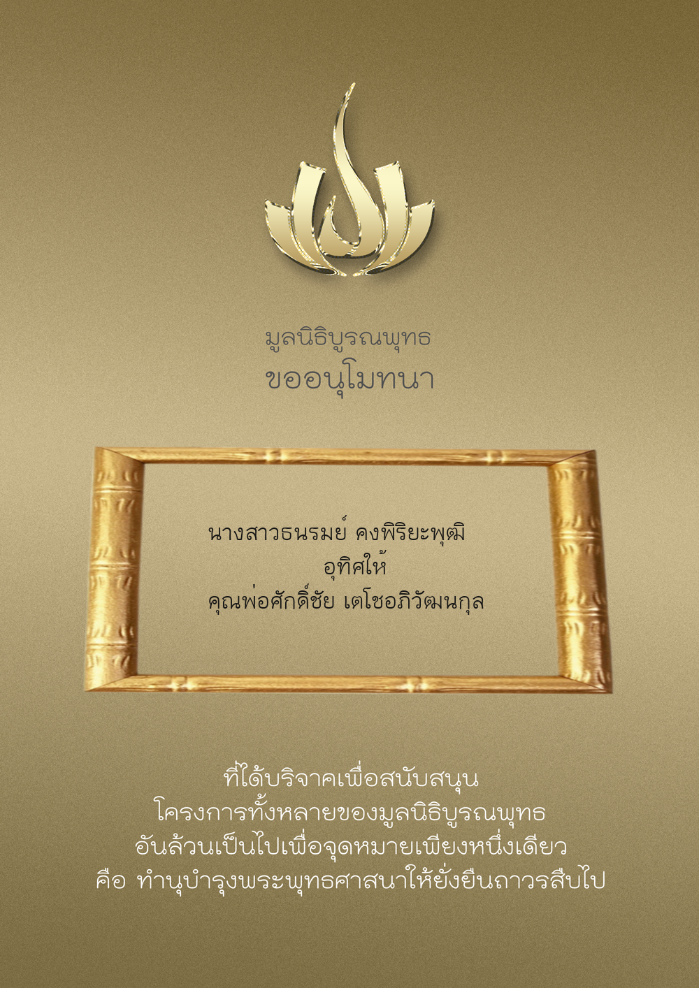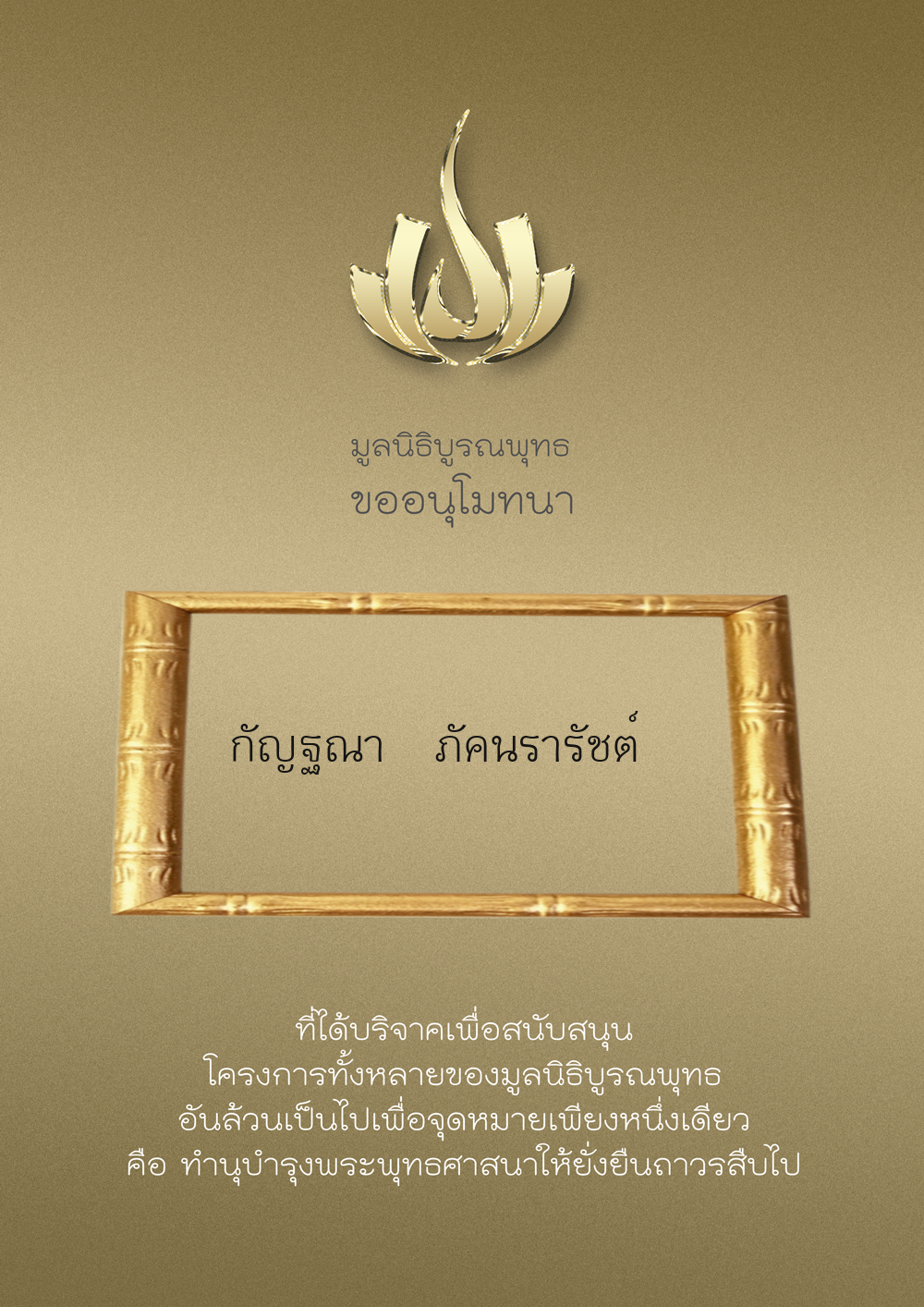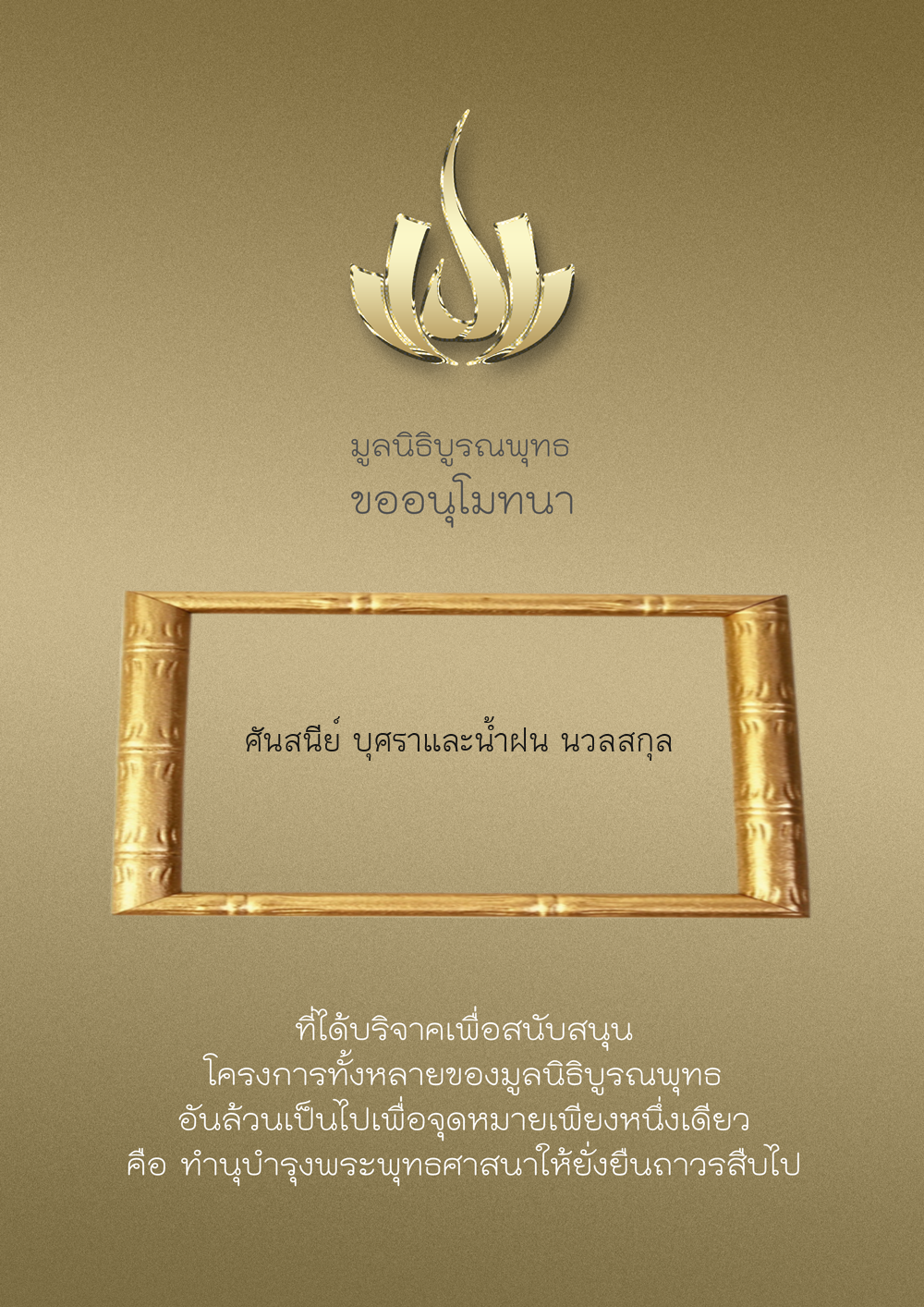 | ลำดับที่ 9949 | ณัฐพร ขันทเขตต์ และ ครอบครัว | 10,000.00 บาท | ภาพที่ระลึก |