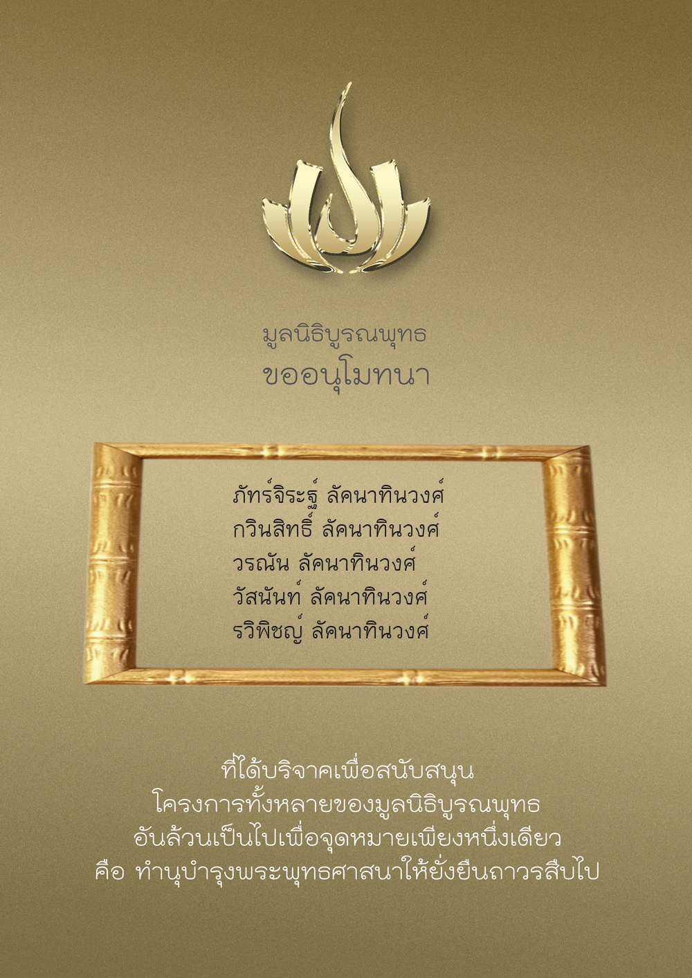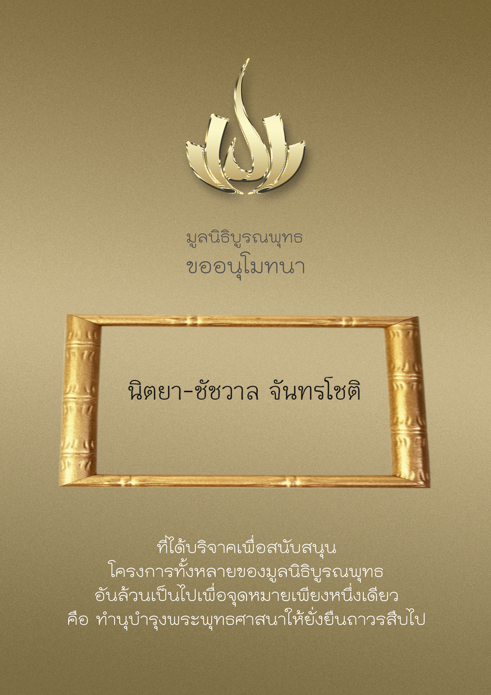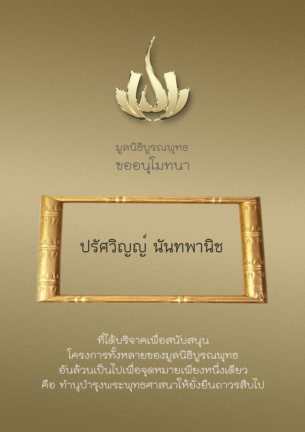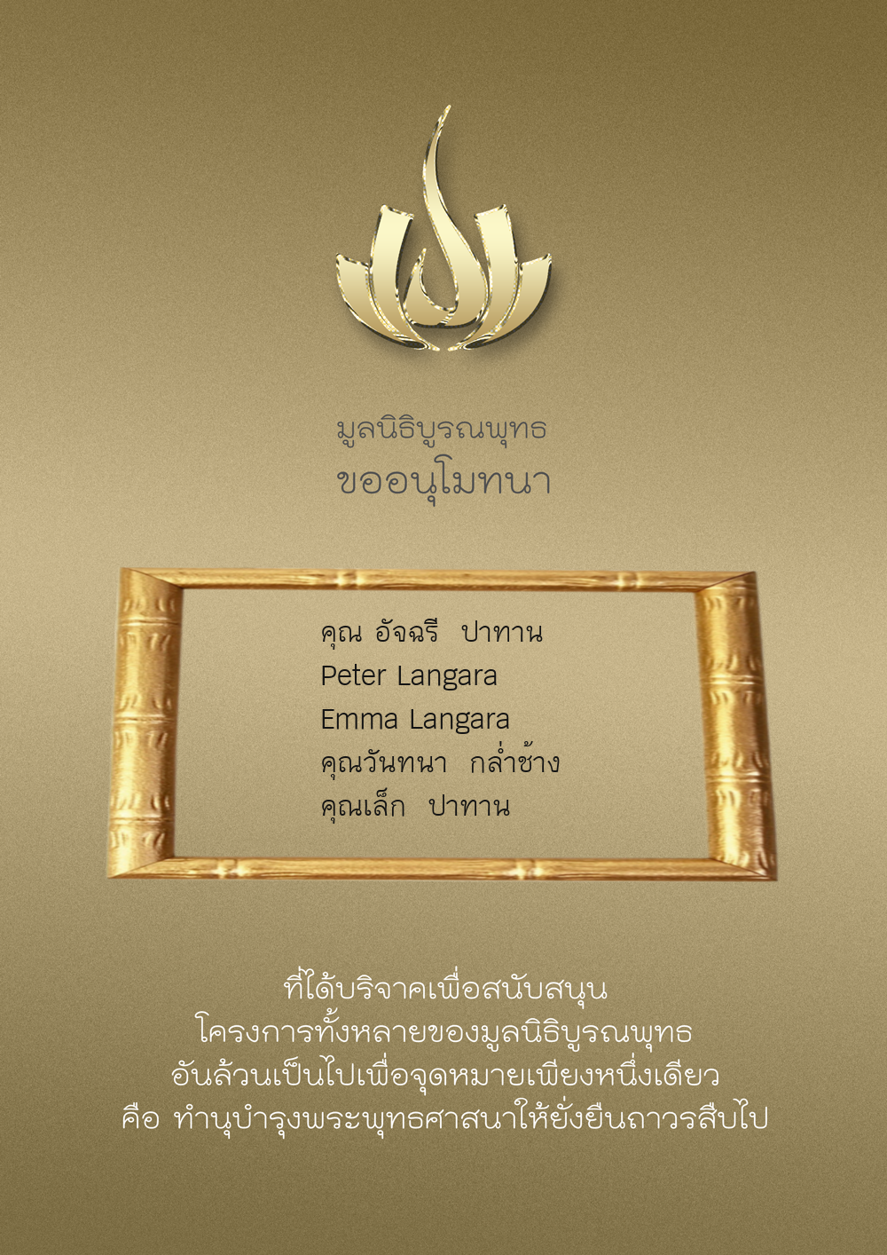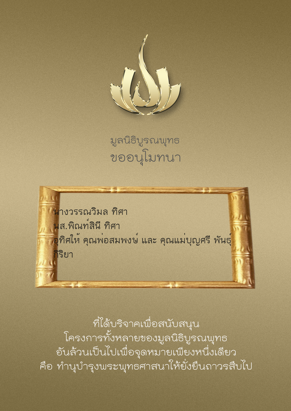 | ลำดับที่ 9949 | ณัฐพร ขันทเขตต์ และ ครอบครัว | 10,000.00 บาท | ภาพที่ระลึก |