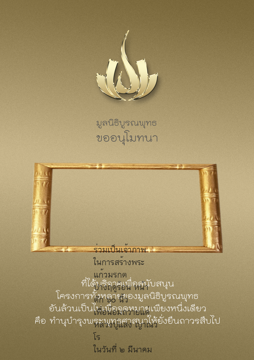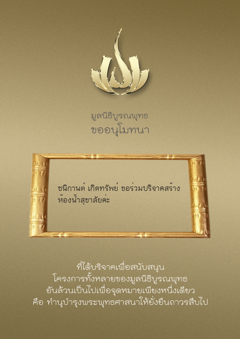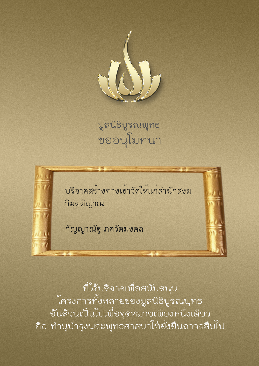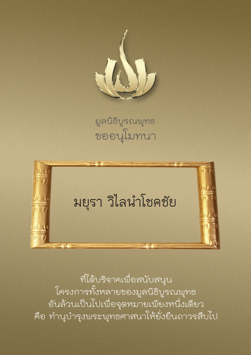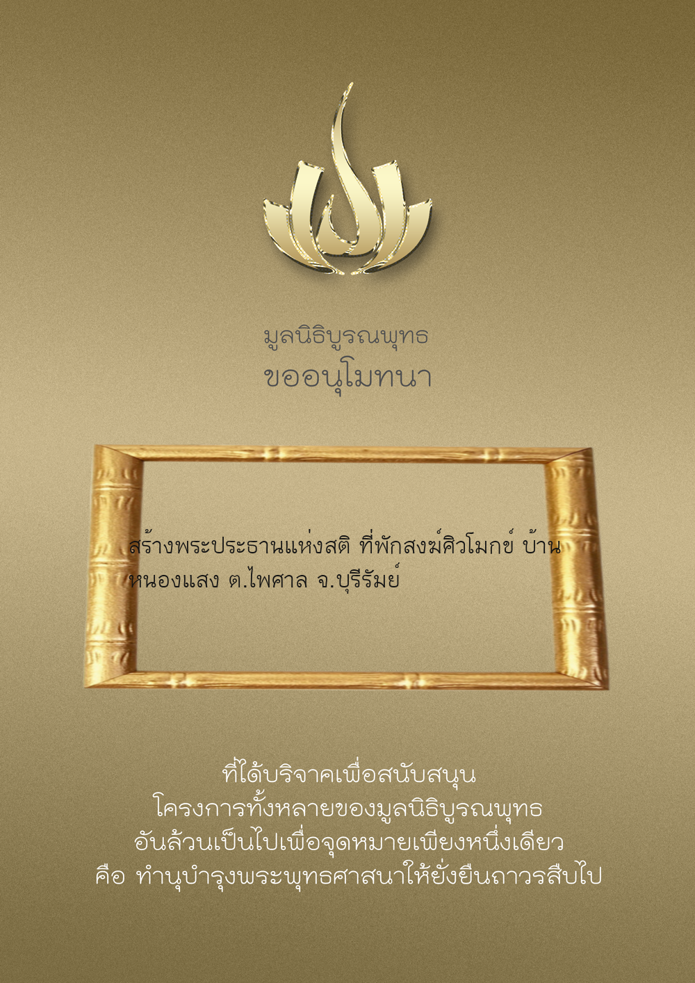 | ลำดับที่ 34 | ร่วมบริจาคสร้างวัดบูรณพุทธ | 3,000.00 บาท | ภาพที่ระลึก |