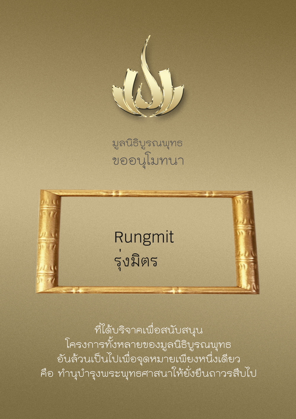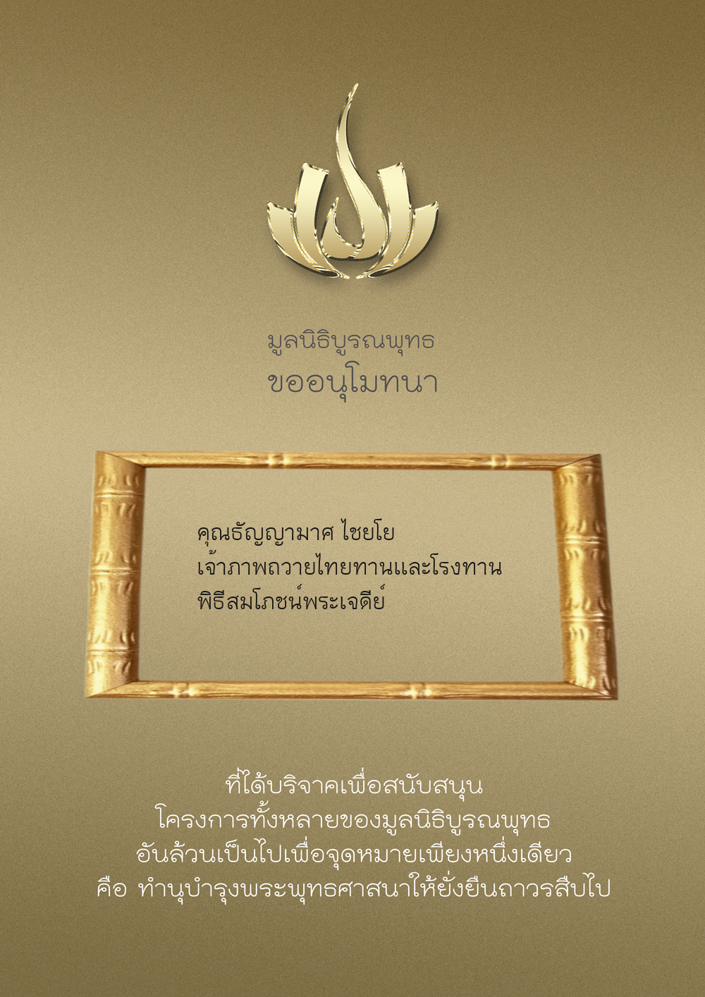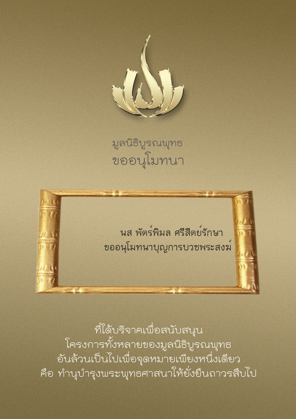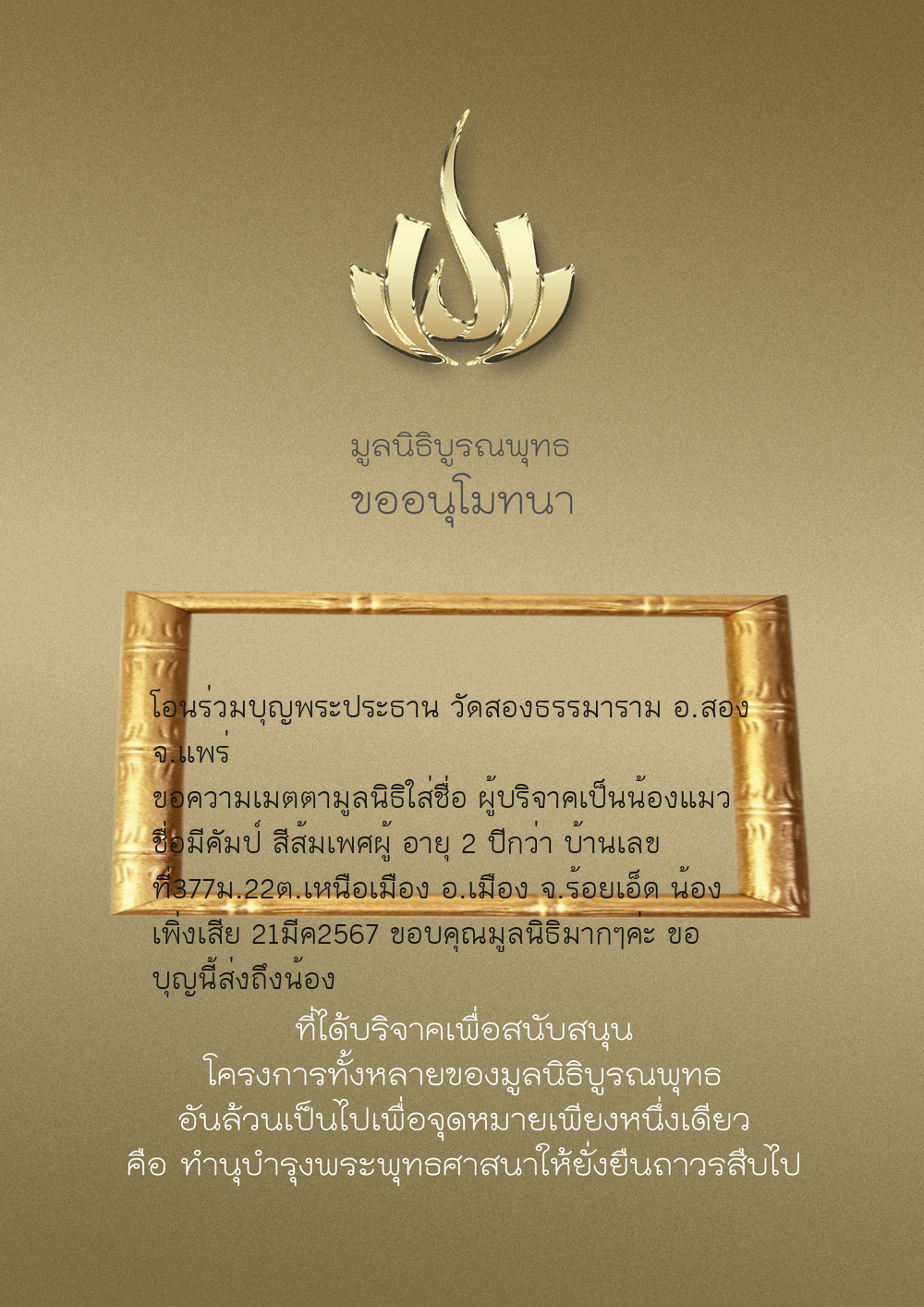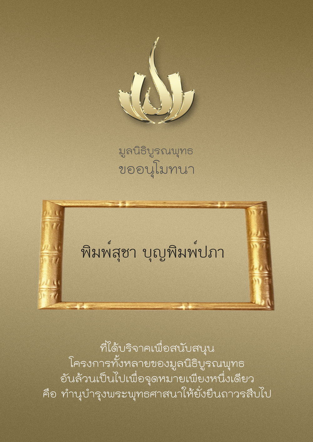 | ลำดับที่ 34 | ร่วมบริจาคสร้างวัดบูรณพุทธ | 3,000.00 บาท | ภาพที่ระลึก |