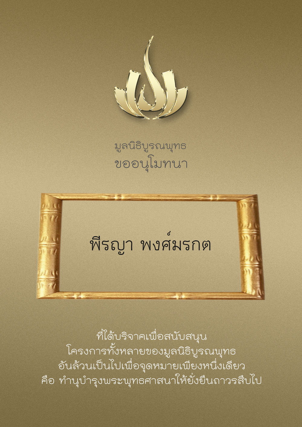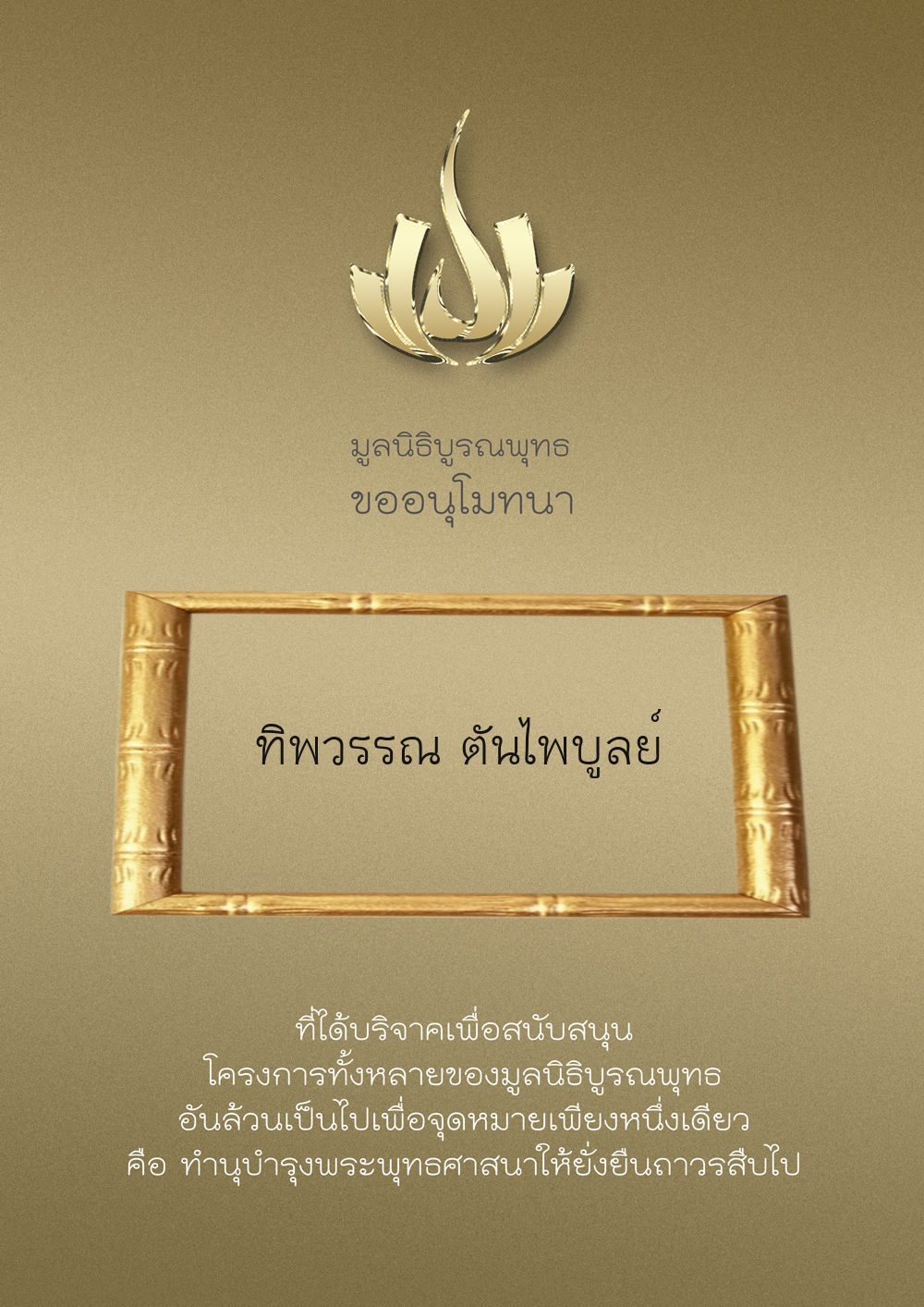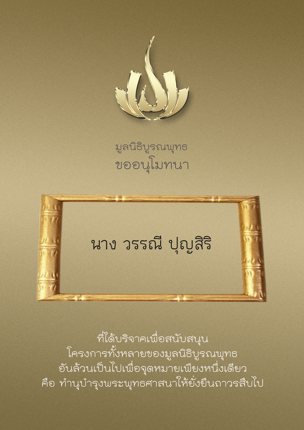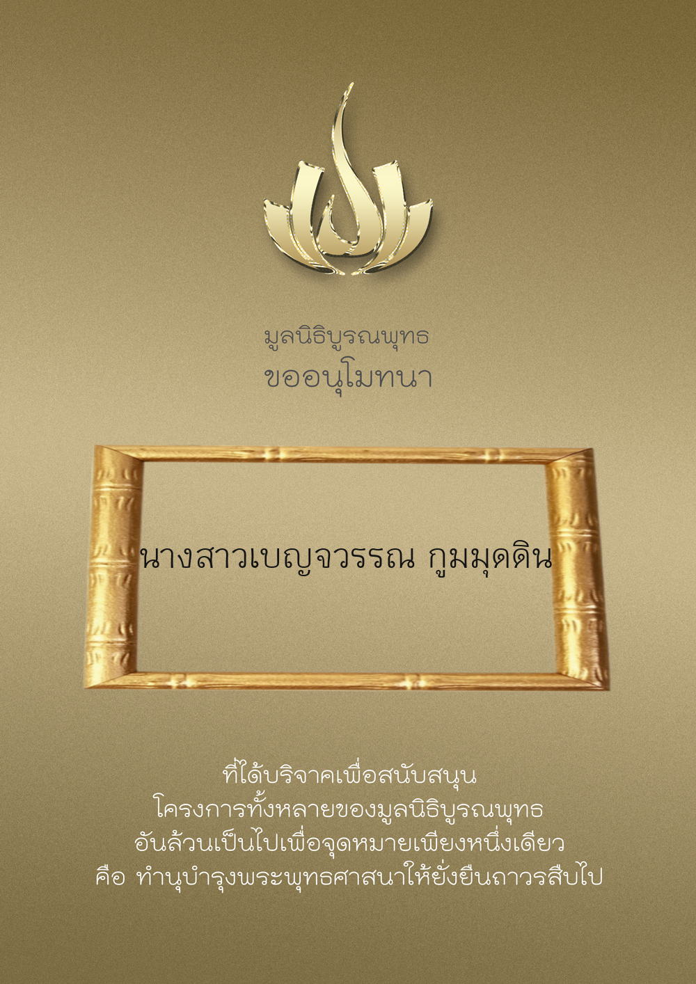 | ลำดับที่ 9999 | เพ็ญอนงค์ มโนวร | 500.00 บาท | ภาพที่ระลึก |