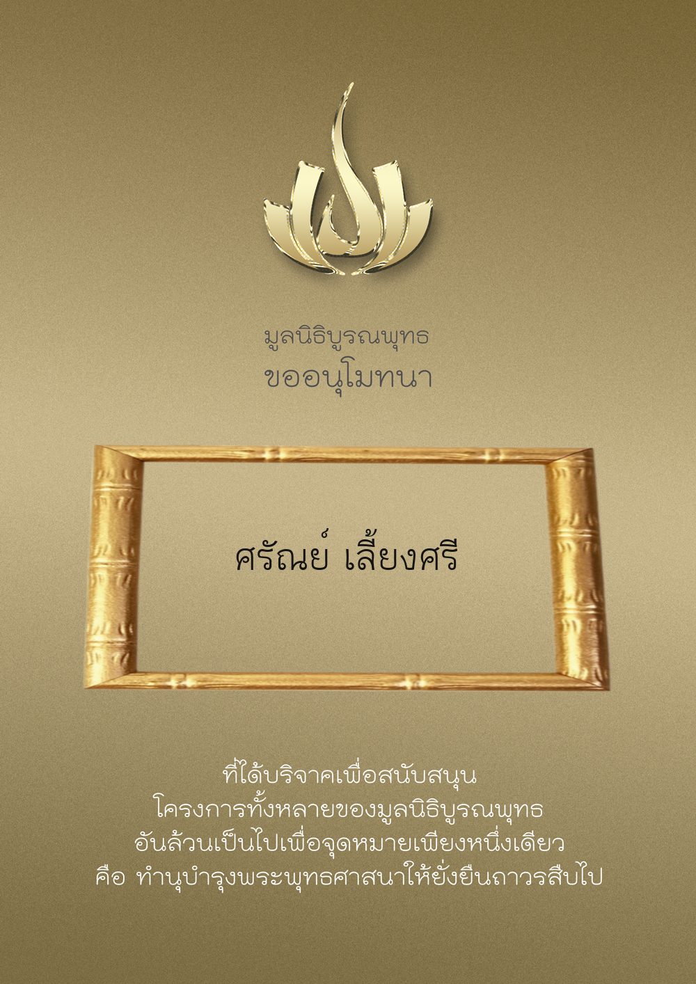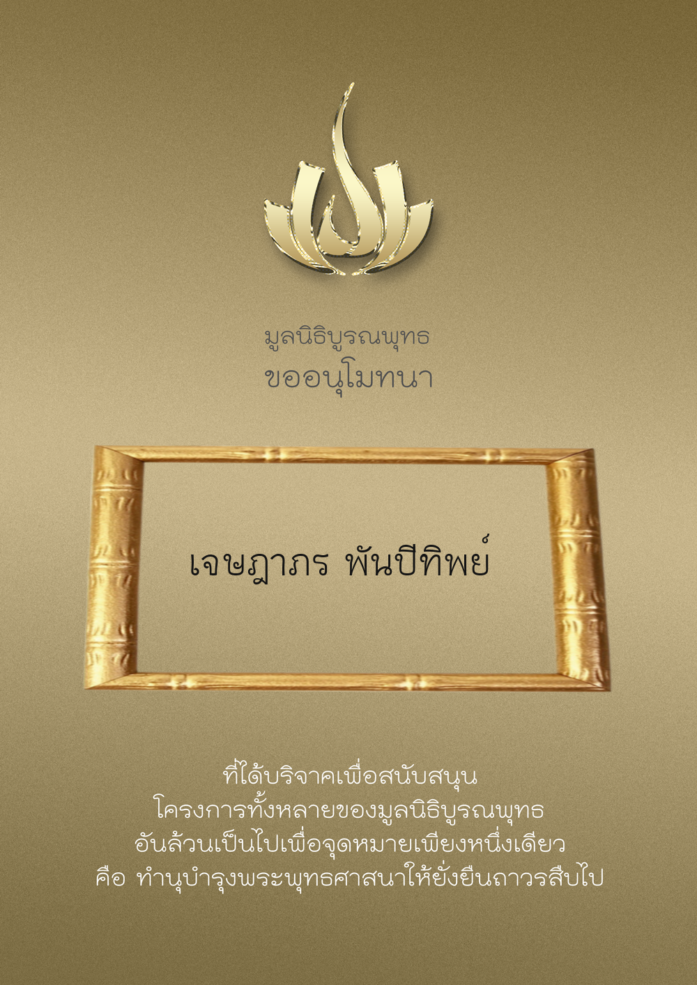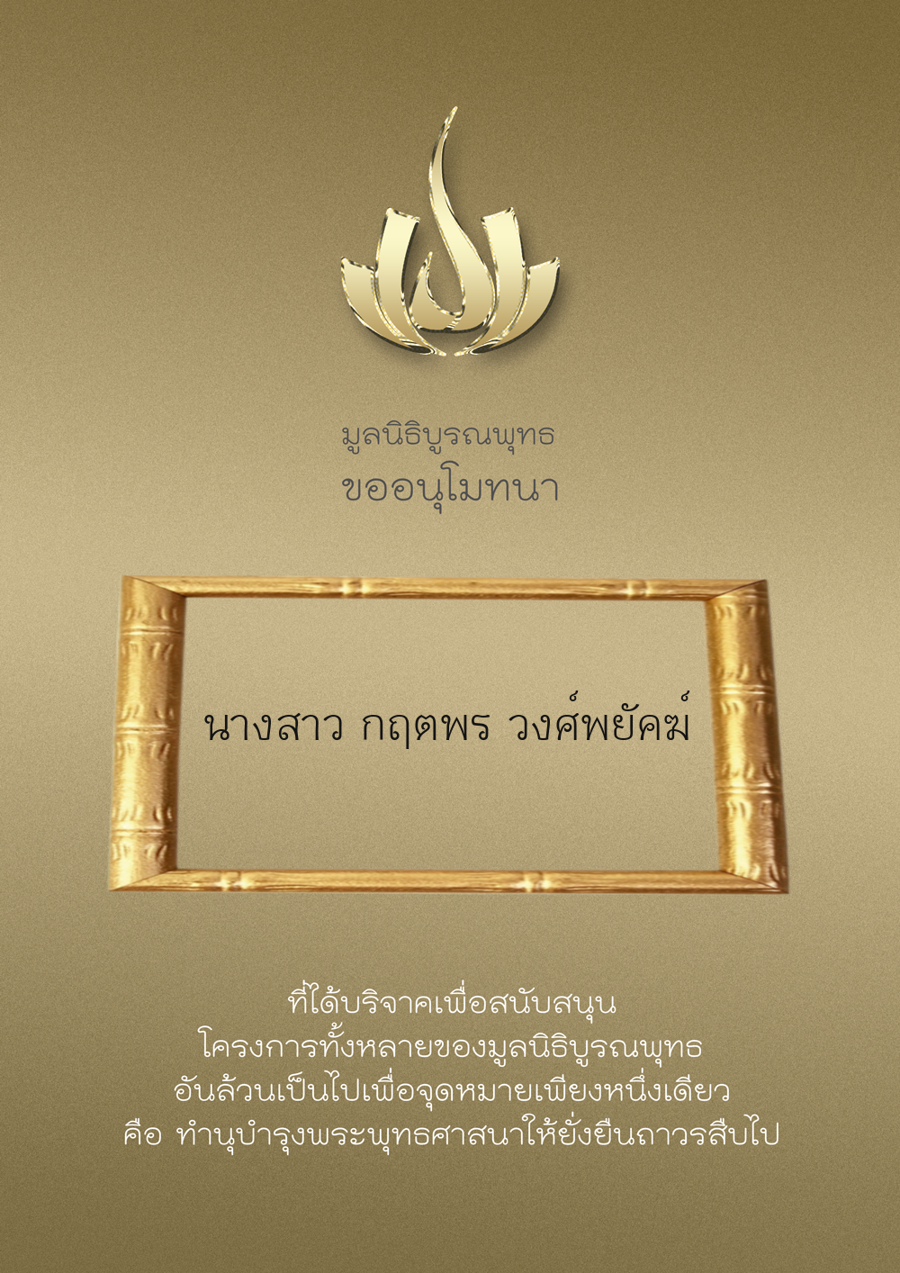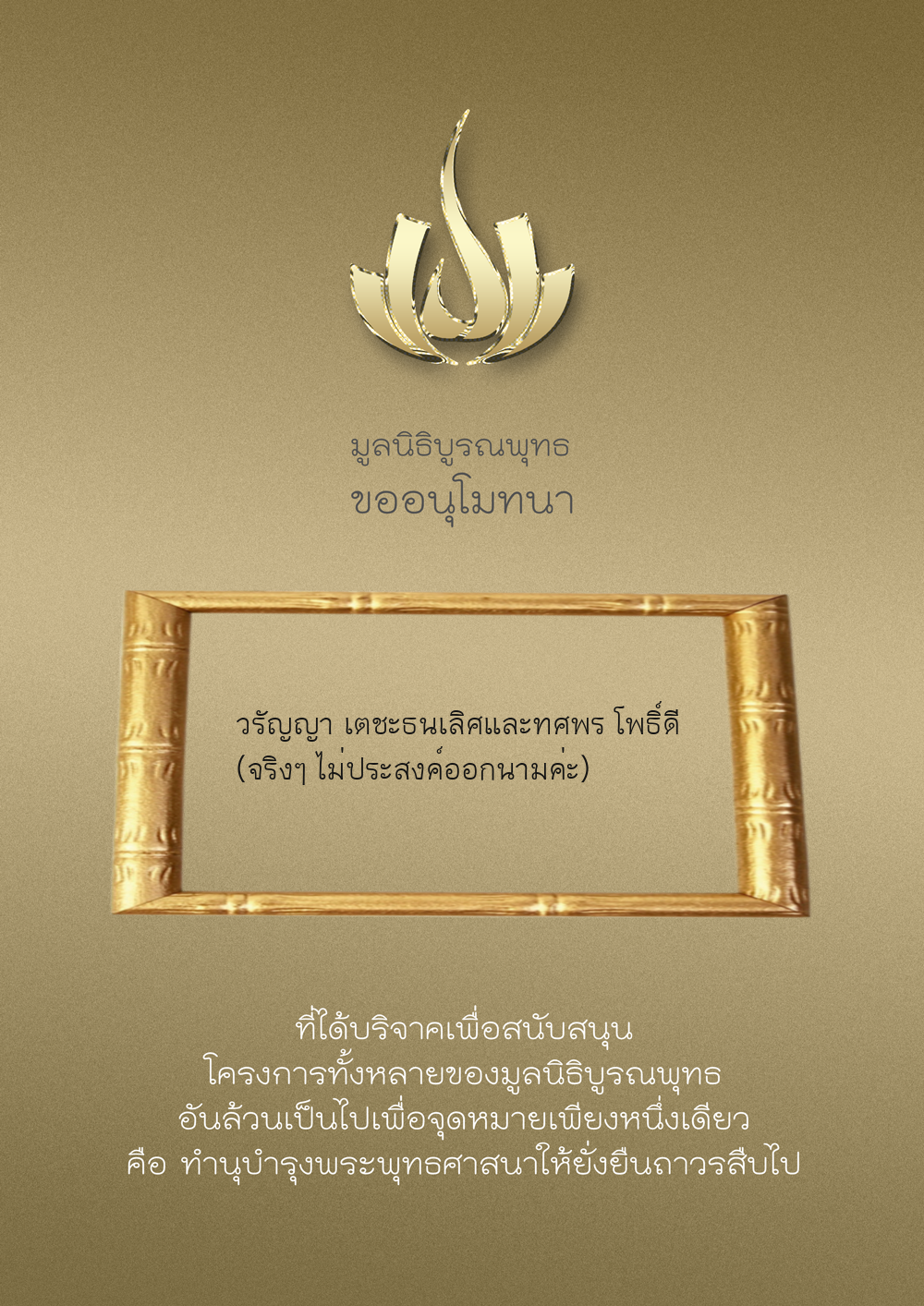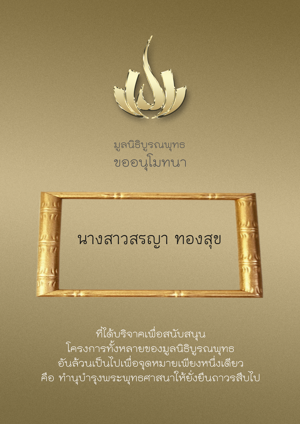 | ลำดับที่ 9999 | เพ็ญอนงค์ มโนวร | 500.00 บาท | ภาพที่ระลึก |