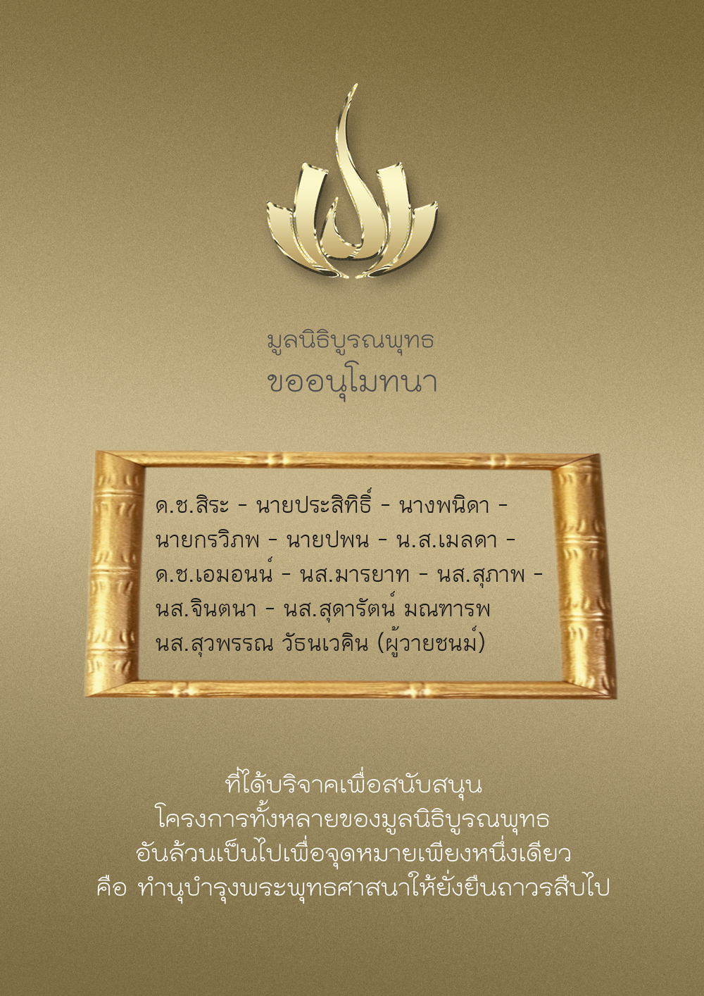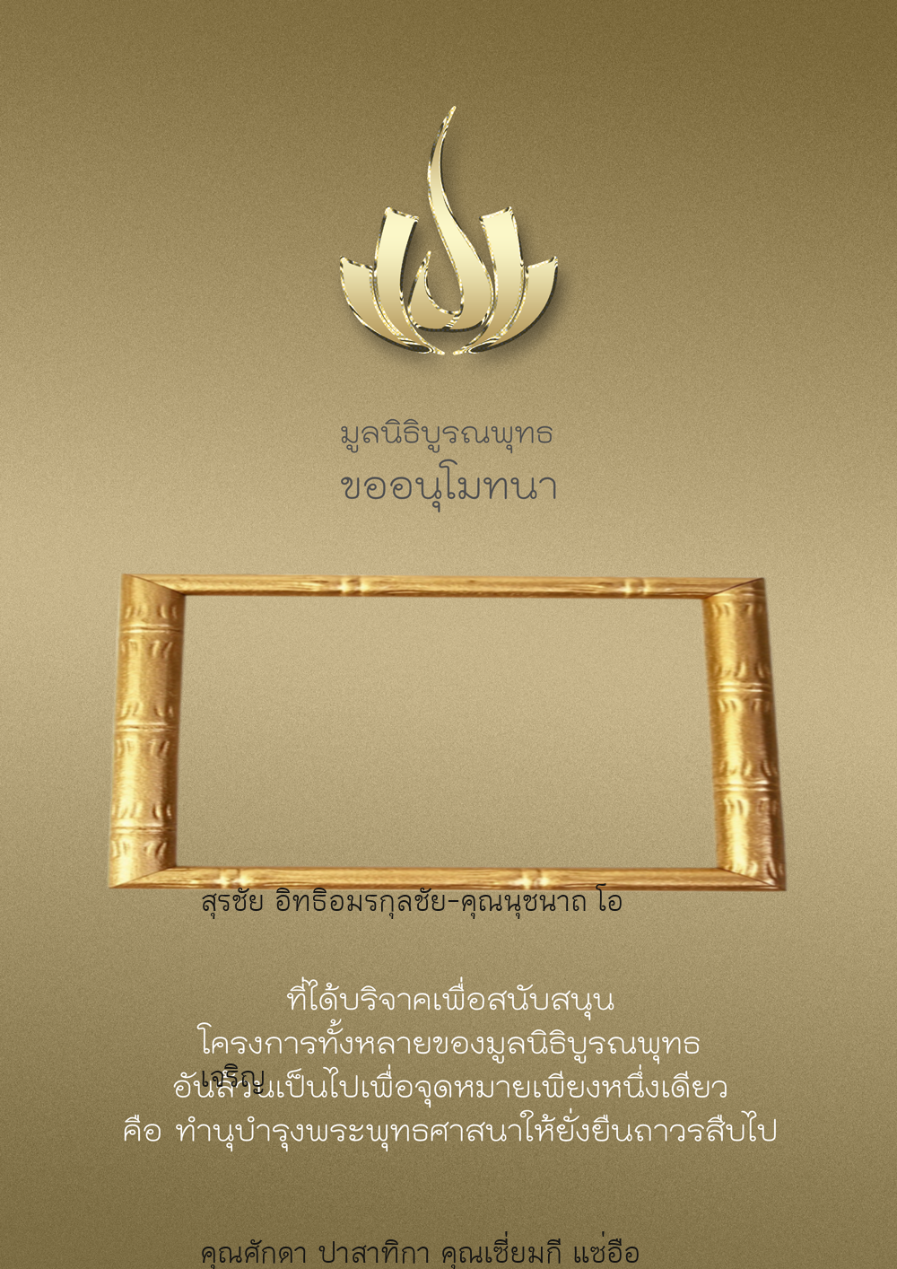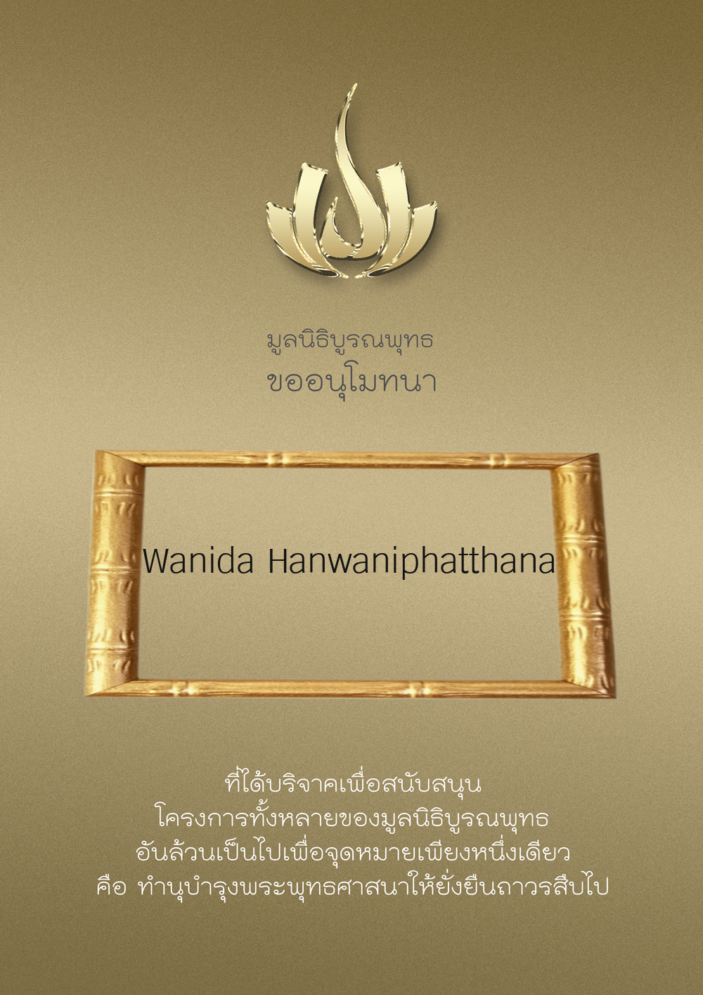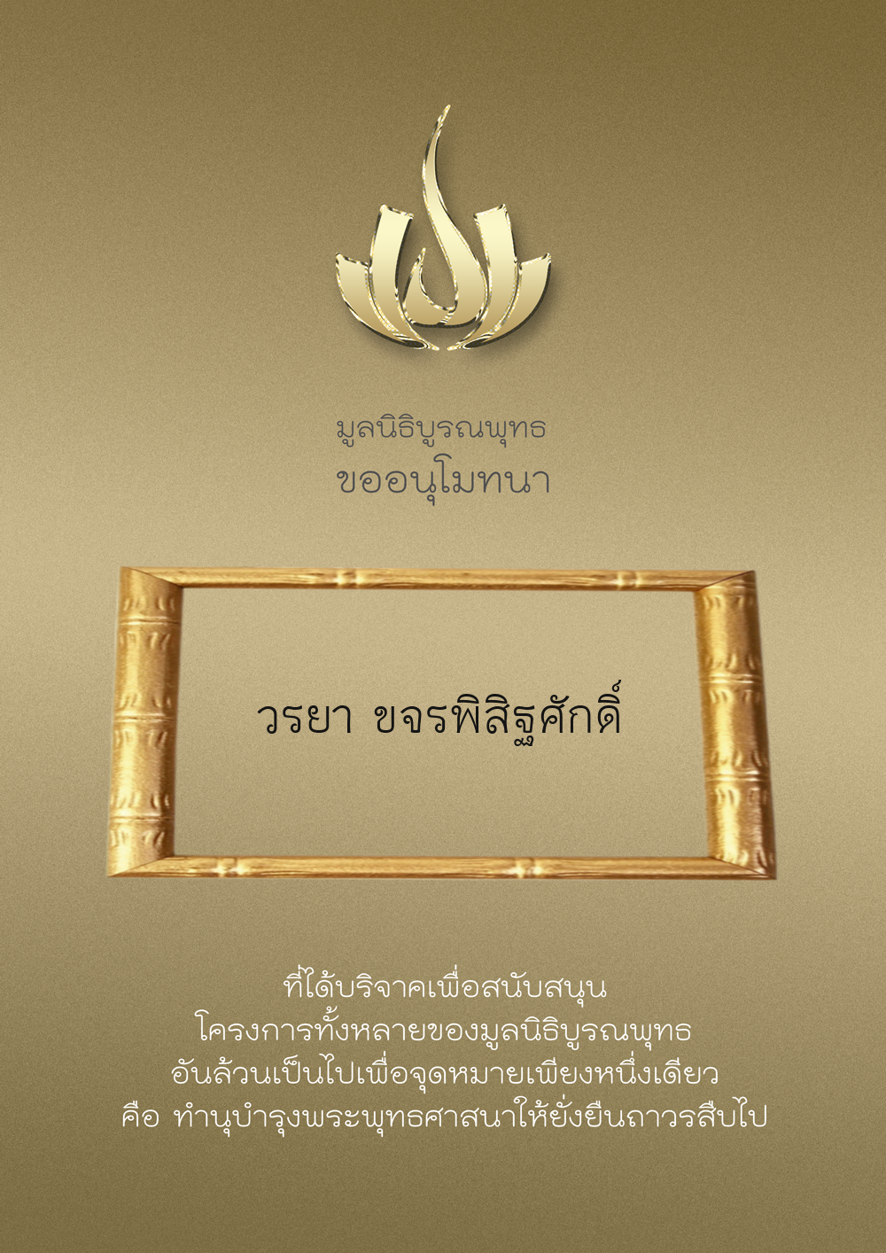| ลำดับที่ 9999 | เพ็ญอนงค์ มโนวร | 500.00 บาท | ภาพที่ระลึก |