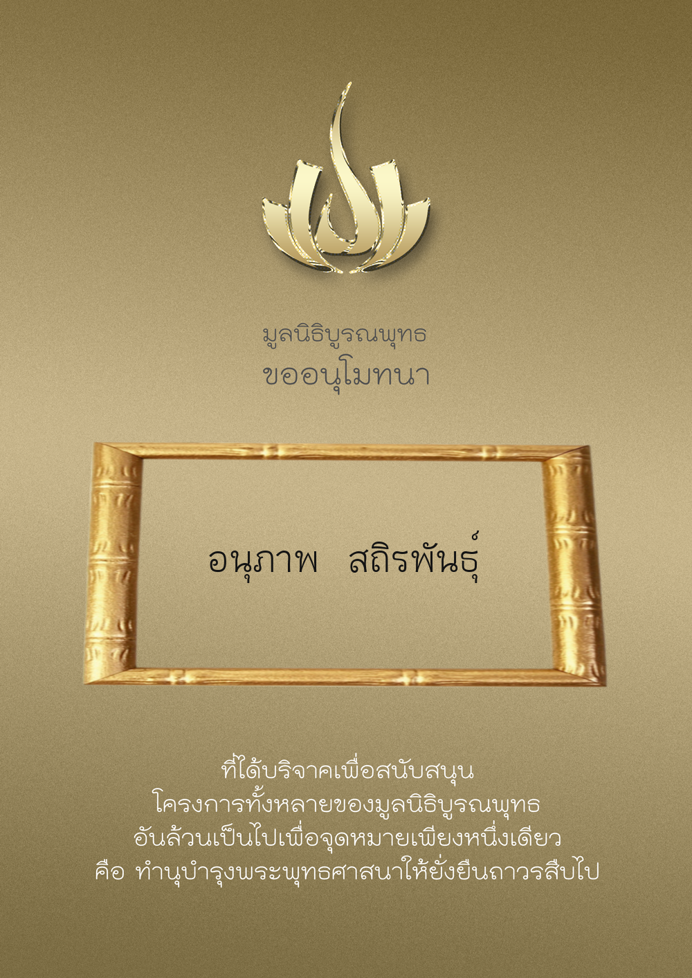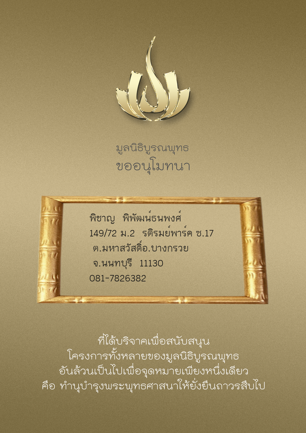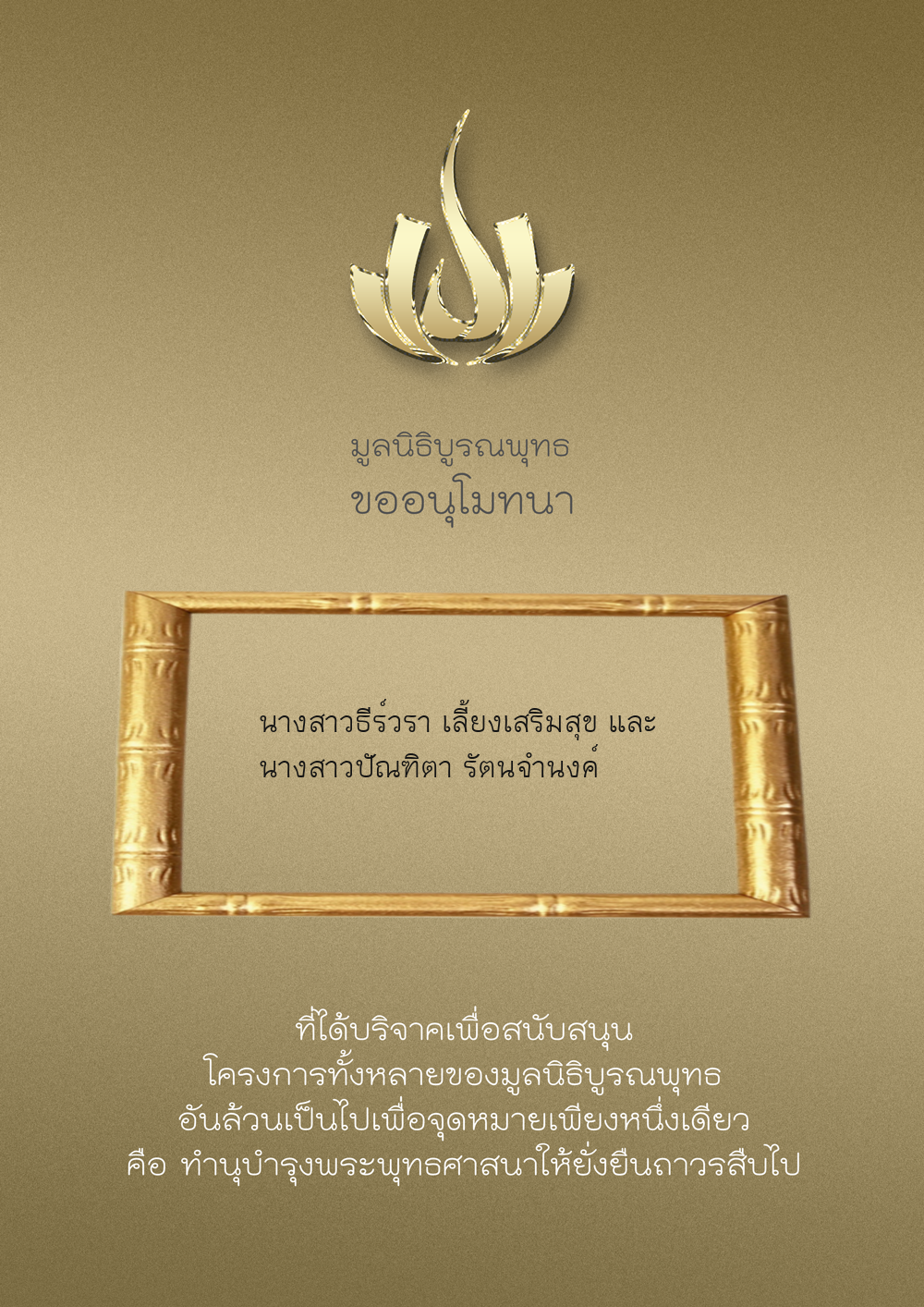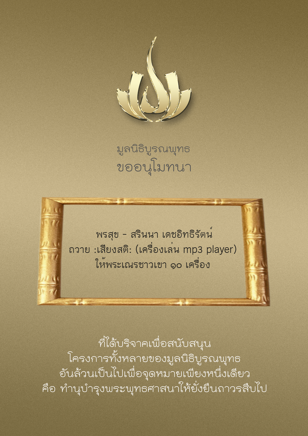 | ลำดับที่ 9999 | เพ็ญอนงค์ มโนวร | 500.00 บาท | ภาพที่ระลึก |