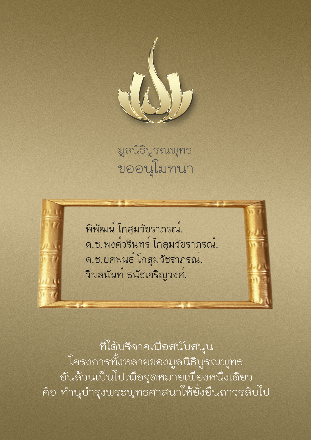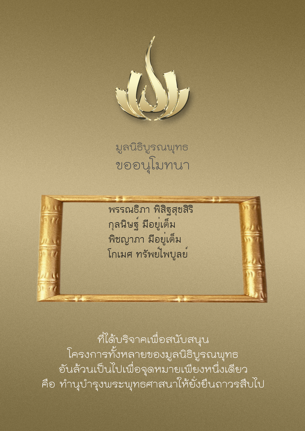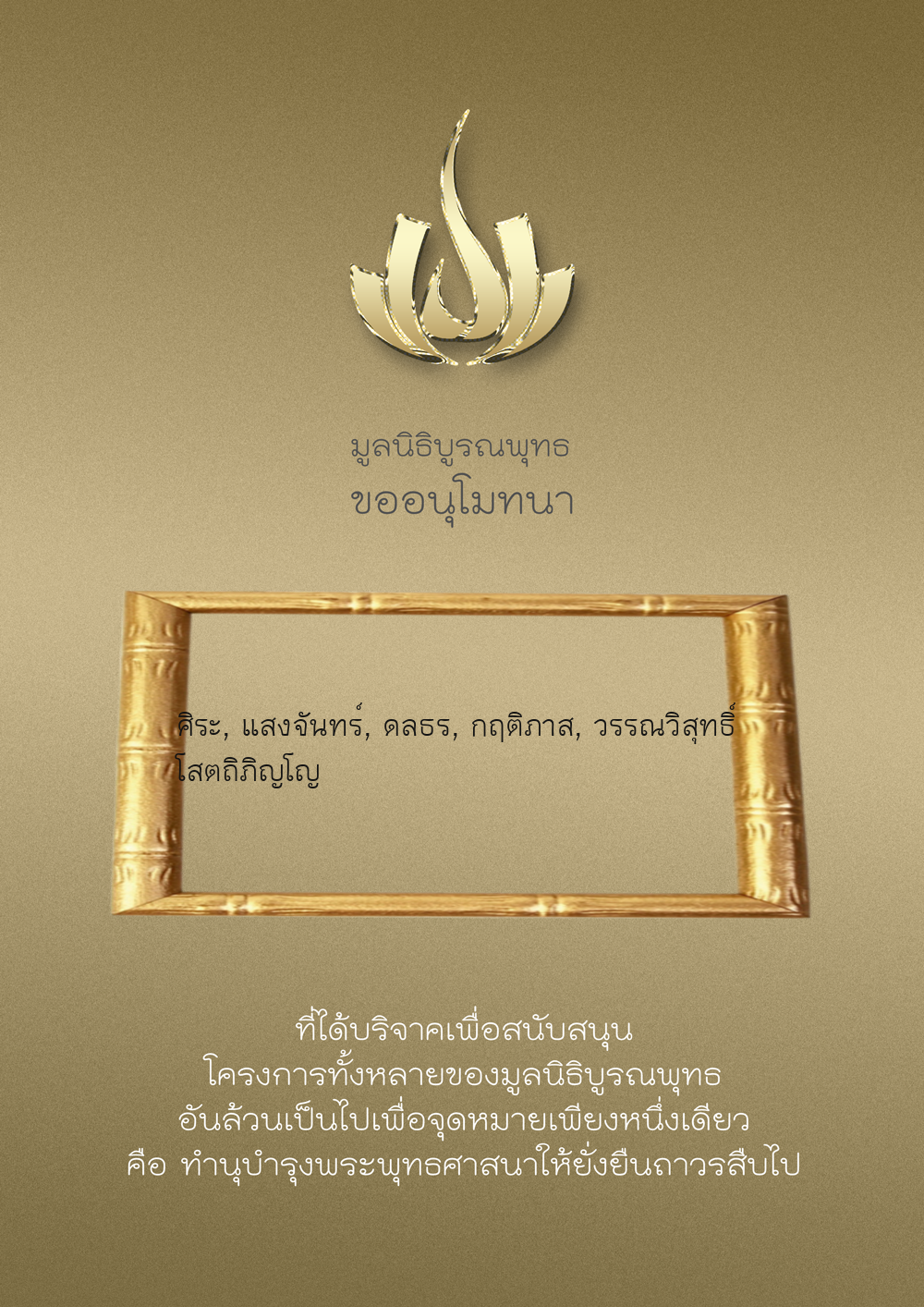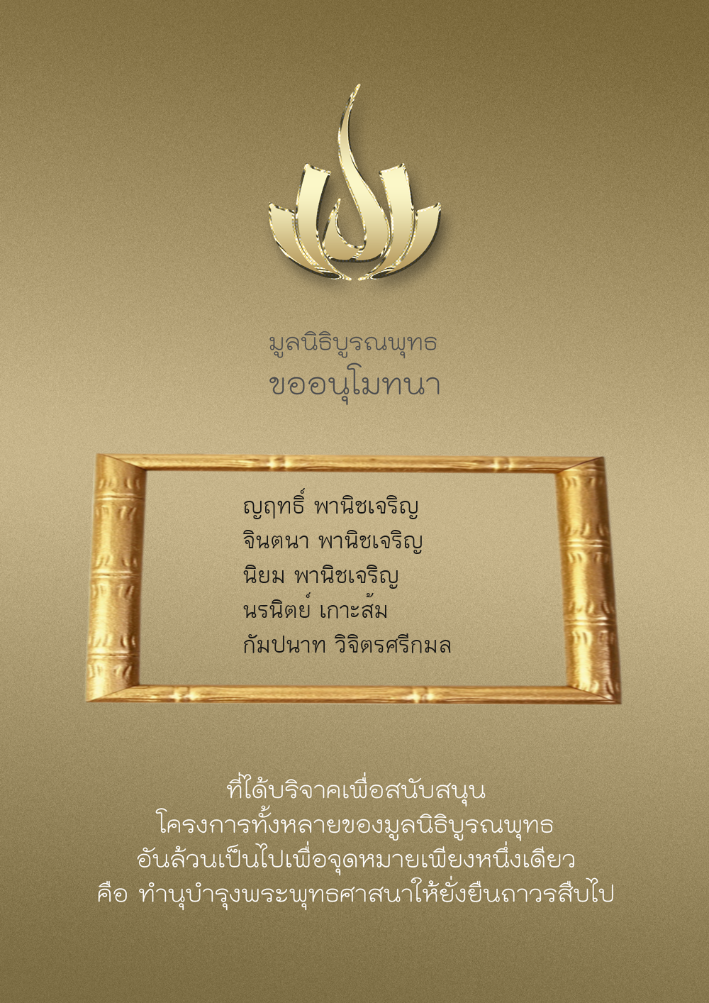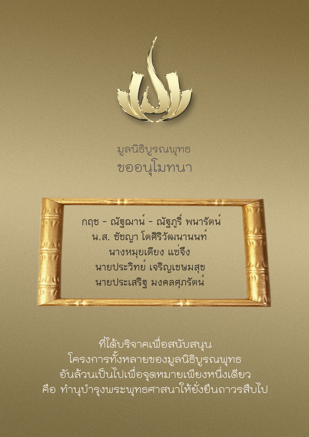 | ลำดับที่ 9947 | นาง อมราภรณ์ บุน และ ครอบครัว | 1,000.00 บาท | ภาพที่ระลึก |