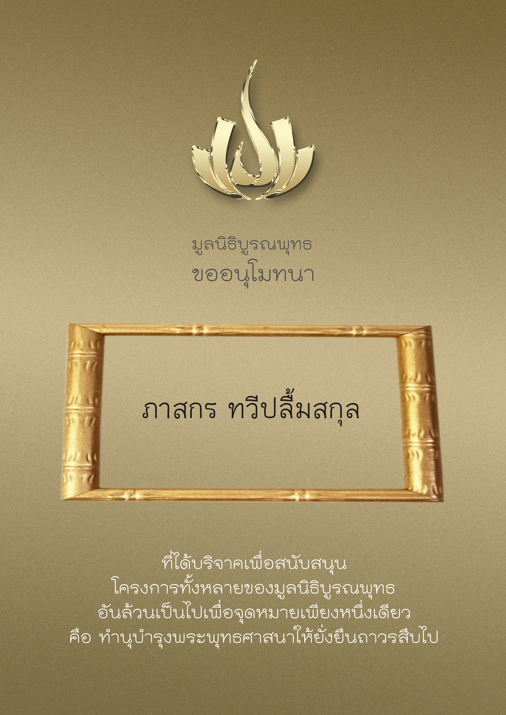 | ลำดับที่ 77 | ถาวร ธนะบูรณะวงศ์ | 2,000.00 บาท | ภาพที่ระลึก |