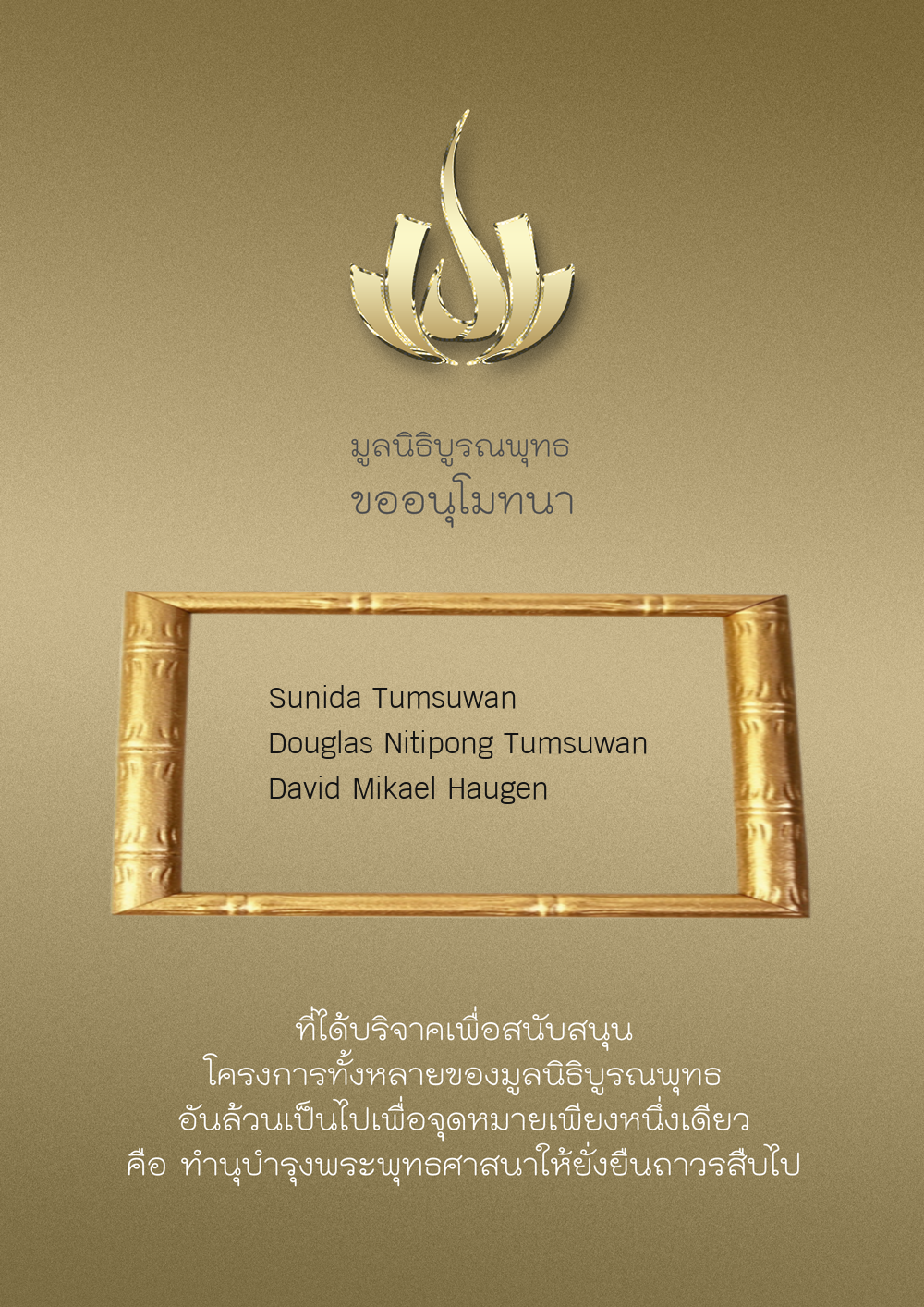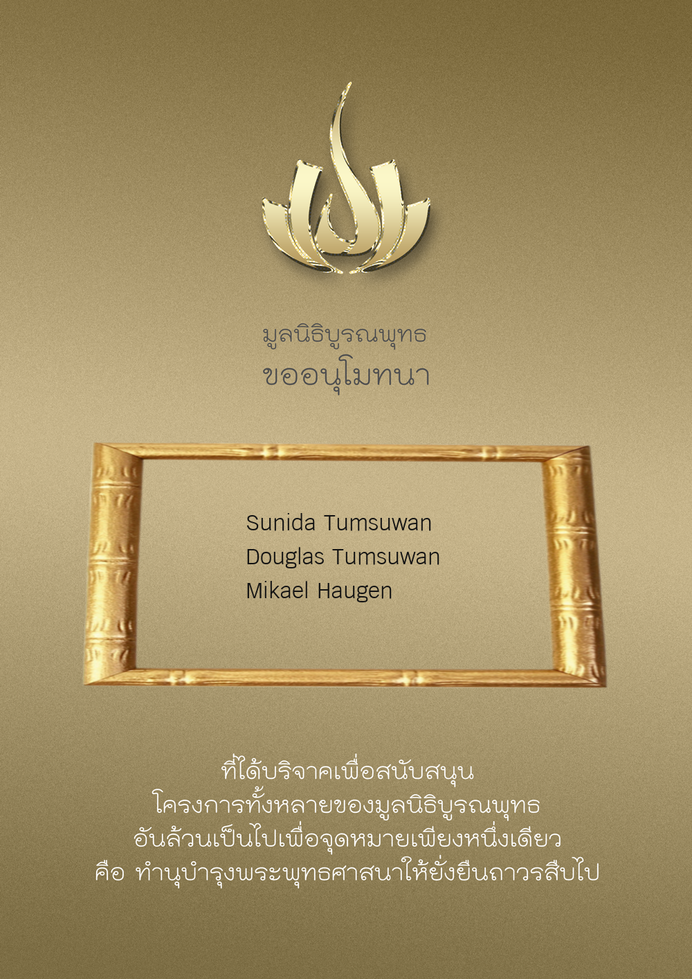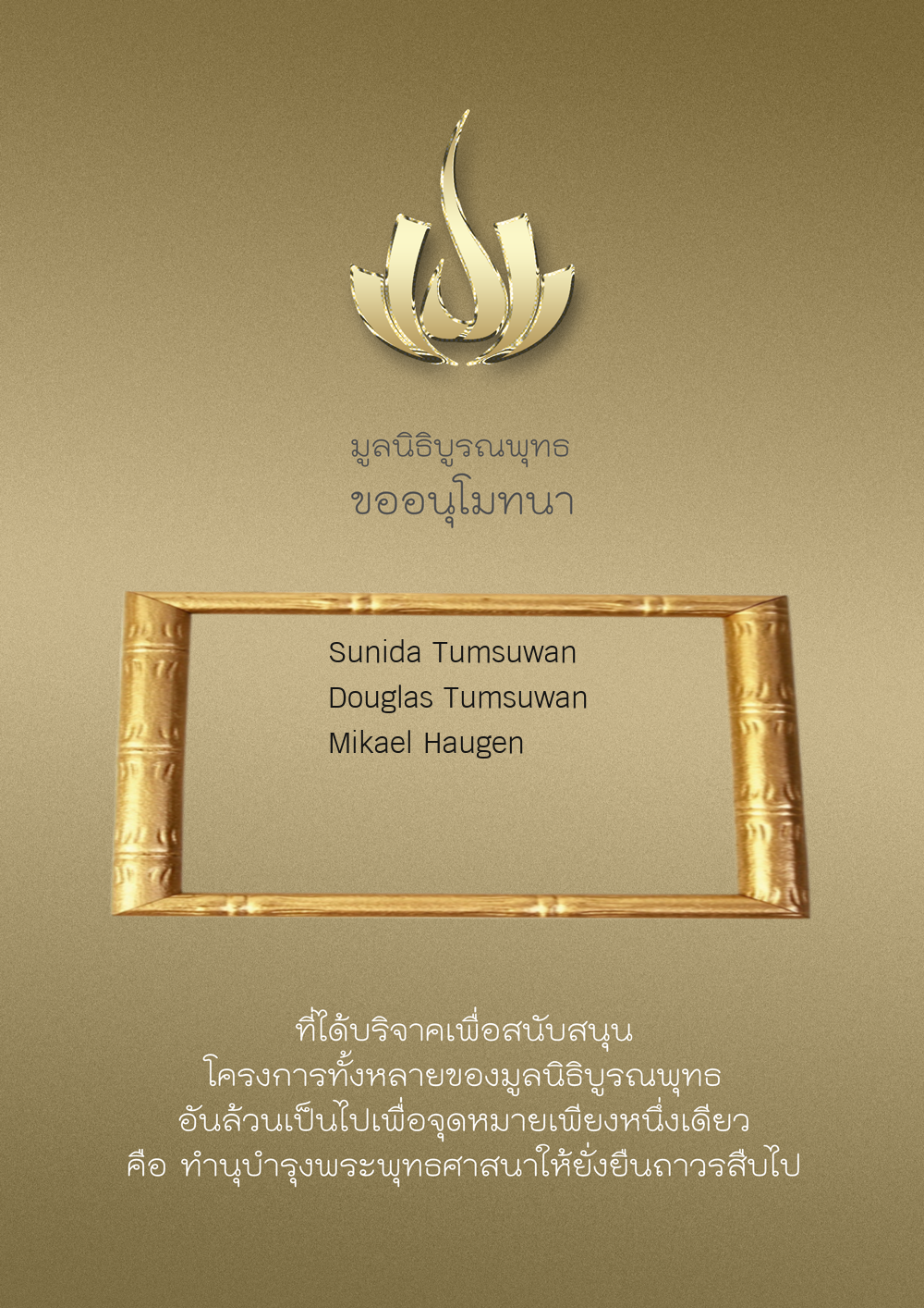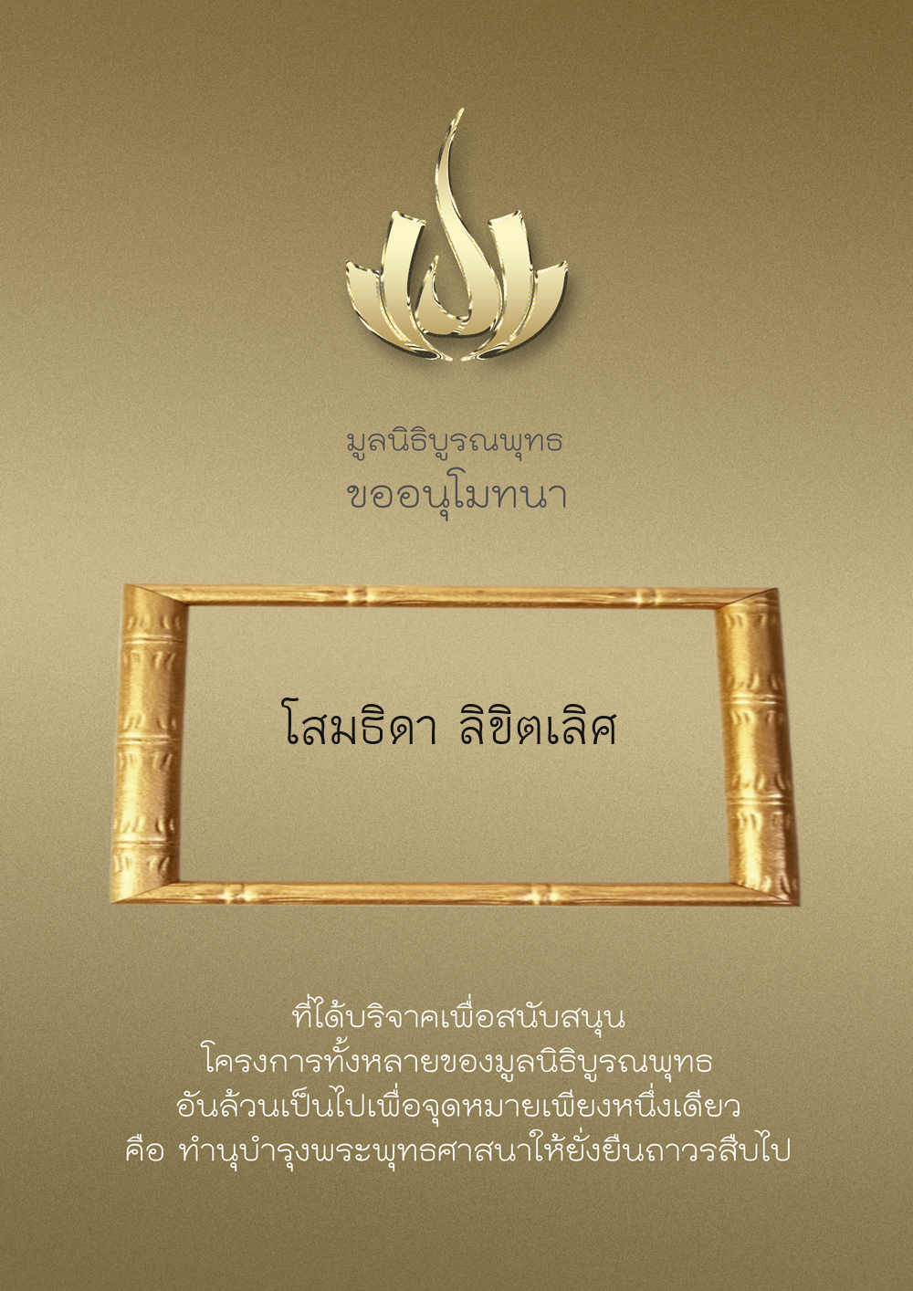 | ลำดับที่ 52 | สุคนทิพย์ คมพิมาย ลินด์ | 500.00 บาท | ภาพที่ระลึก |