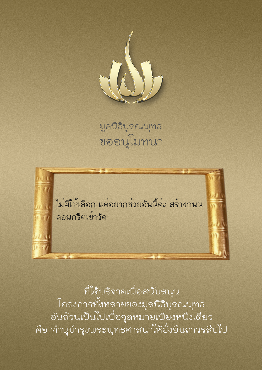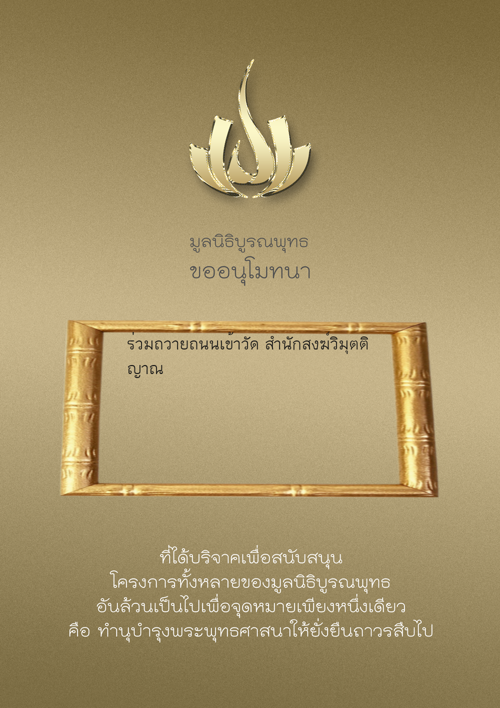 | ลำดับที่ 38 | โครงการ สร้างวัดกับมือ | 200.00 บาท | ภาพที่ระลึก |