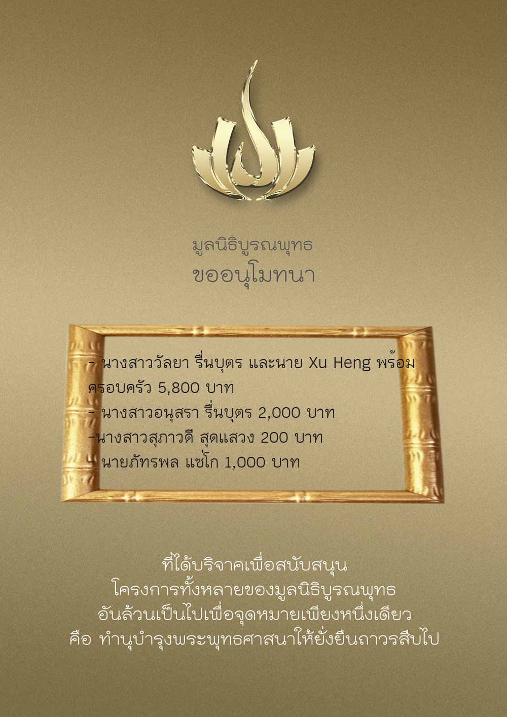 | ลำดับที่ 67 | ไม่ประสงค์ออกนาม | 5,000.00 บาท | ภาพที่ระลึก |