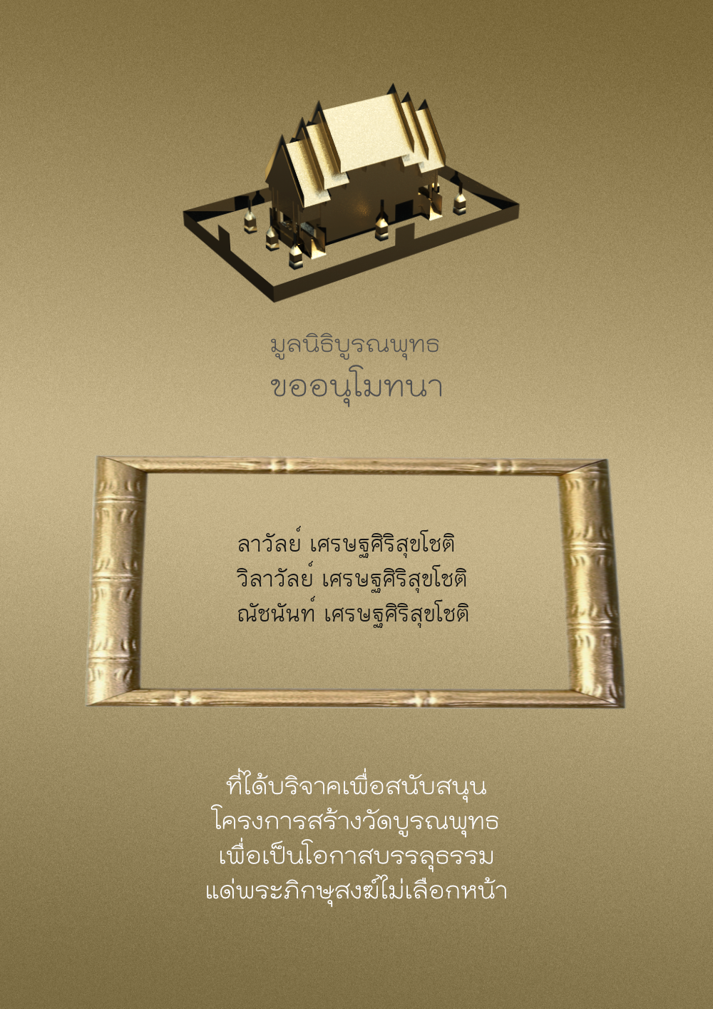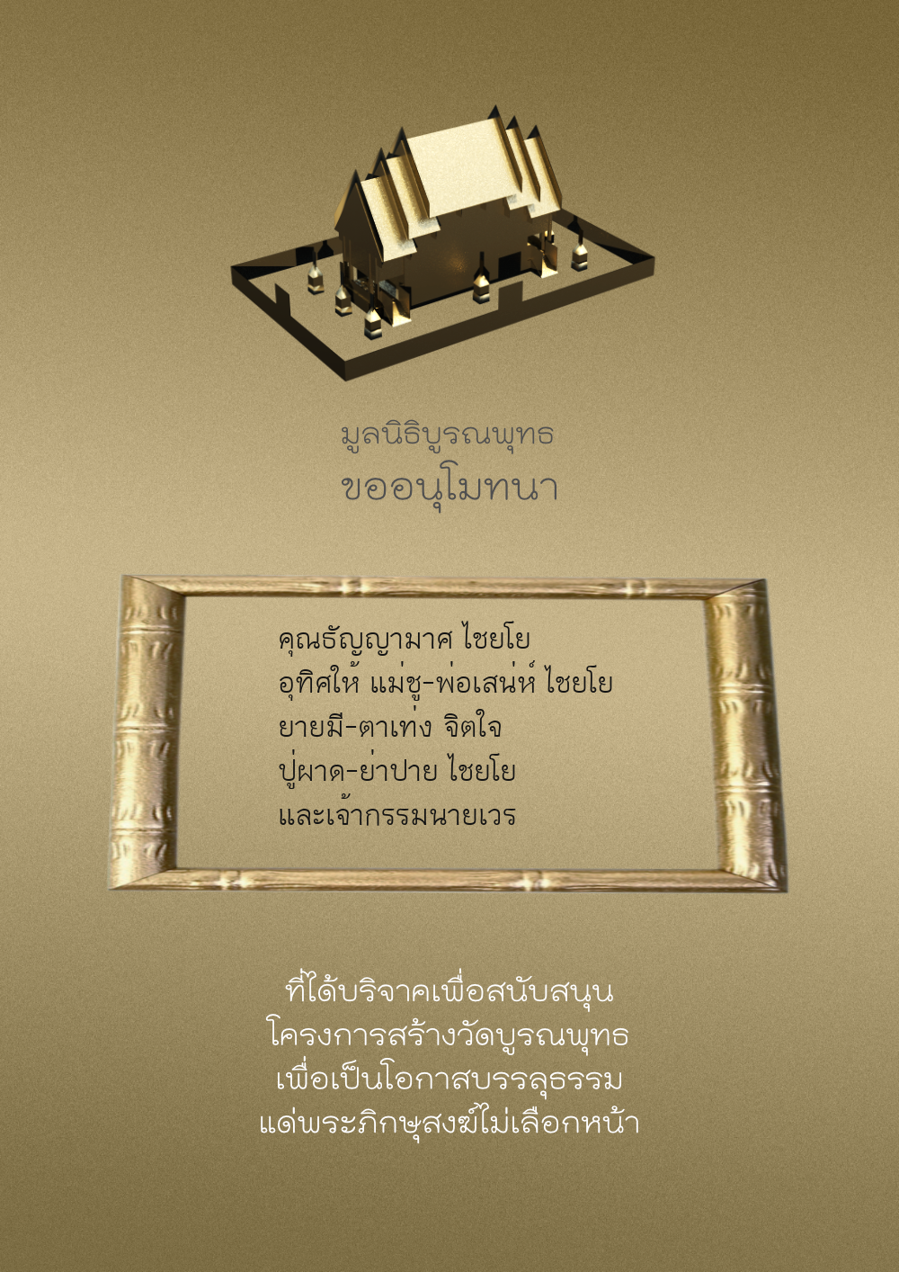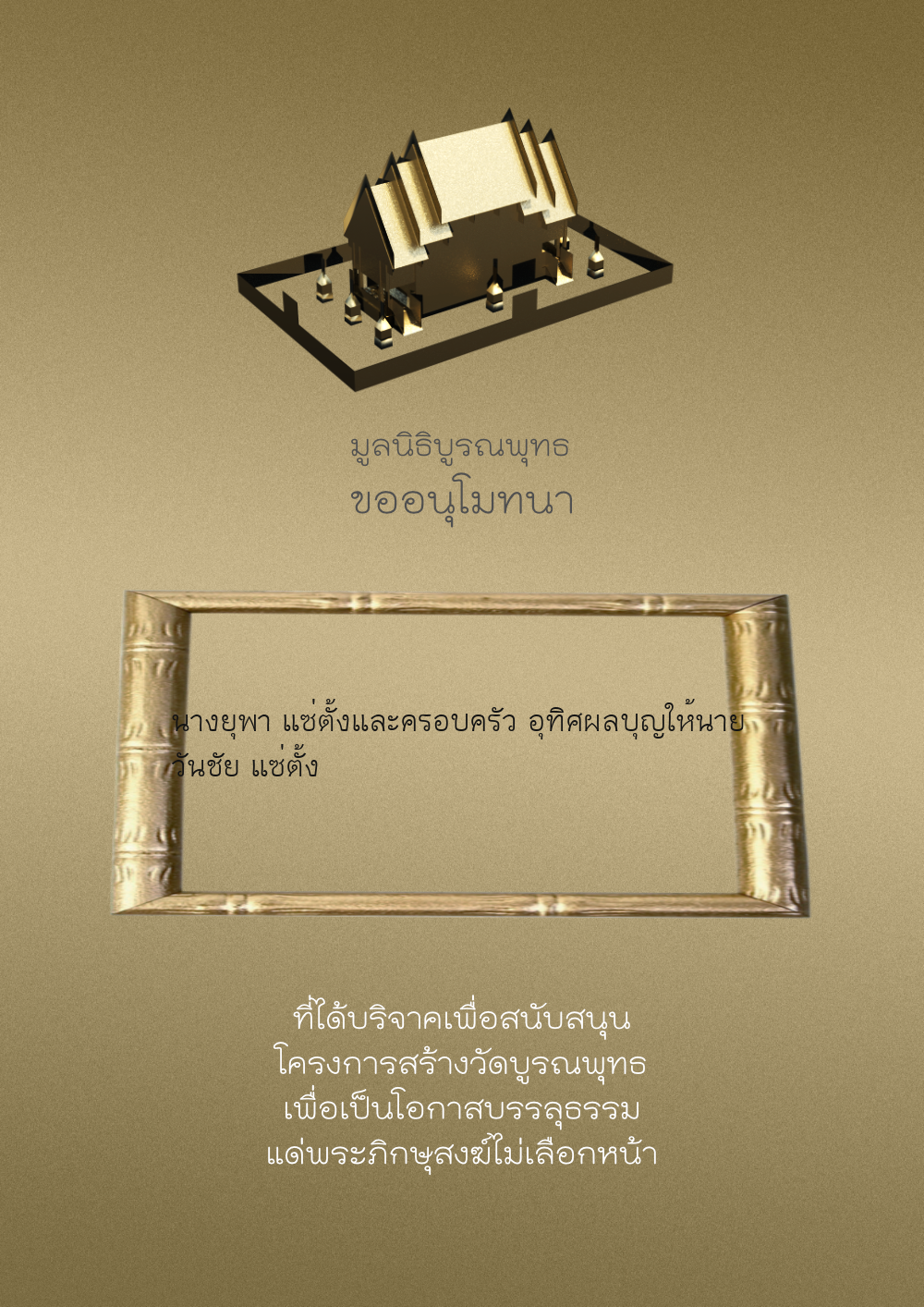 | ลำดับที่ 365 | สร้างกุฏิปฏิบัติธรรม | 108.00 บาท | ภาพที่ระลึก |