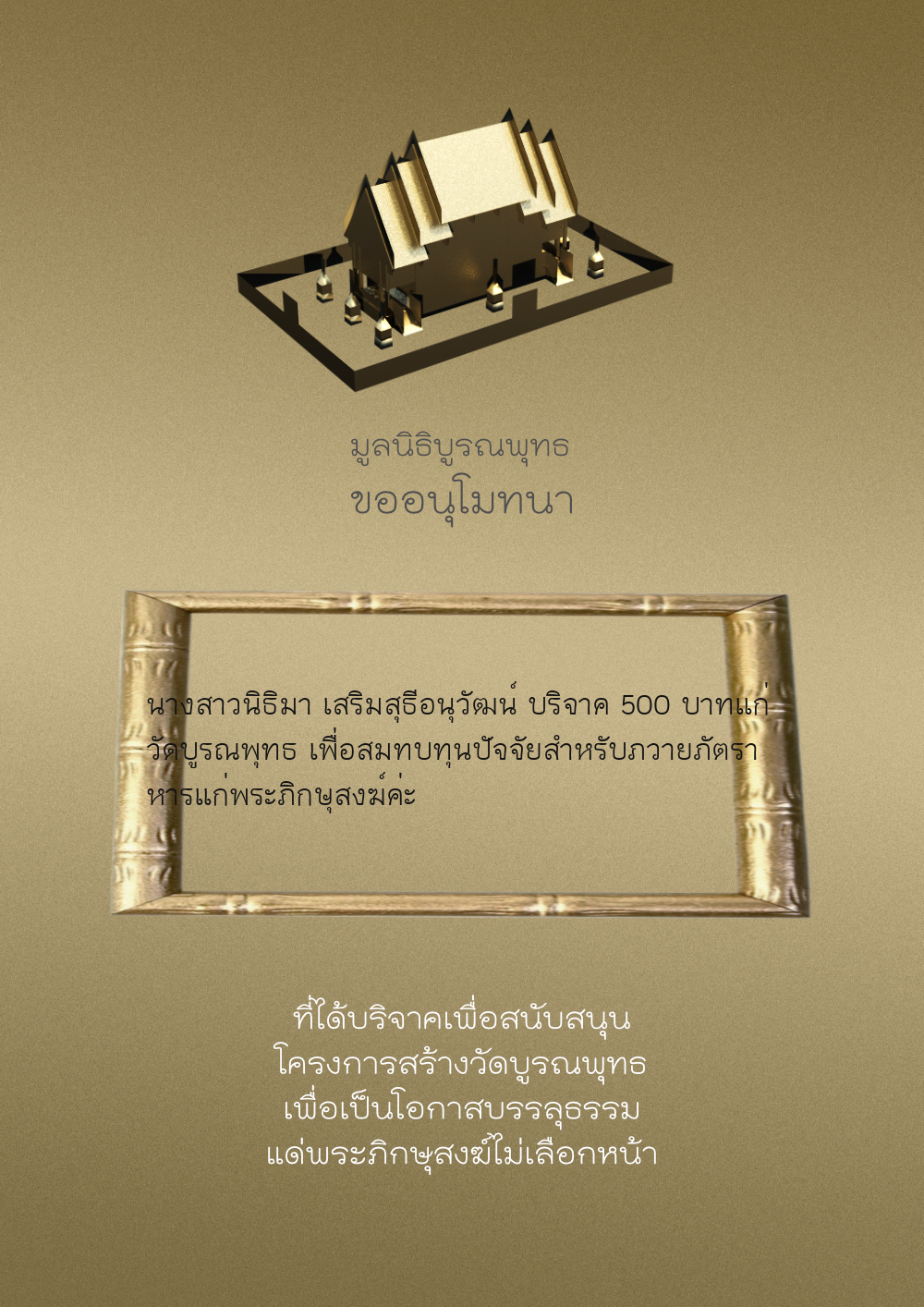 | ลำดับที่ 29 | สร้างวัดกับมือ | 500.00 บาท | ภาพที่ระลึก |