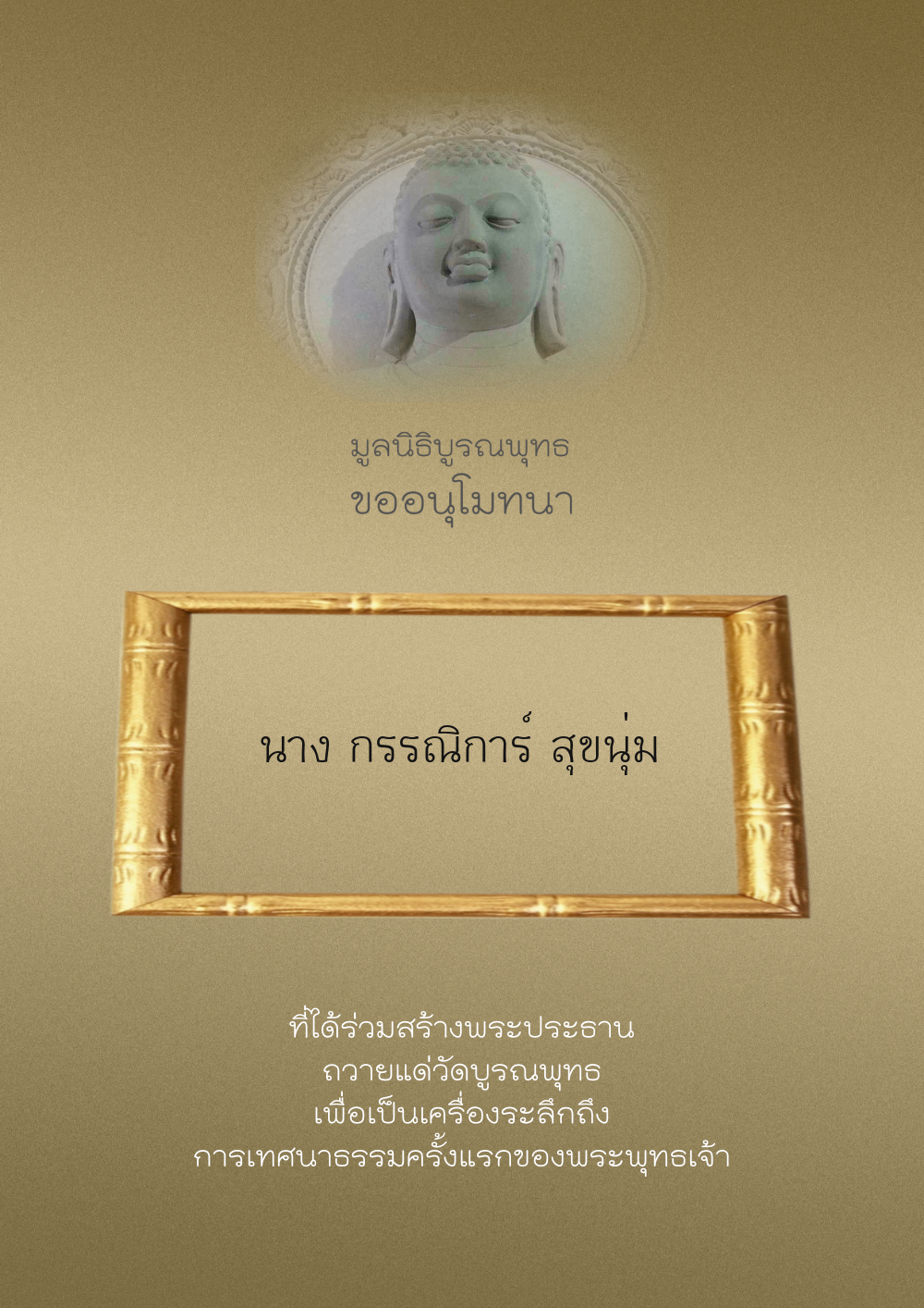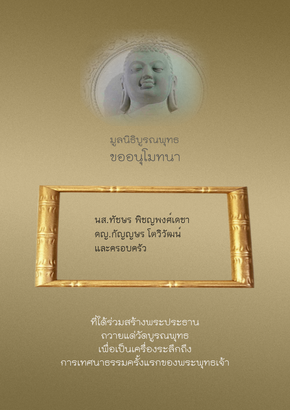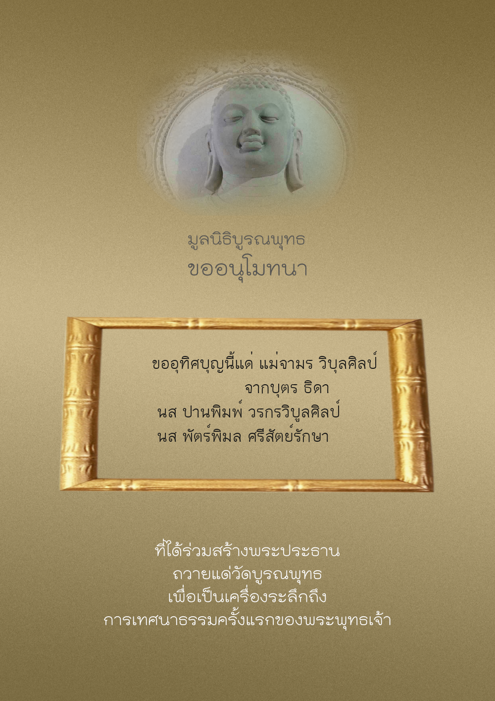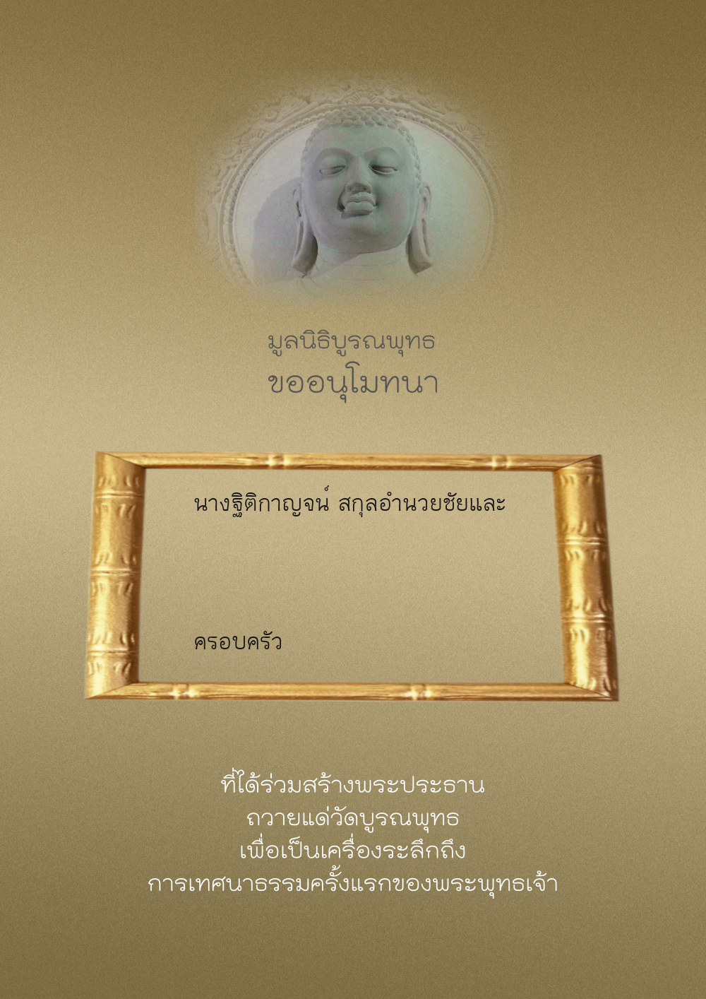 | ลำดับที่ 44 | ศุภะกรณี ตั้งจิตนบและครอบครัว | 1,000.00 บาท | ภาพที่ระลึก |