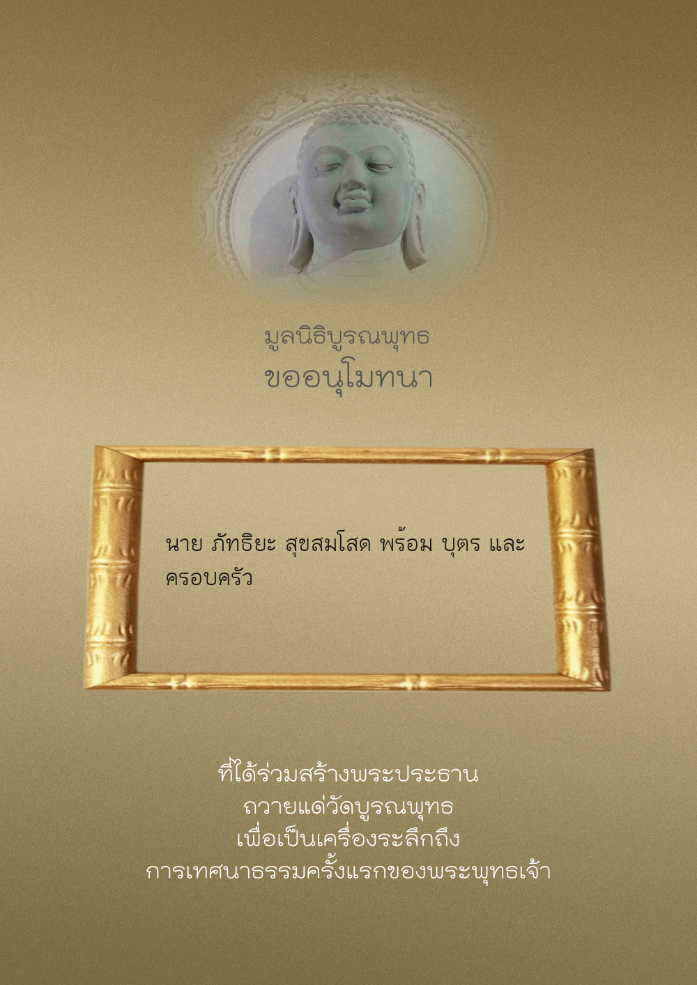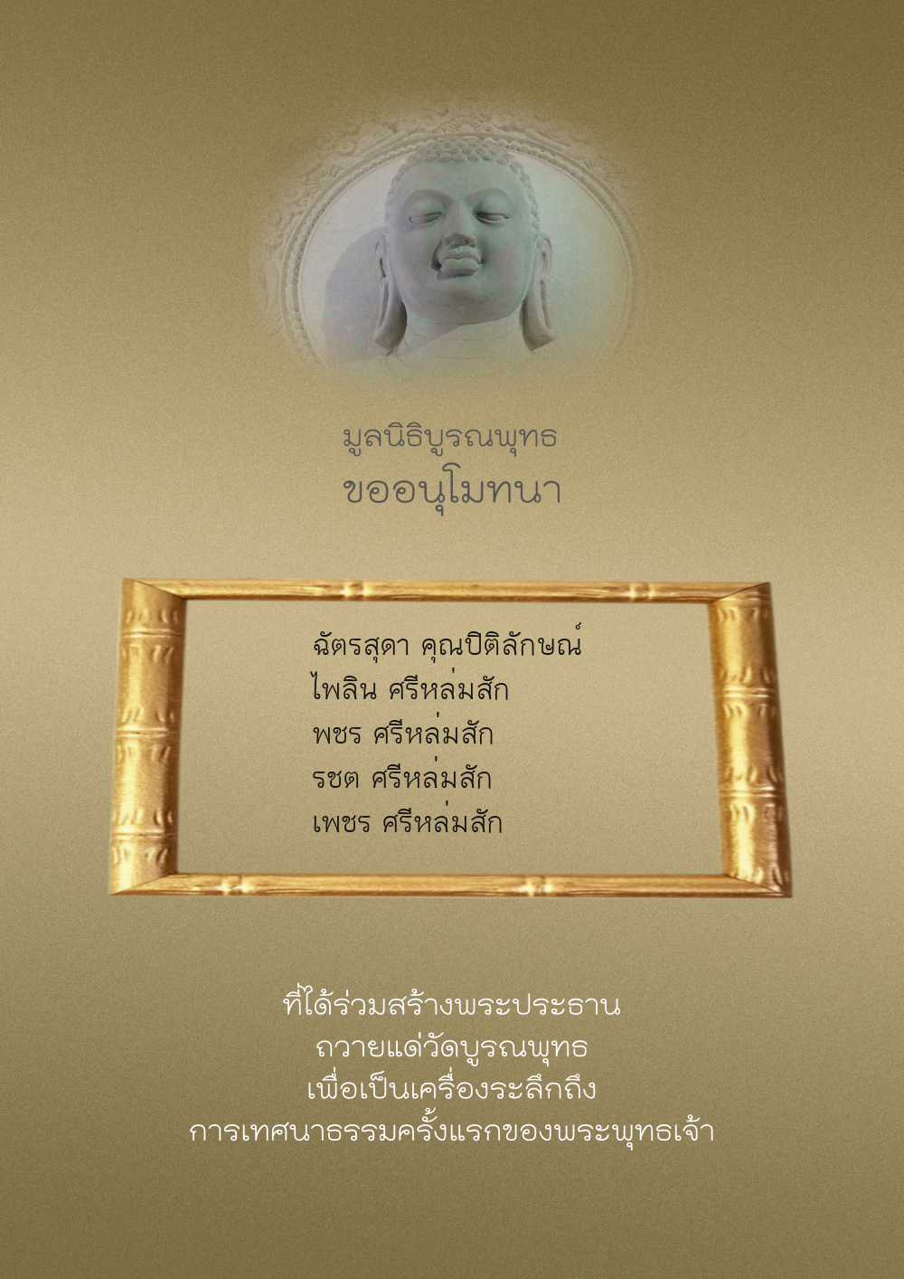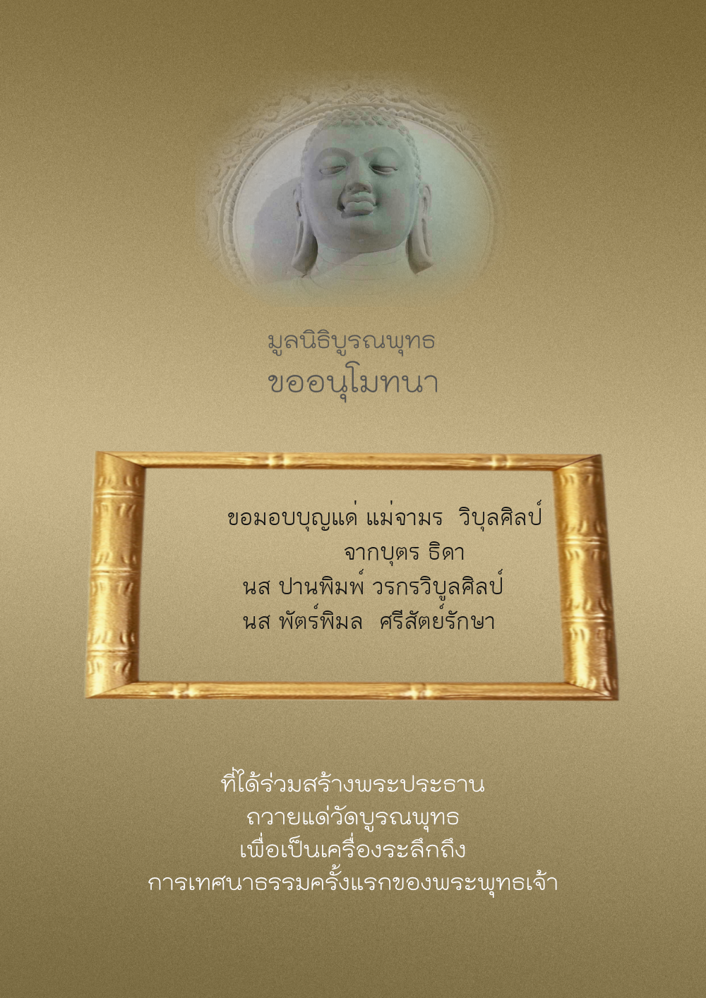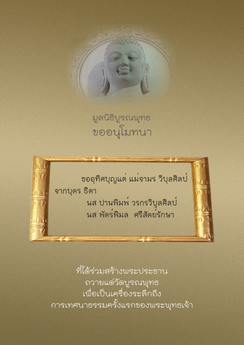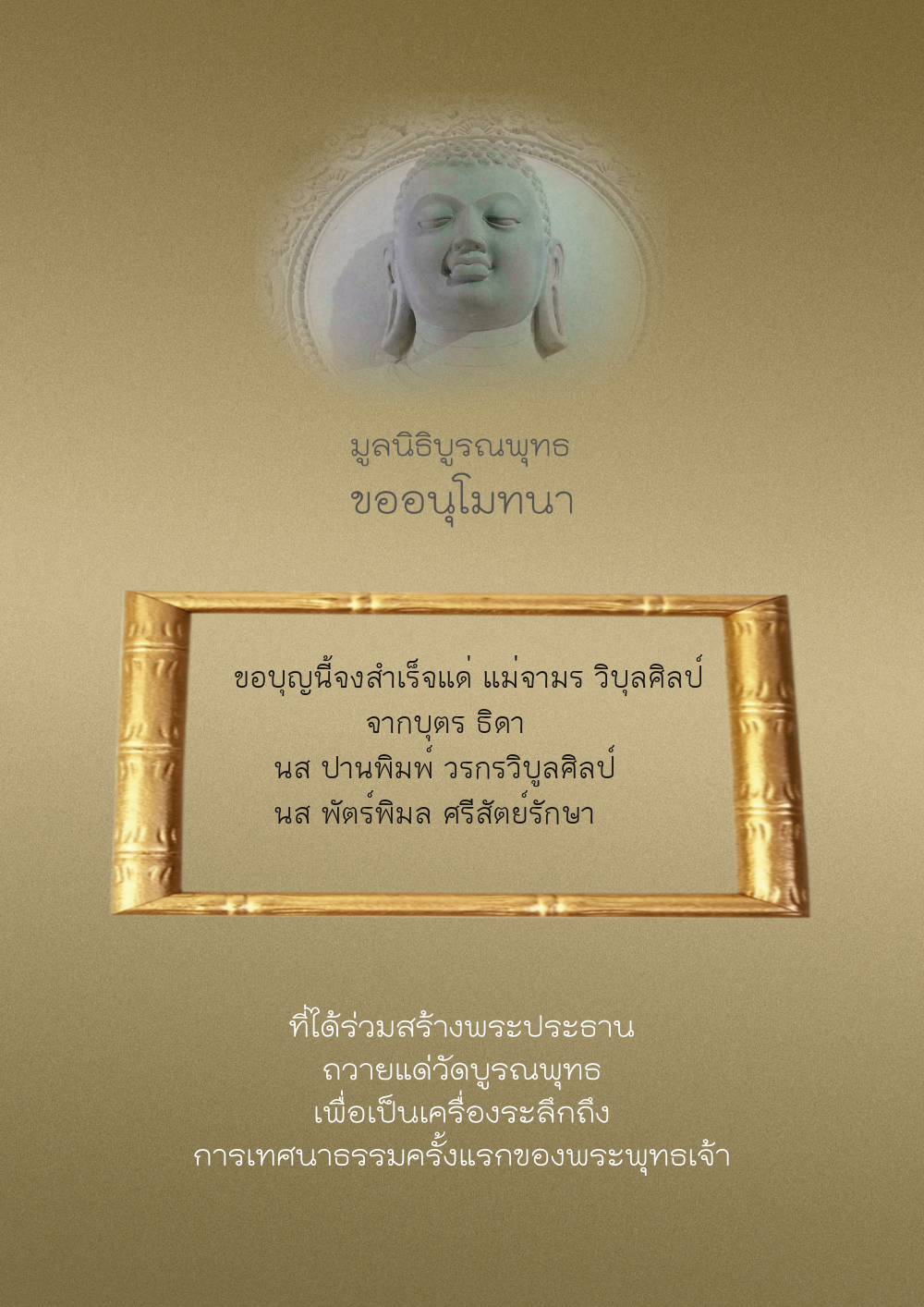 | ลำดับที่ 44 | ศุภะกรณี ตั้งจิตนบและครอบครัว | 1,000.00 บาท | ภาพที่ระลึก |