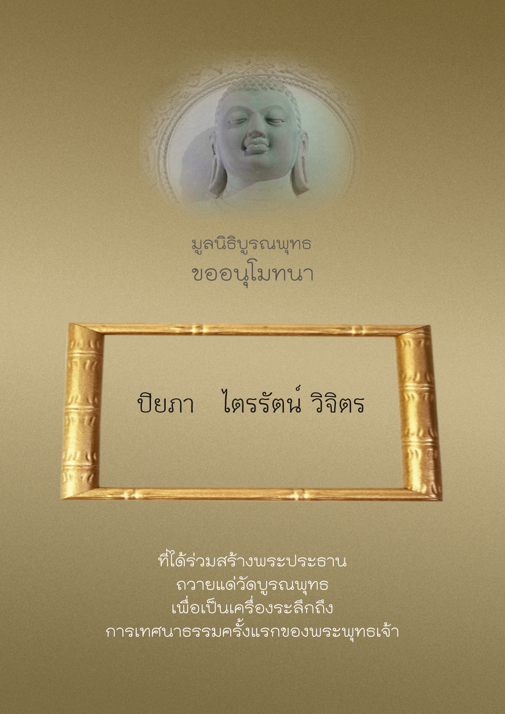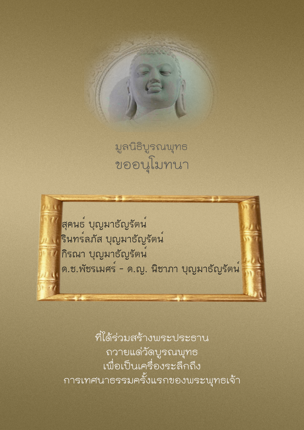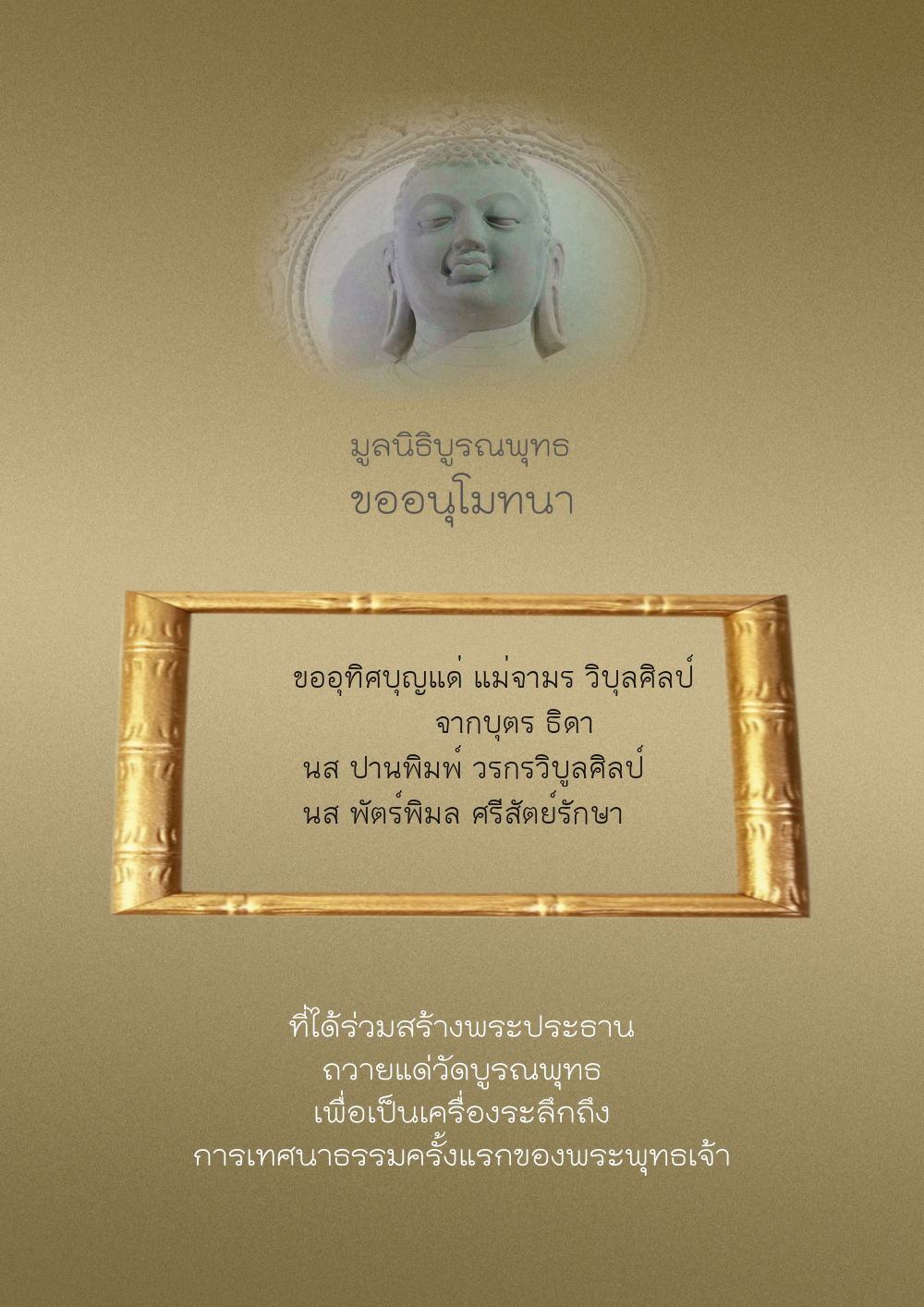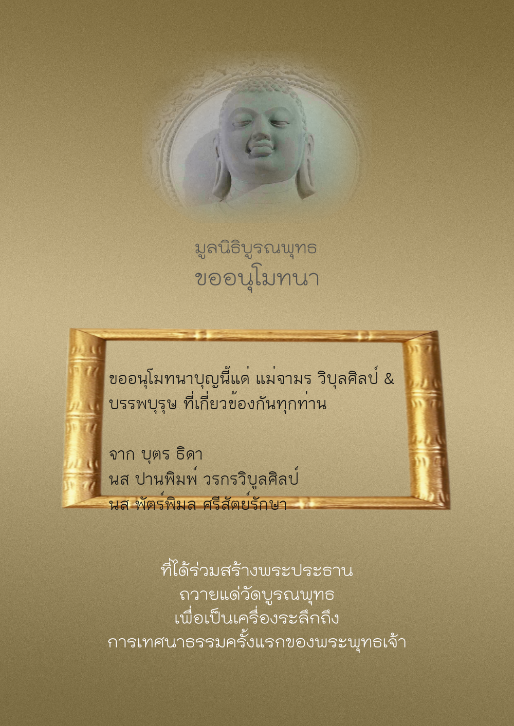 | ลำดับที่ 44 | ศุภะกรณี ตั้งจิตนบและครอบครัว | 1,000.00 บาท | ภาพที่ระลึก |