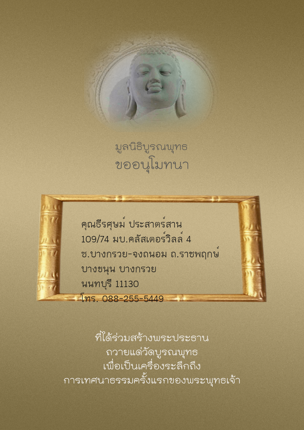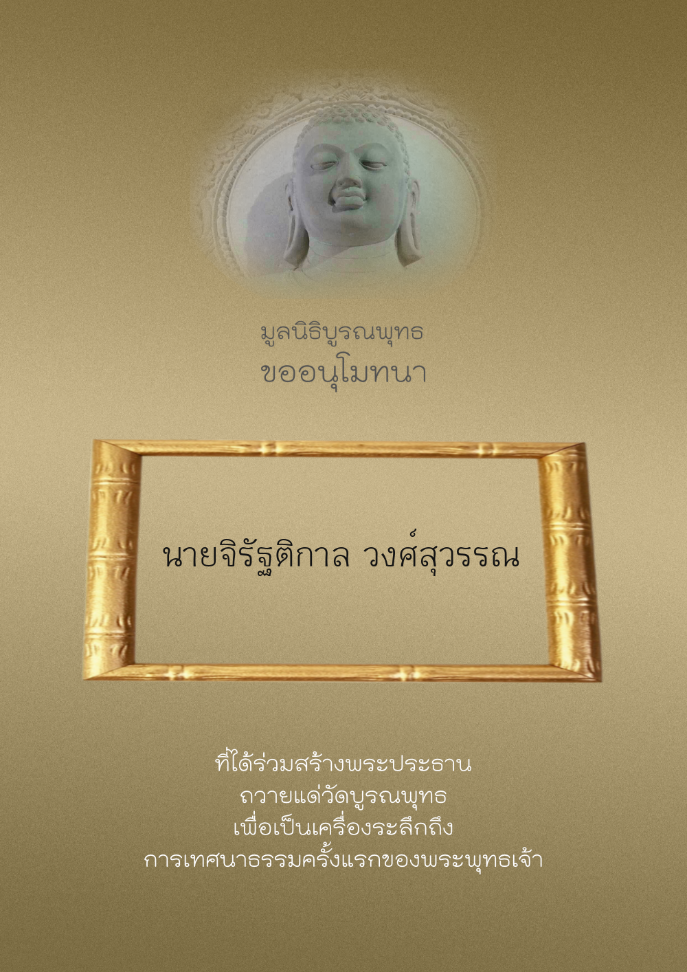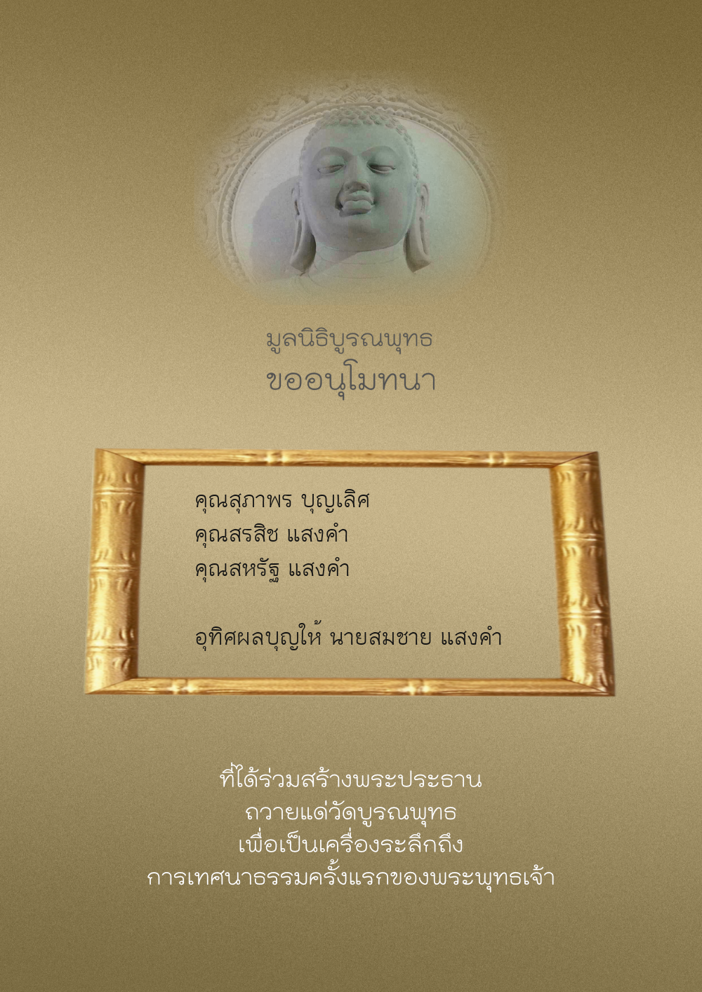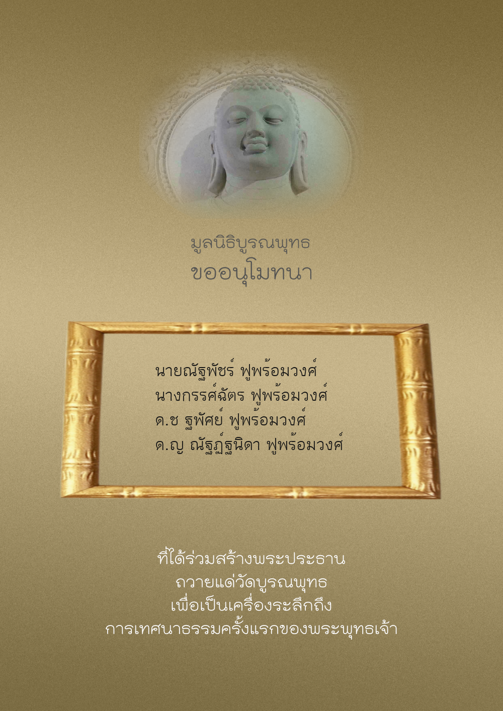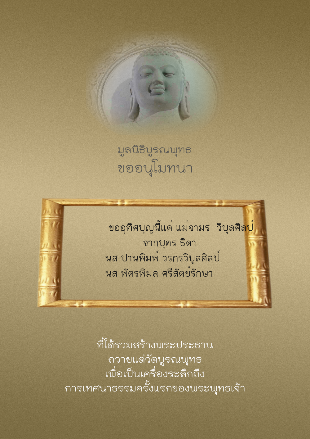 | ลำดับที่ 44 | ศุภะกรณี ตั้งจิตนบและครอบครัว | 1,000.00 บาท | ภาพที่ระลึก |