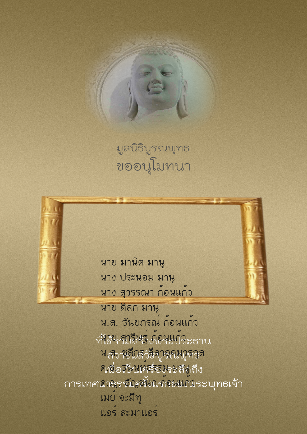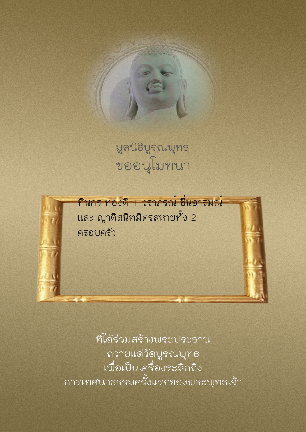 | ลำดับที่ 81 | ธนพร อินทร์แก้ว และครอบครัว | 300.00 บาท | ภาพที่ระลึก |
