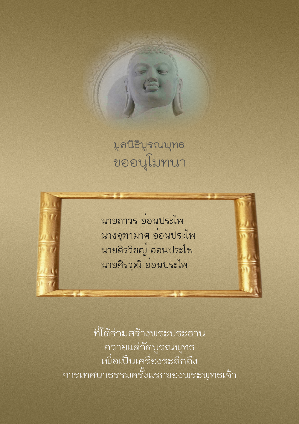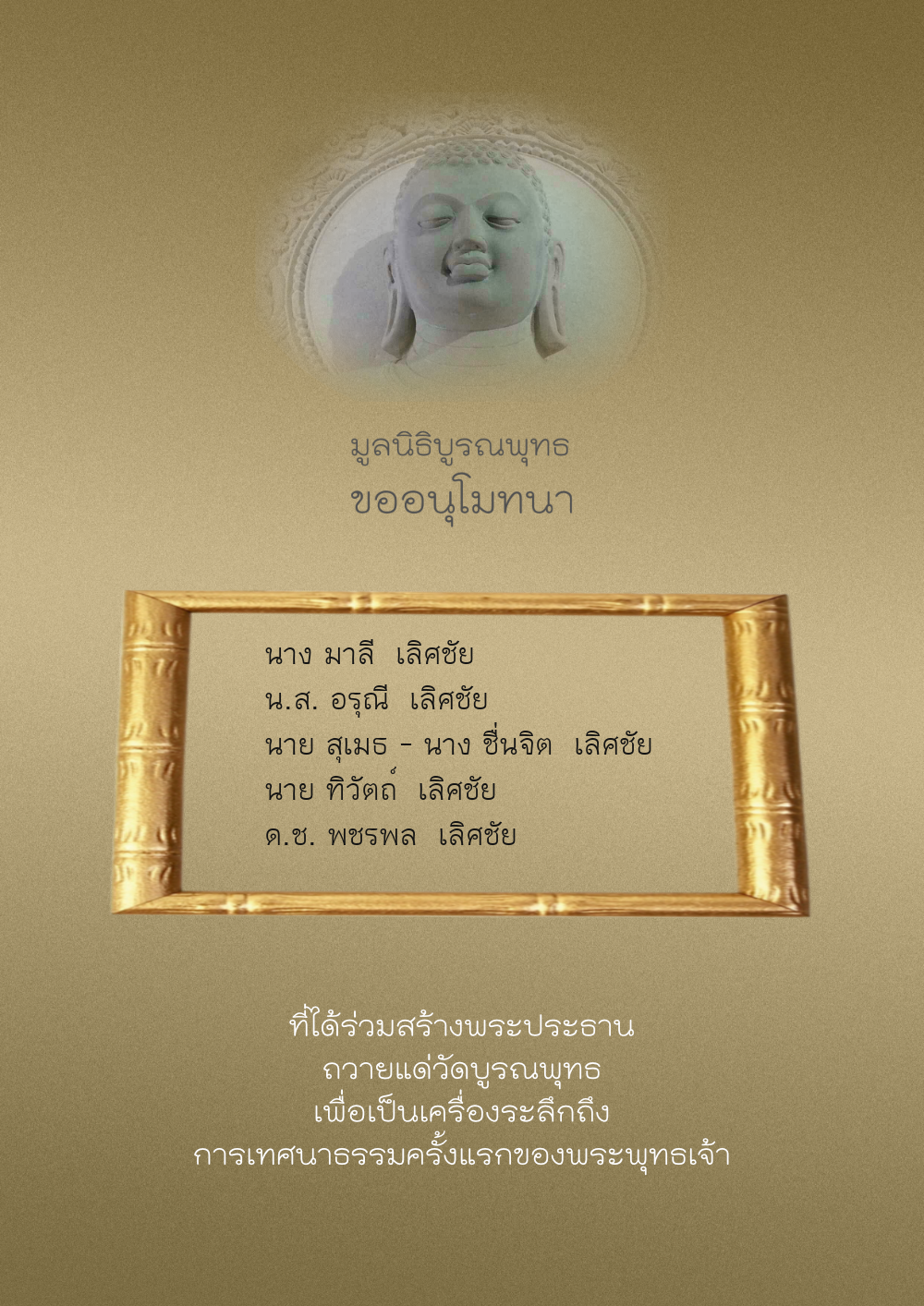 | ลำดับที่ 40 | อรอุมา ชลัมพุชและครอบครัว | 500.00 บาท | ภาพที่ระลึก |