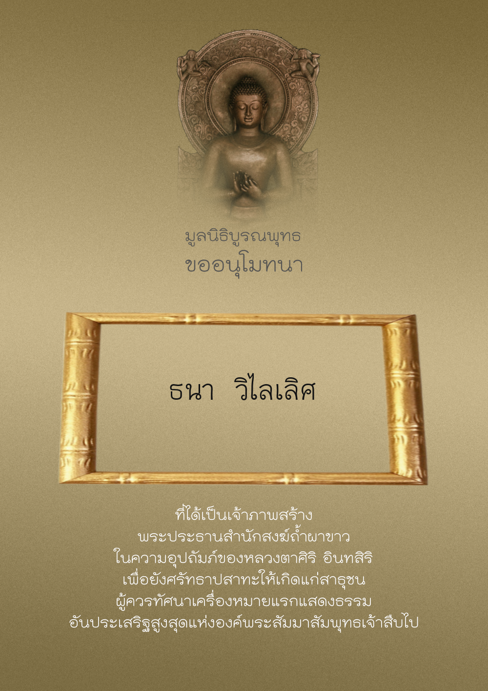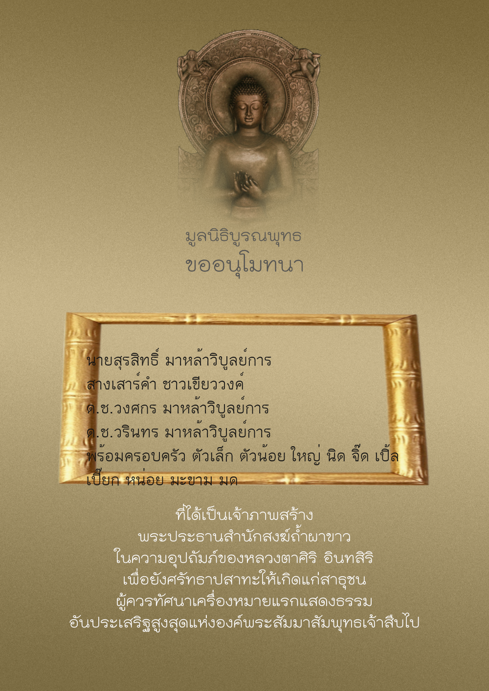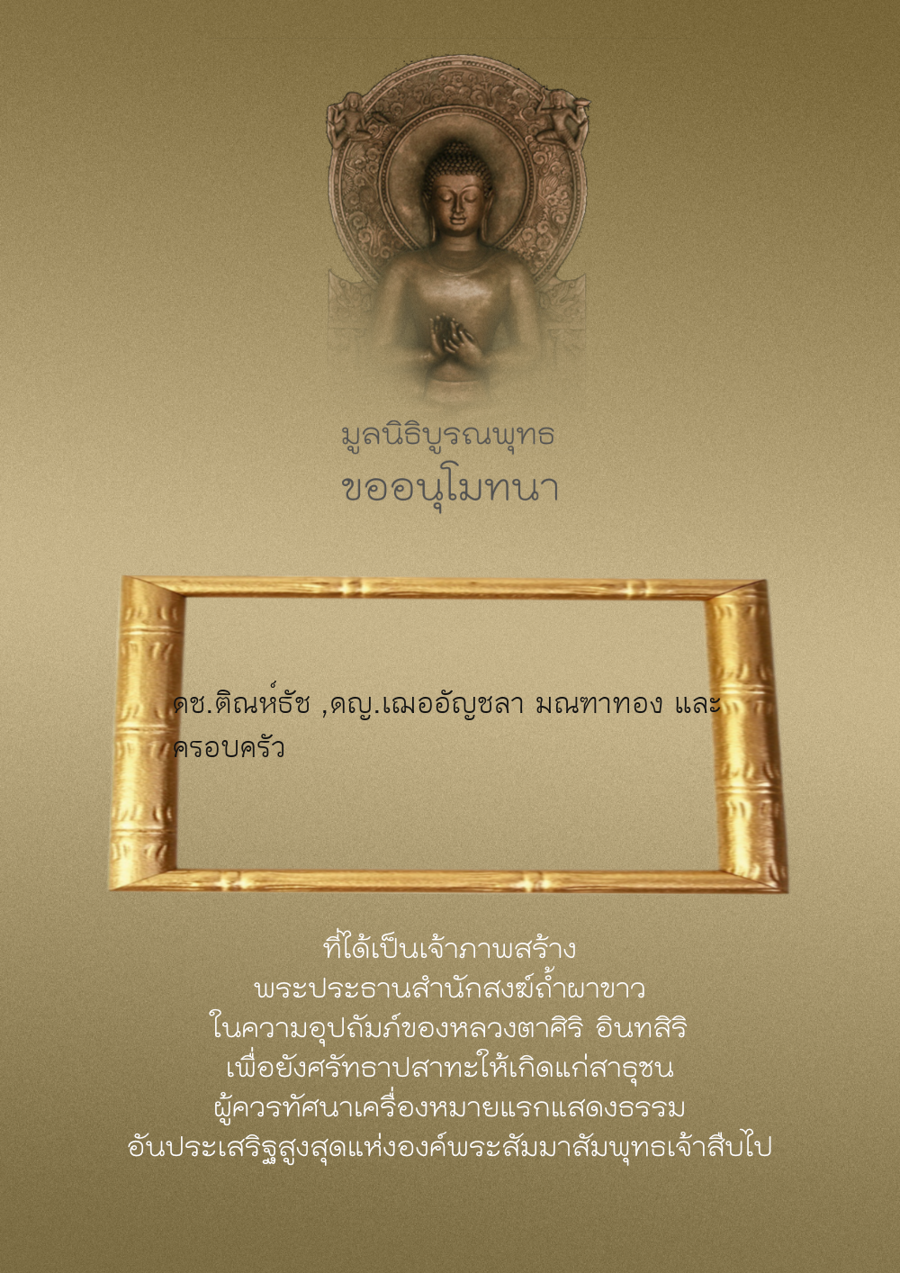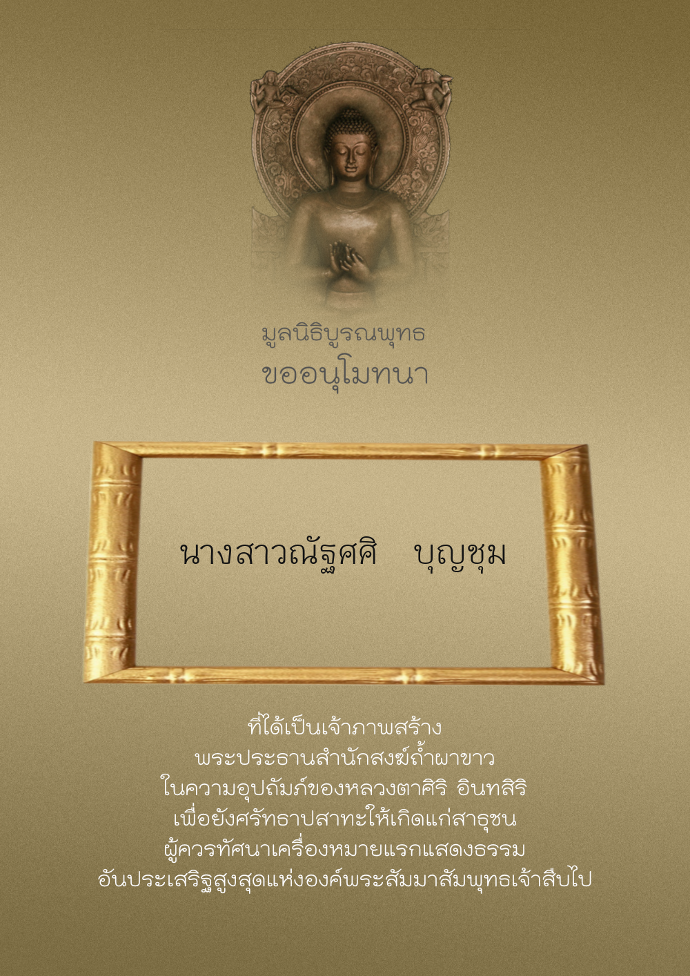 | ลำดับที่ 209 | บุญตา พิสุทธิ์โกมล | 500.00 บาท | ภาพที่ระลึก |