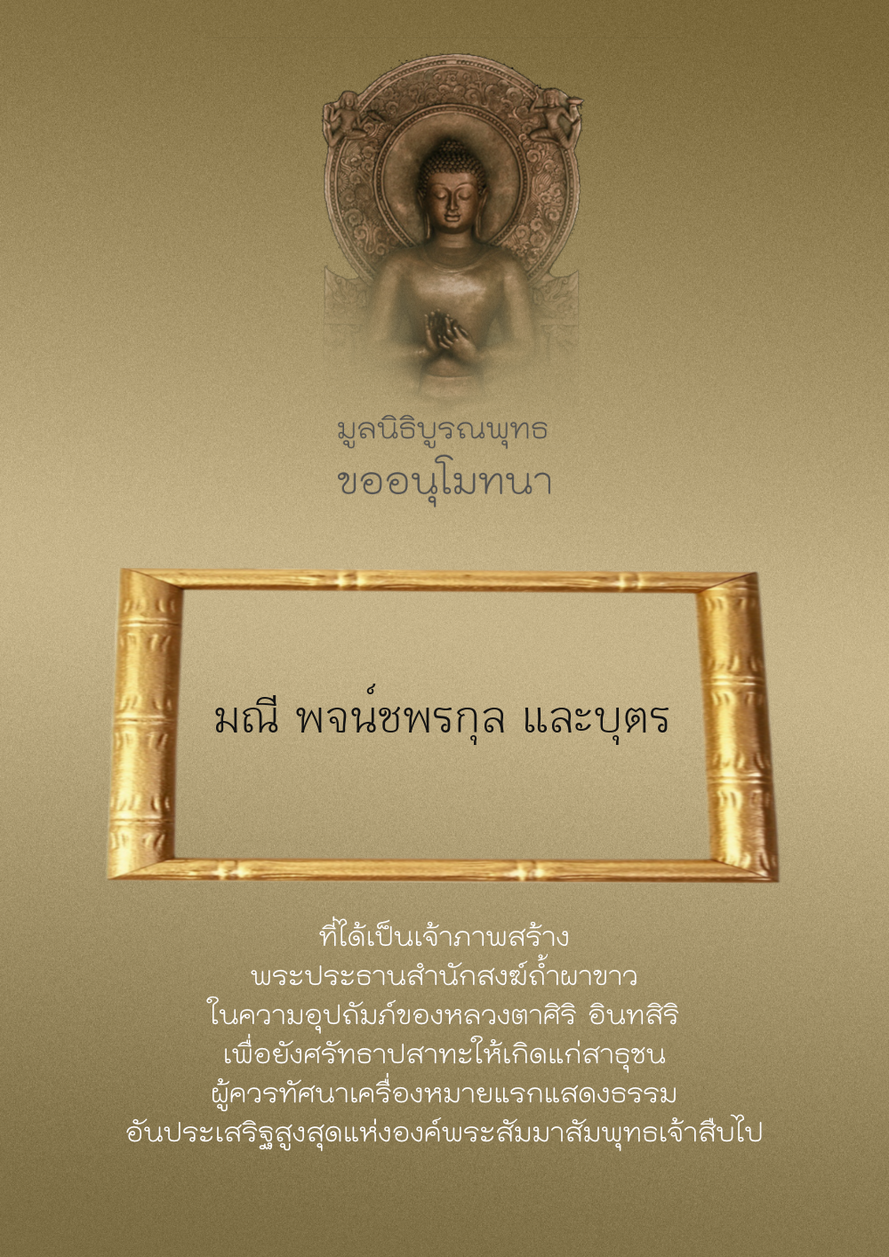 | ลำดับที่ 154 | อุทิศแด่ มณี พจน์ชพรกุลและบุตร | 100.00 บาท | ภาพที่ระลึก |