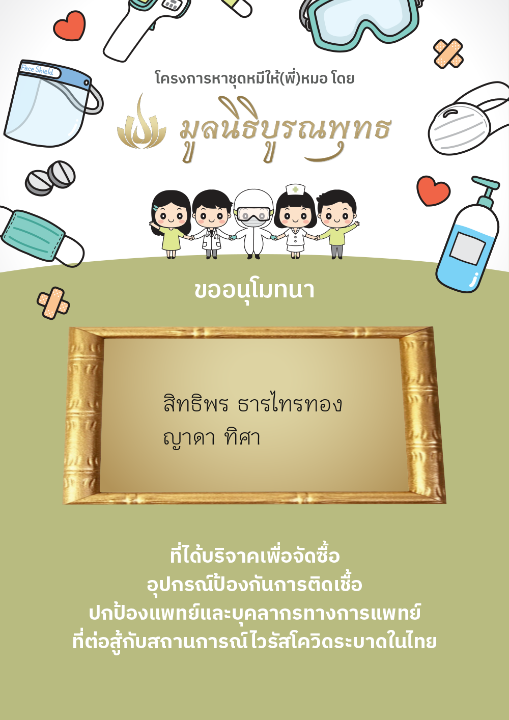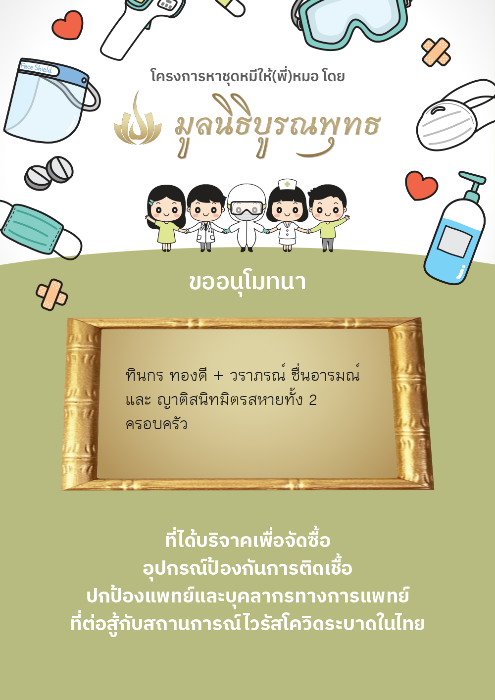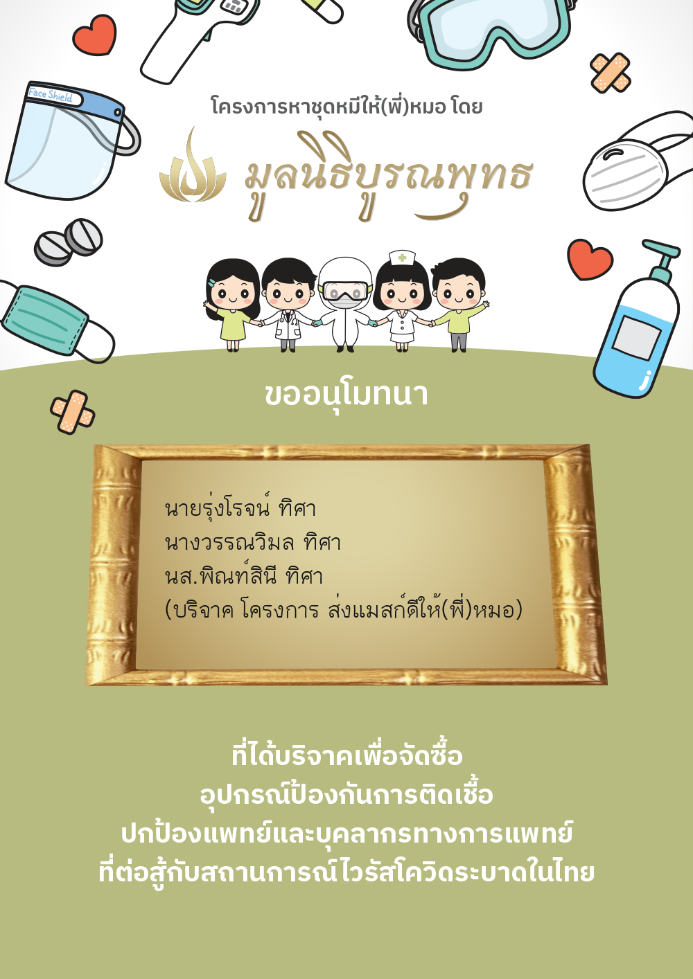 นางวรรณวิมล ทิศา นส.พิณท์สินี ทิศา (บริจาค โครงการ ส่งแมสก์ดีให้(พี่)หมอ) | 490.00 บาท | ภาพที่ระลึก |