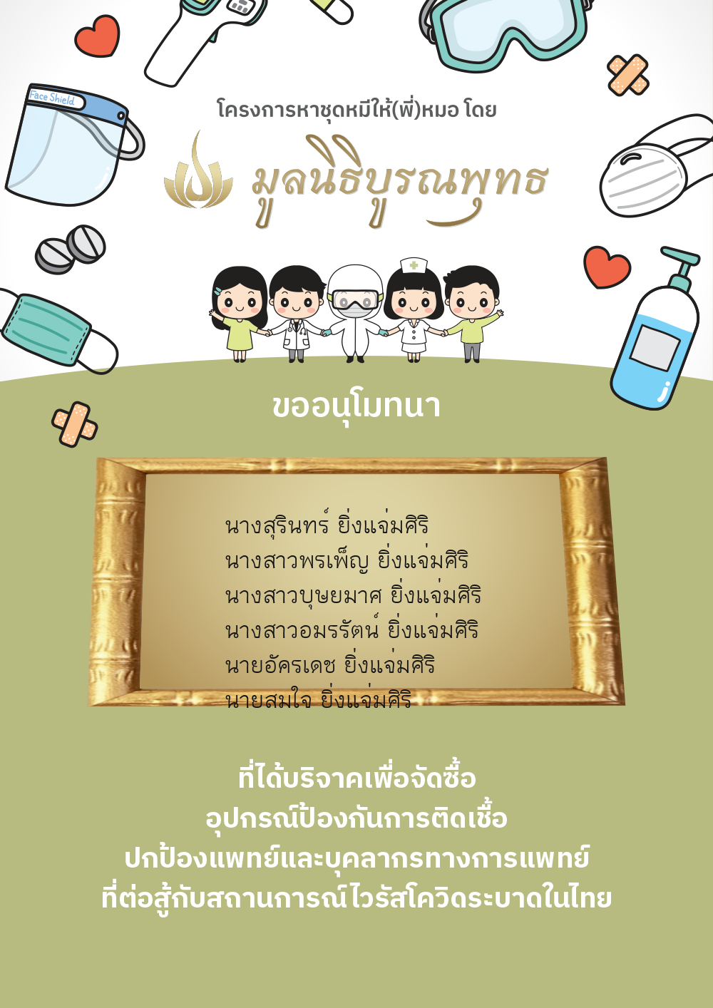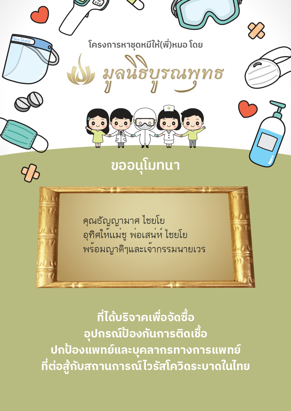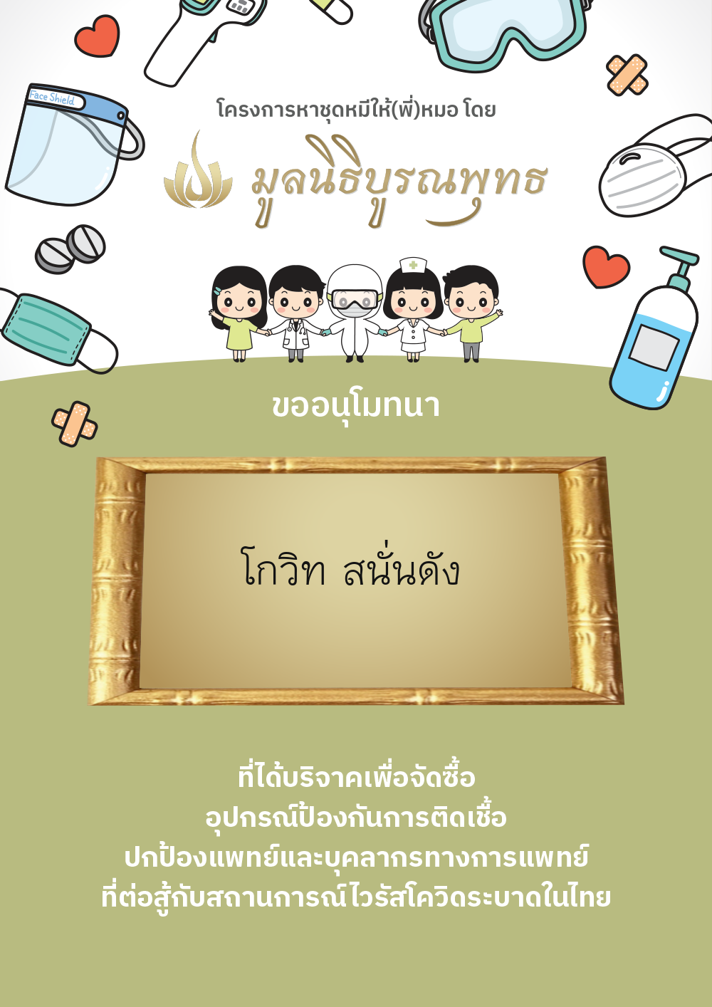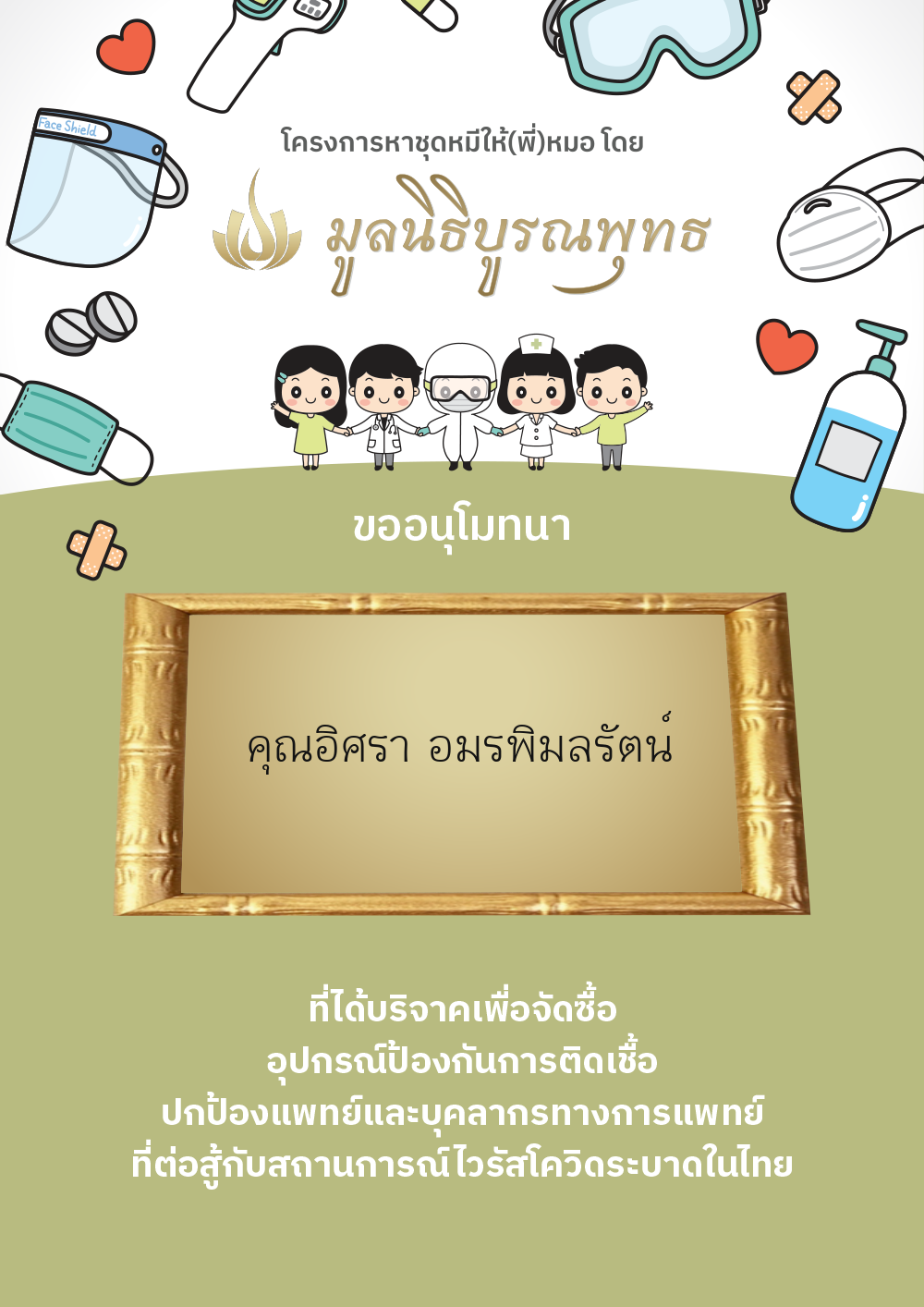 | ลำดับที่ 2030 | แมสของแท้ให้พี่หมอ | 1,000.00 บาท | ภาพที่ระลึก |