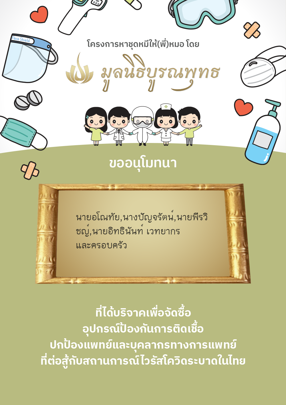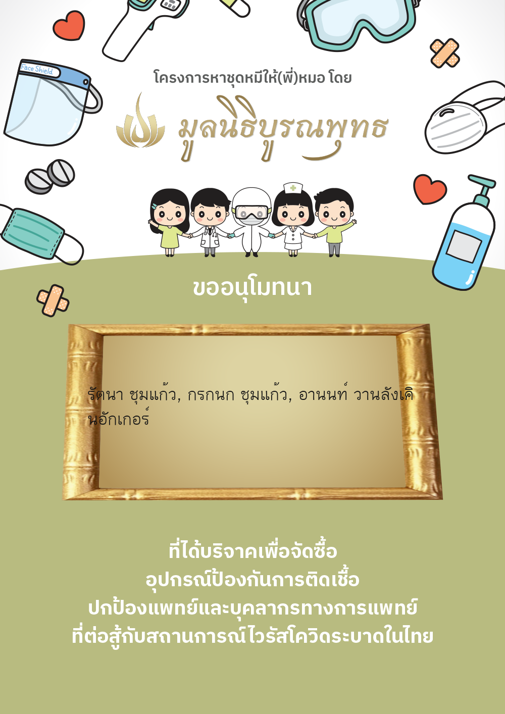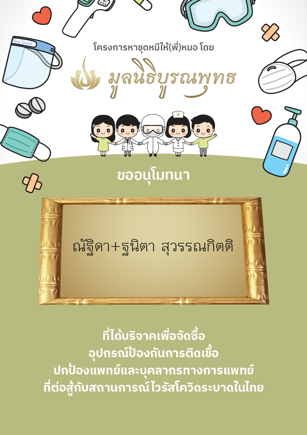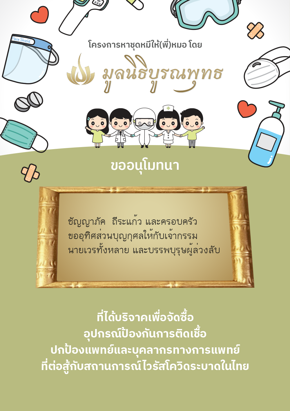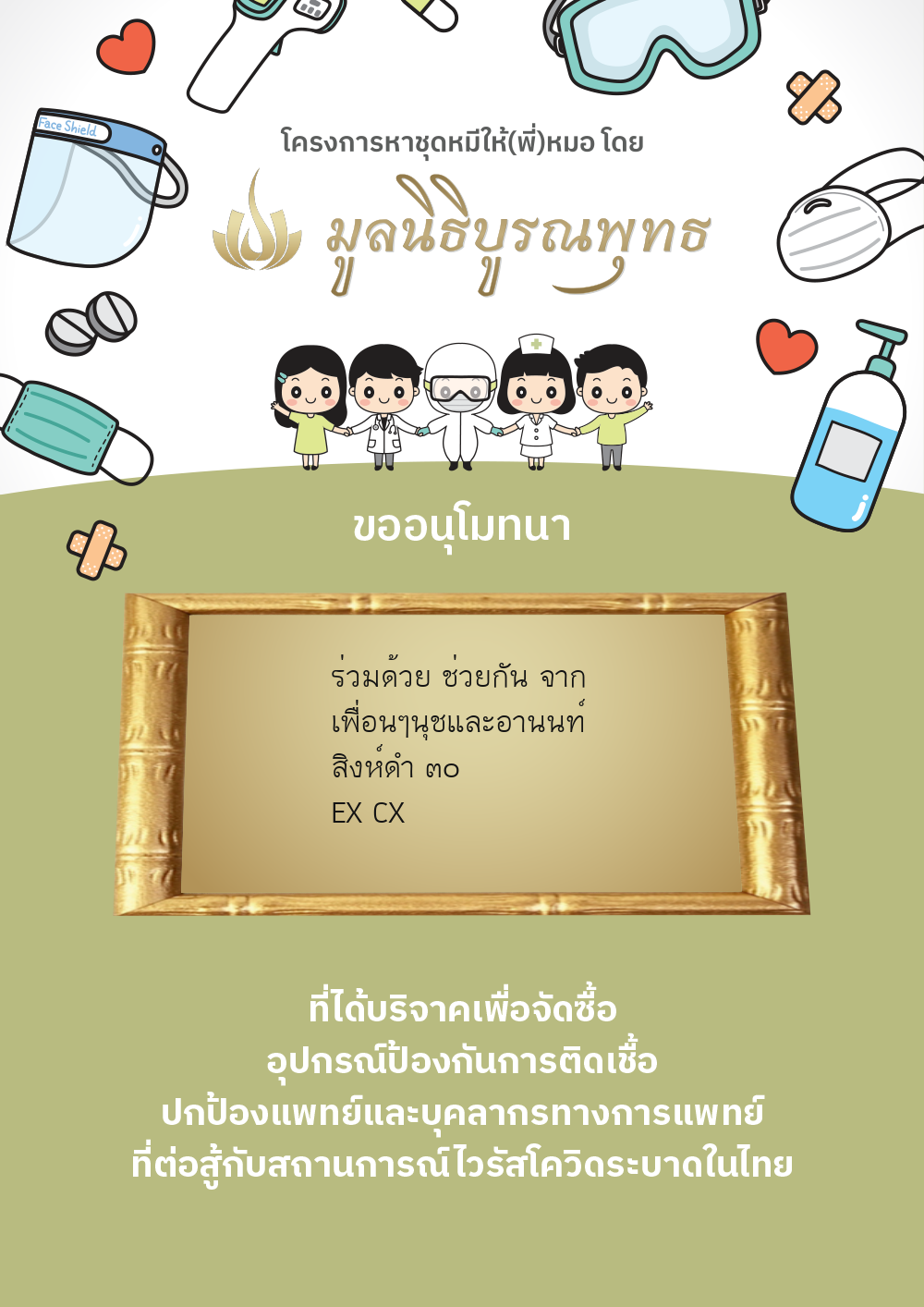 | ลำดับที่ 2030 | แมสของแท้ให้พี่หมอ | 1,000.00 บาท | ภาพที่ระลึก |