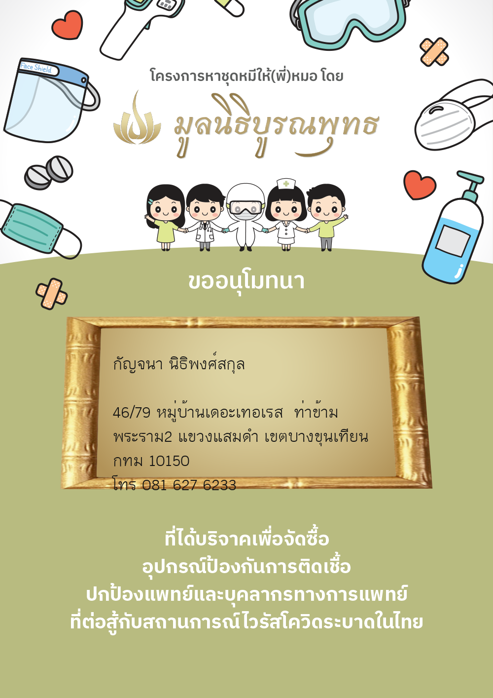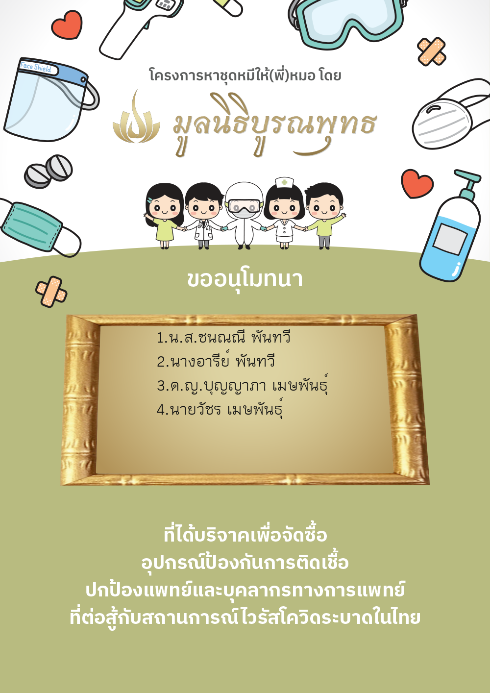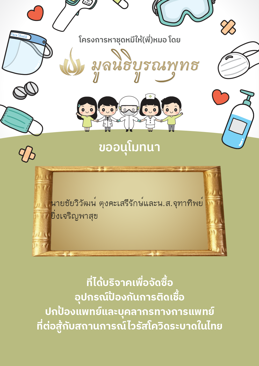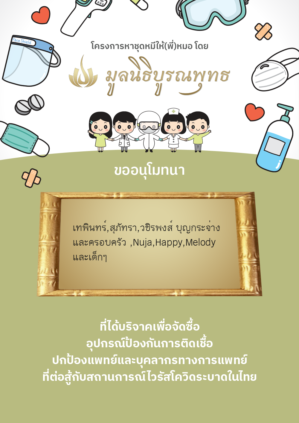 | ลำดับที่ 2030 | แมสของแท้ให้พี่หมอ | 1,000.00 บาท | ภาพที่ระลึก |