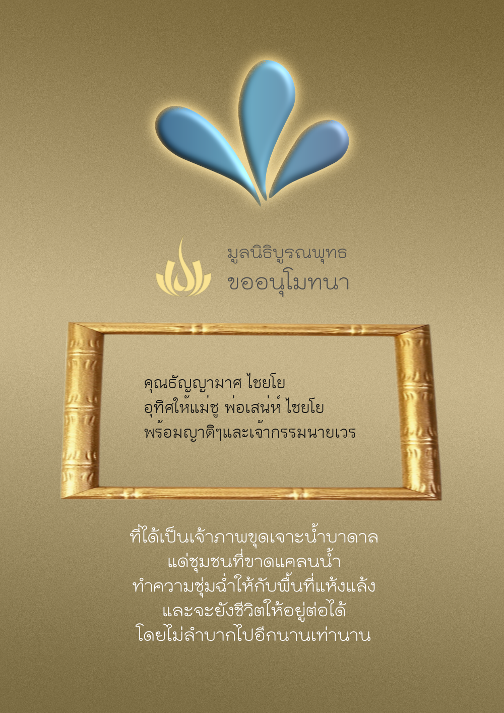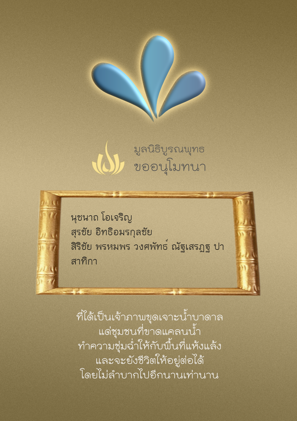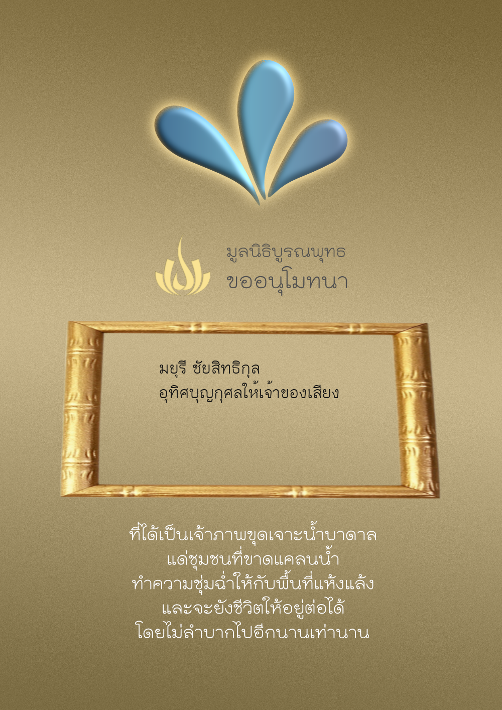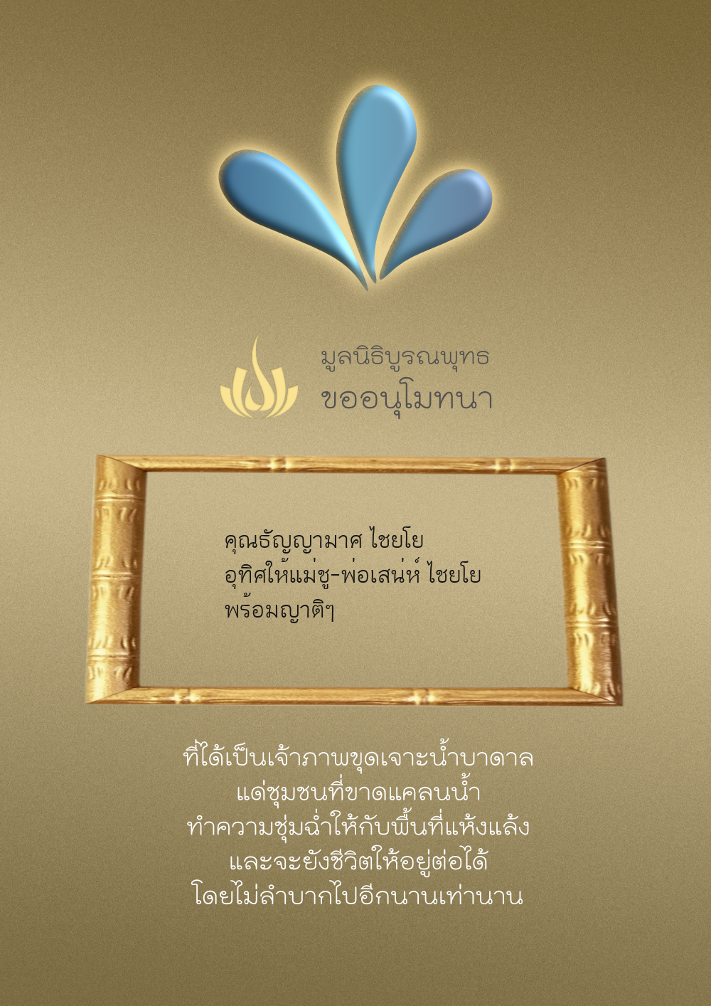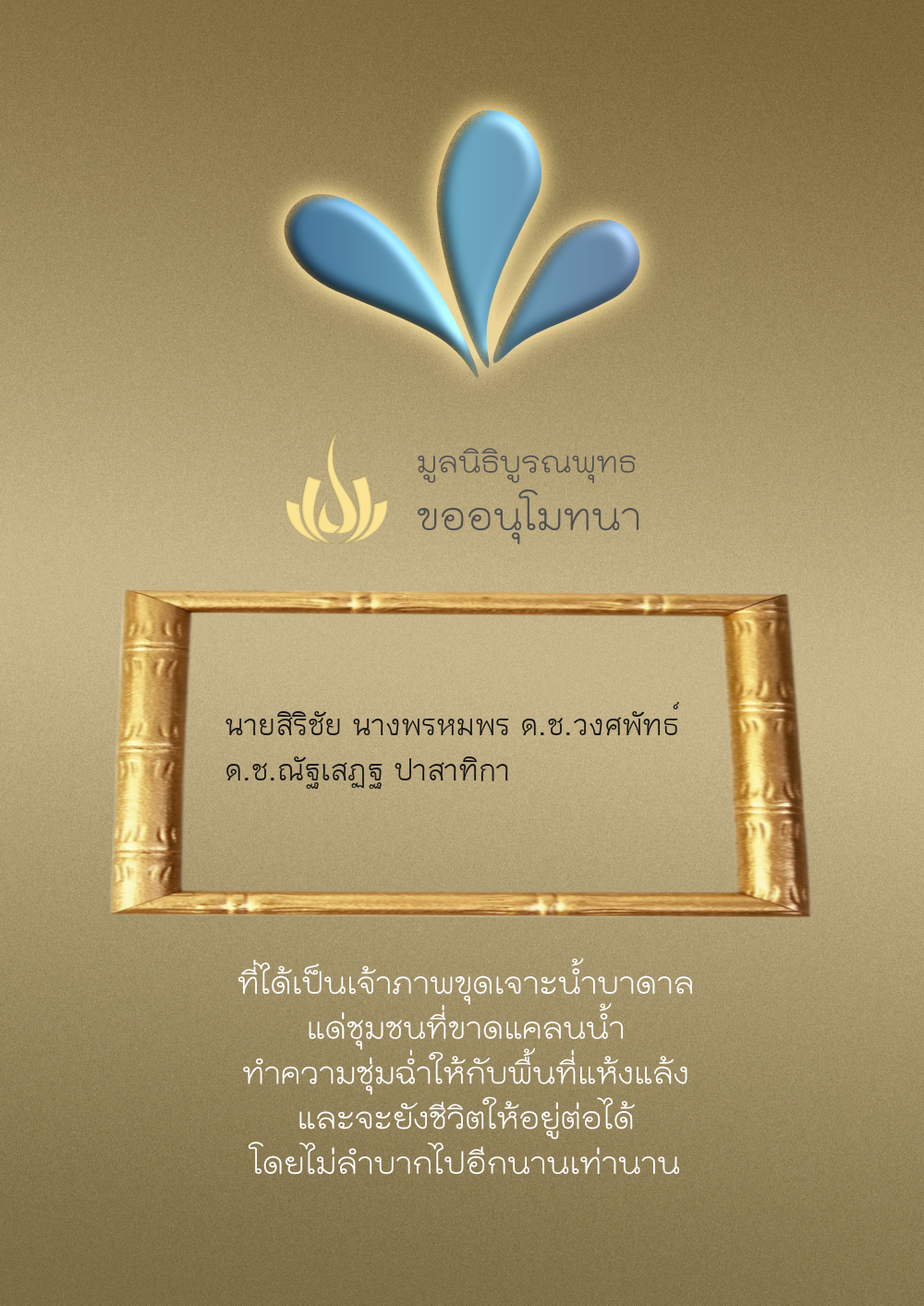 | ลำดับที่ 35 | ธงชัย-สุเพ็ญพร-มาคุณ เกษมสุขสกุล | 1,000.00 บาท | ภาพที่ระลึก |