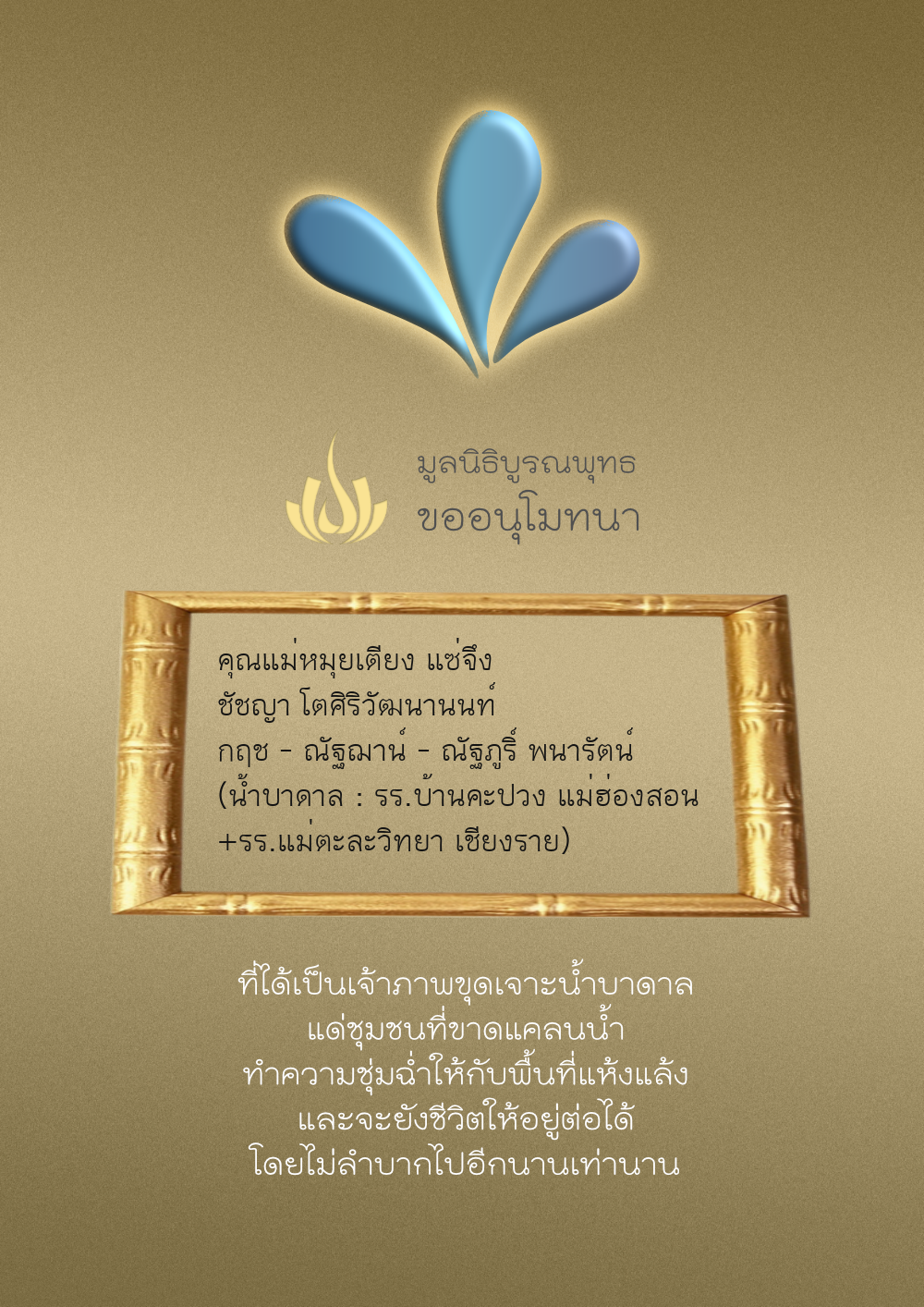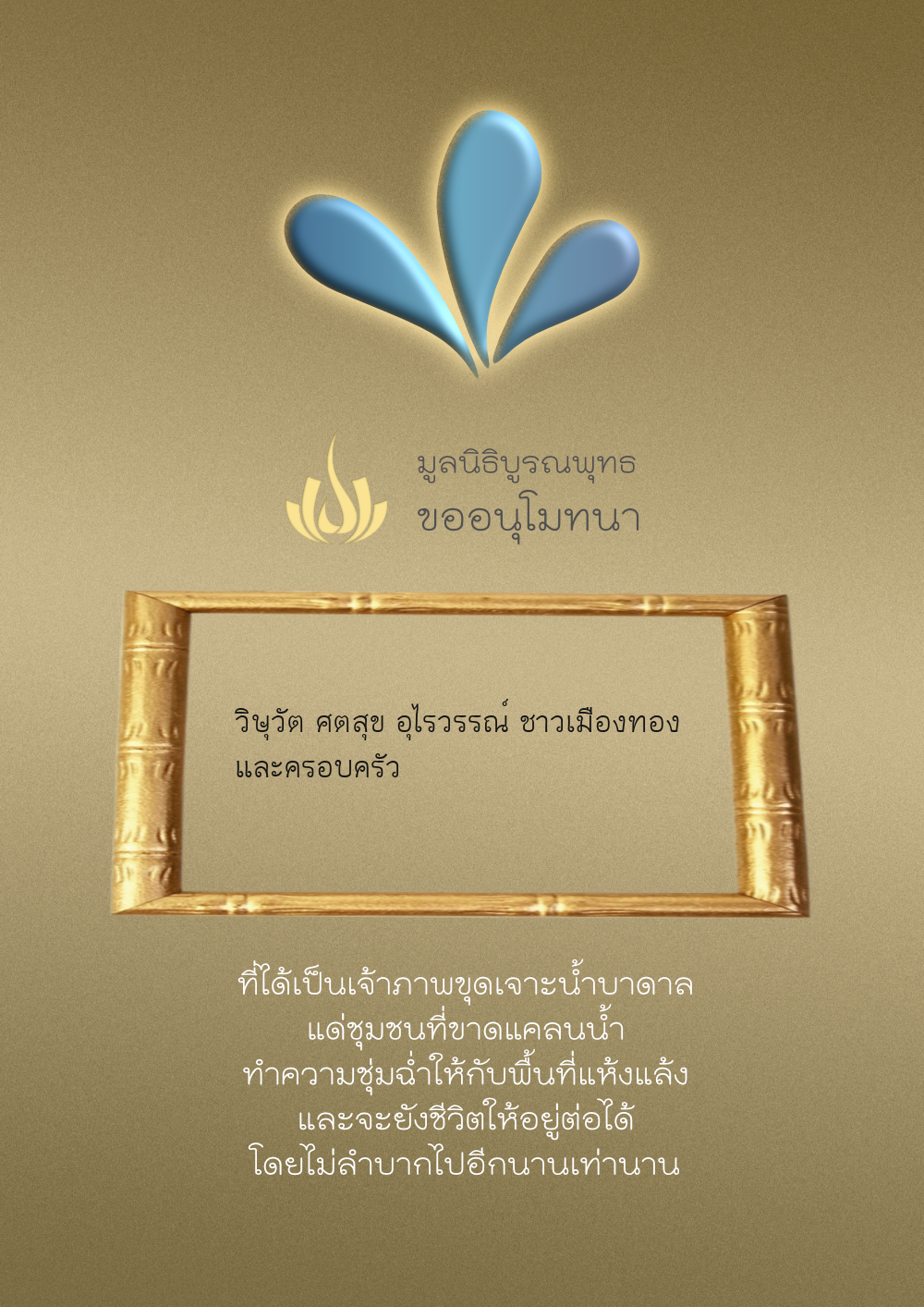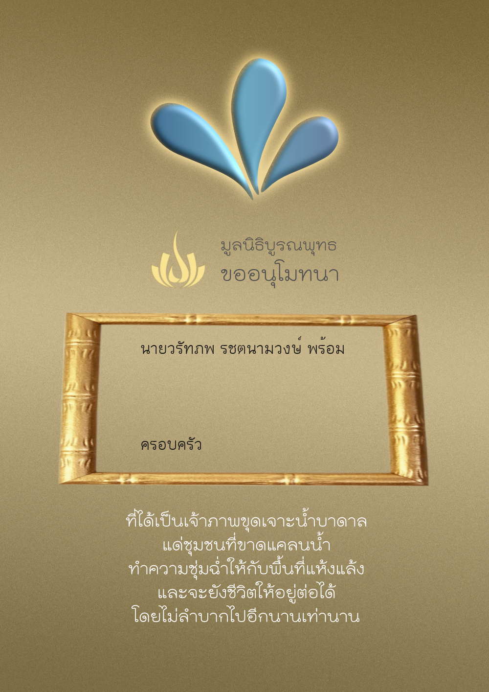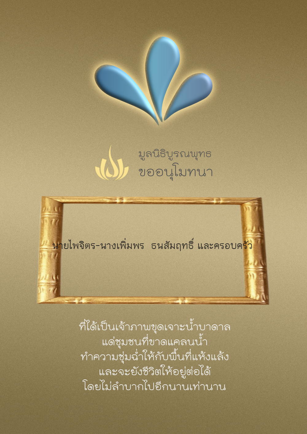 | ลำดับที่ 68 | ครอบครัวตั้งจิตเจริญชัย | 200.00 บาท | ภาพที่ระลึก |