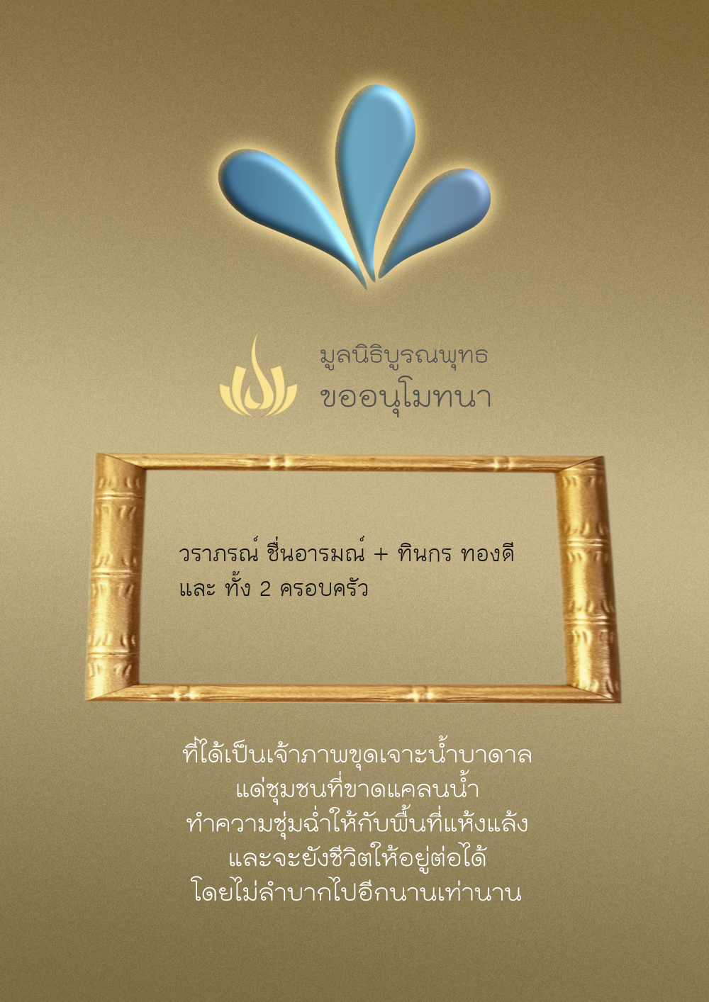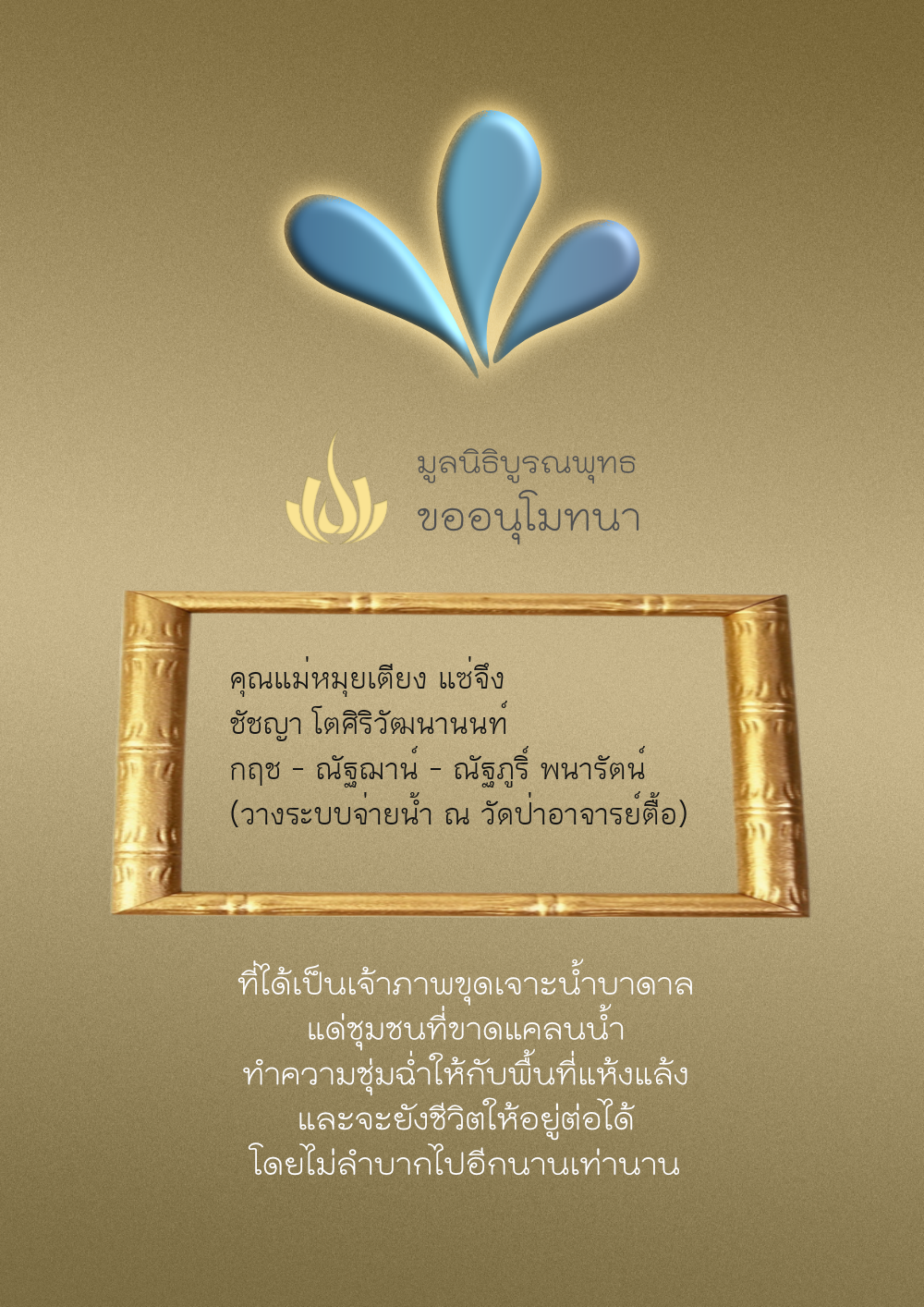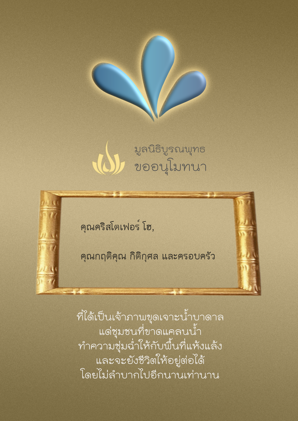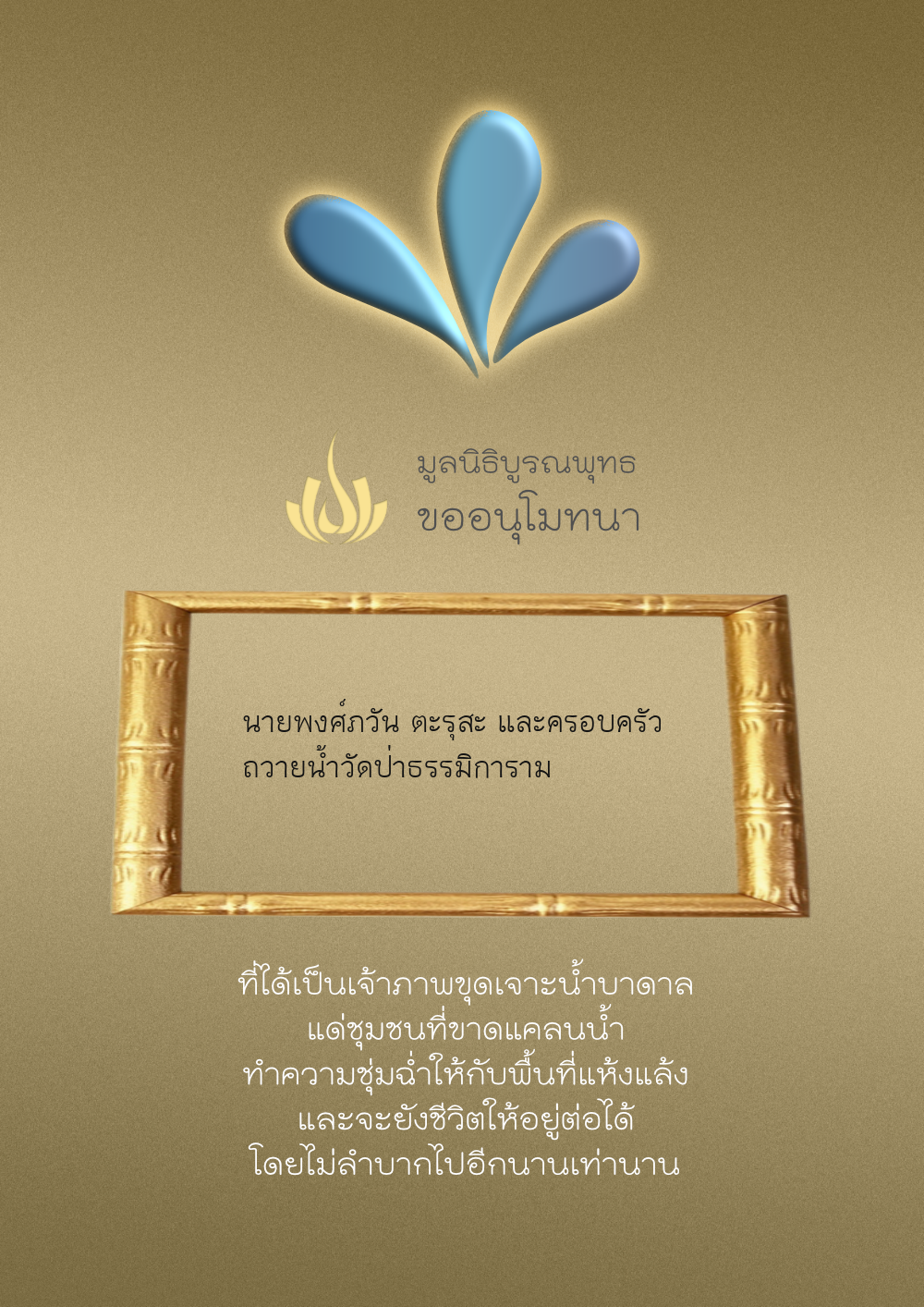 | ลำดับที่ 68 | ครอบครัวตั้งจิตเจริญชัย | 200.00 บาท | ภาพที่ระลึก |