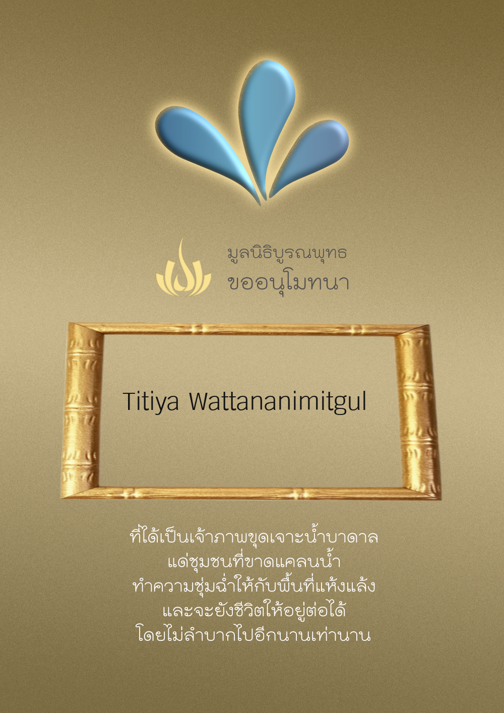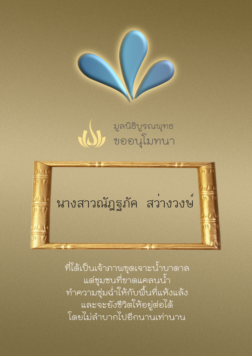 | ลำดับที่ 4316 | ณัฐ | 100.00 บาท | ภาพที่ระลึก |