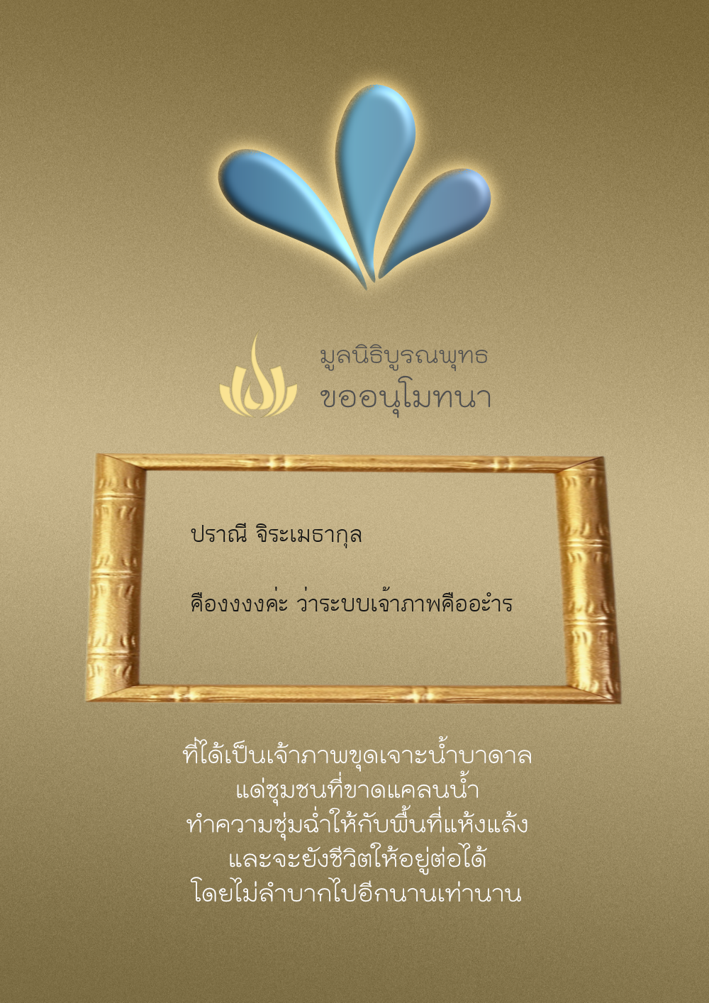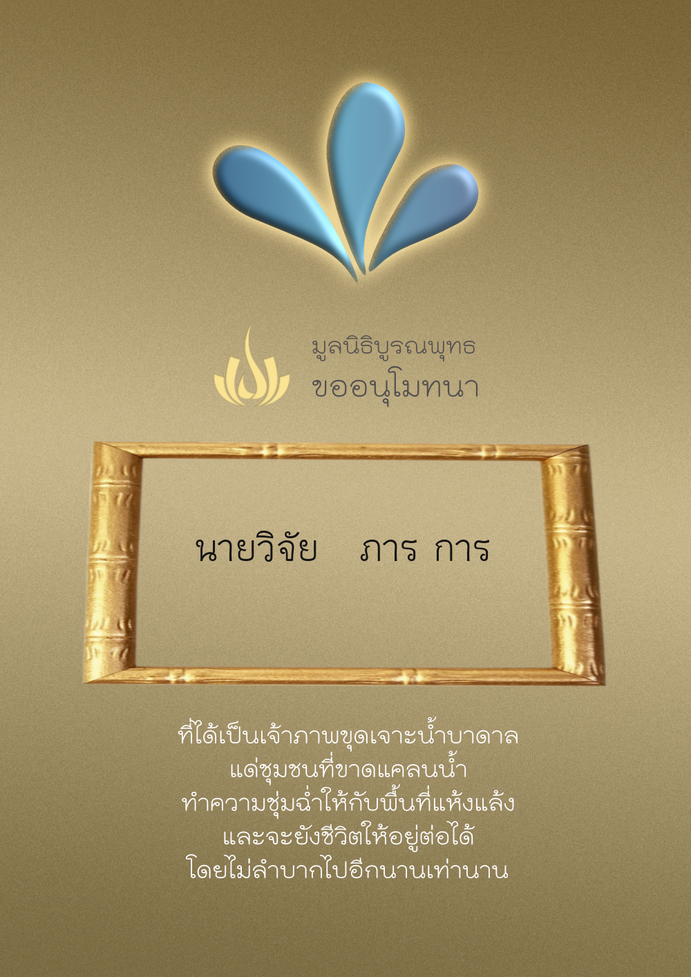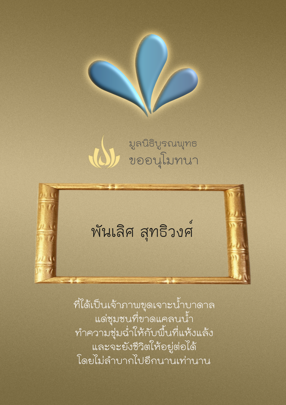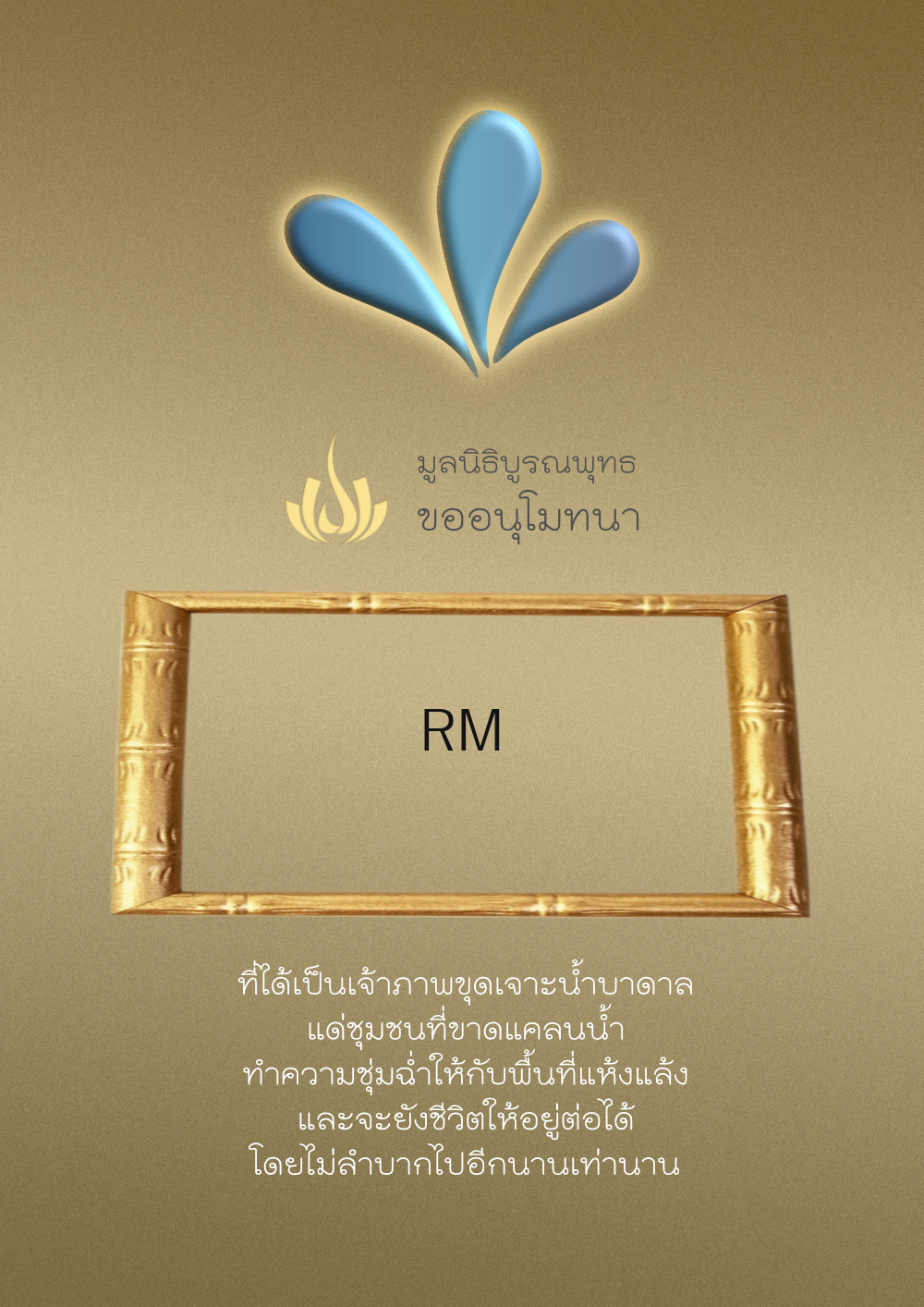 | ลำดับที่ 4327 | ผู้ไม่ประสงค์ออกนาม | 20.00 บาท | ภาพที่ระลึก |