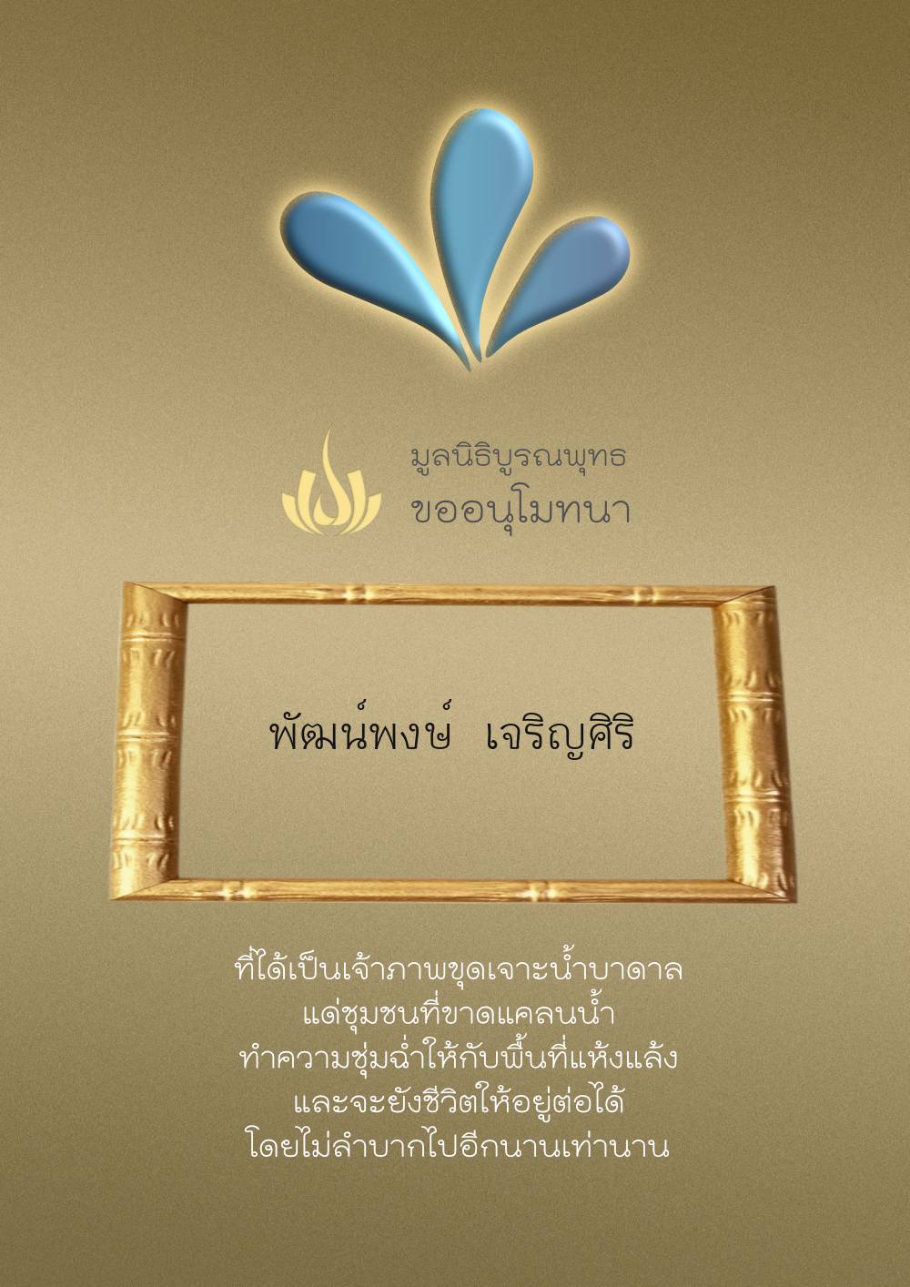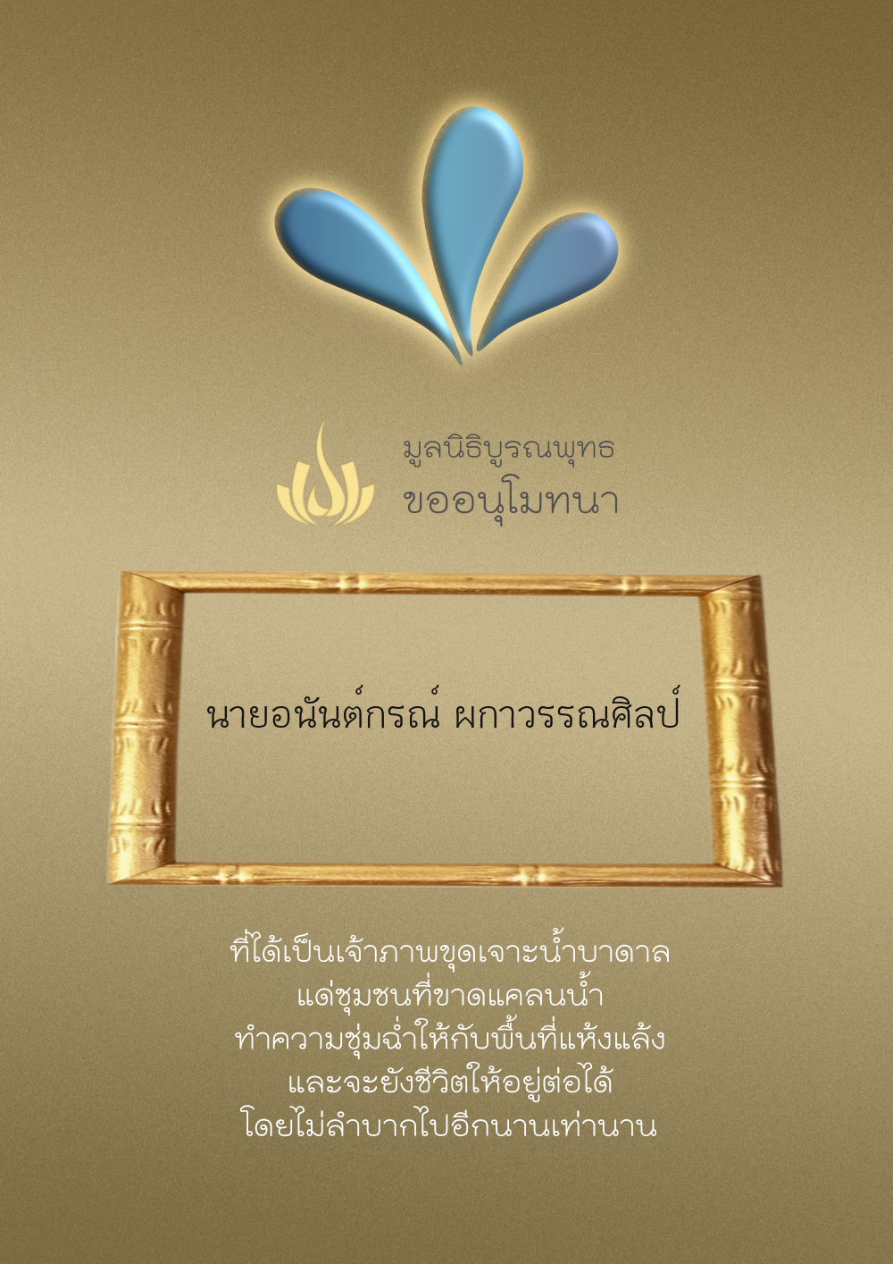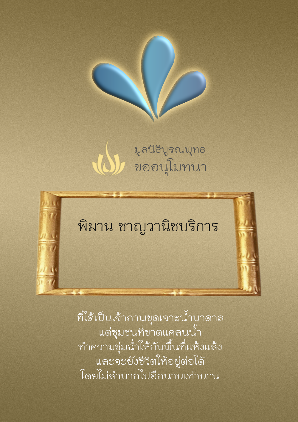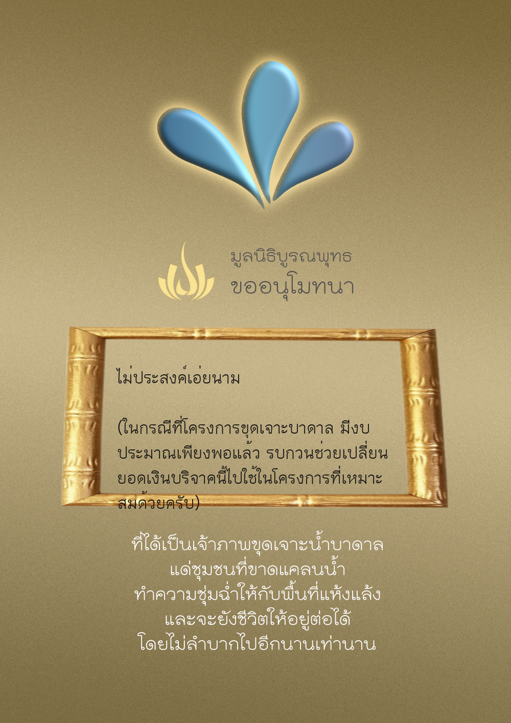| ลำดับที่ 4327 | ผู้ไม่ประสงค์ออกนาม | 20.00 บาท | ภาพที่ระลึก |