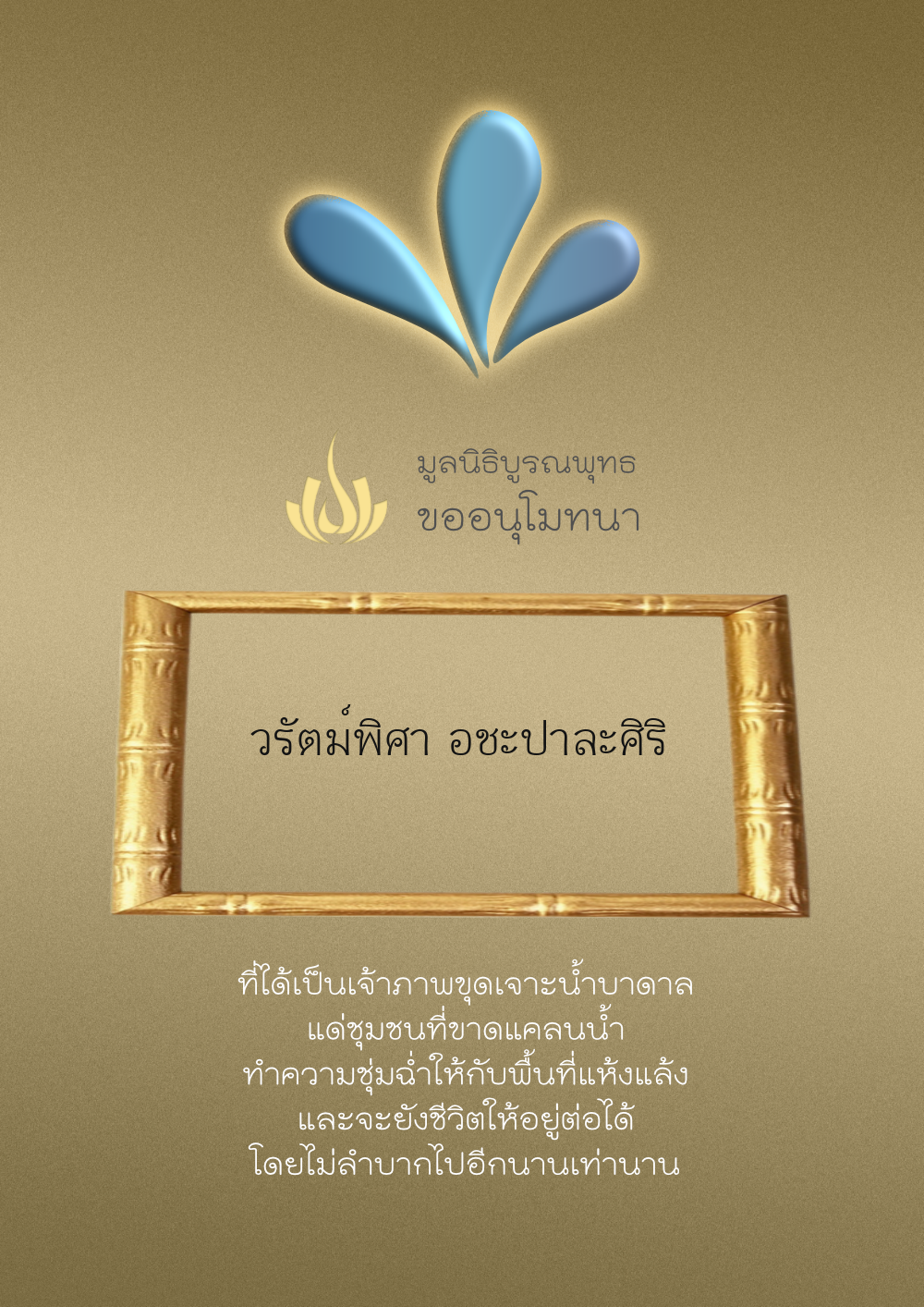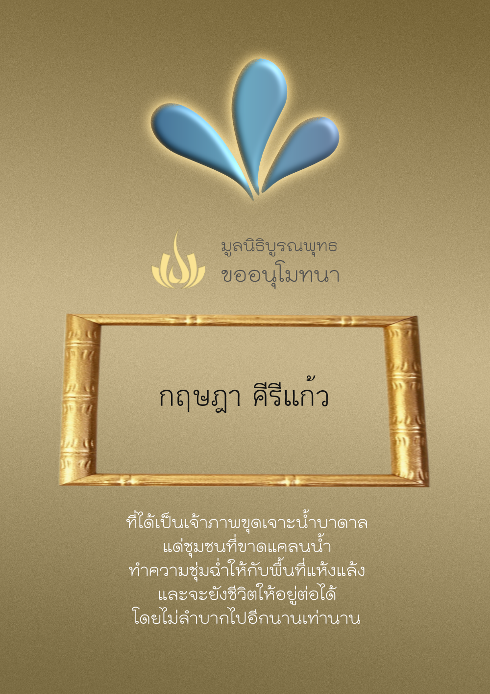 | ลำดับที่ 4332 | พรชมพู ราชธา | 1,000.00 บาท | ภาพที่ระลึก |