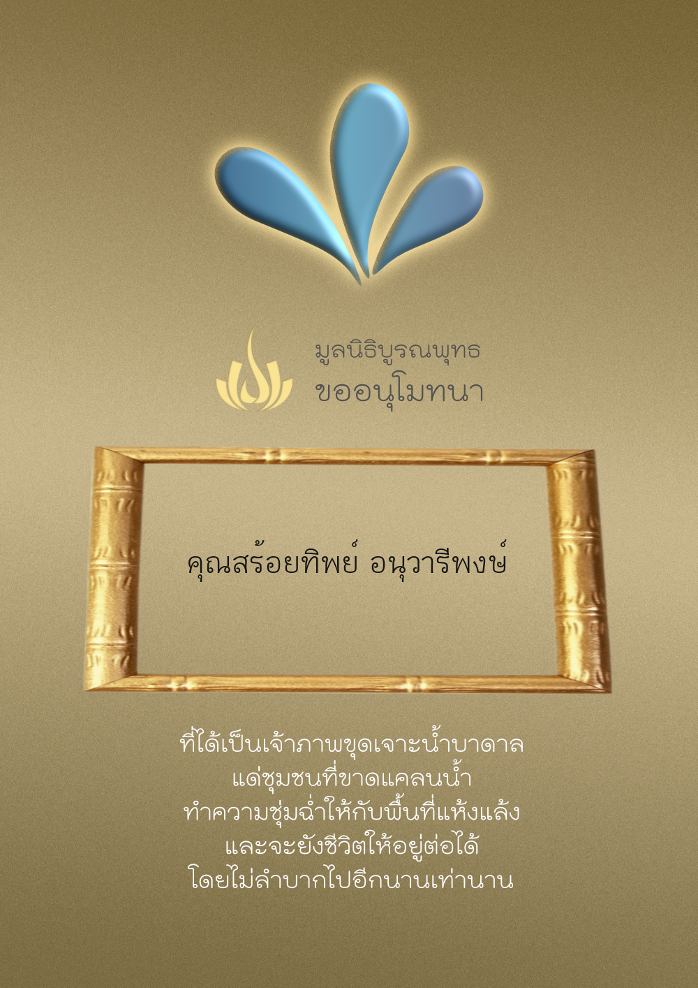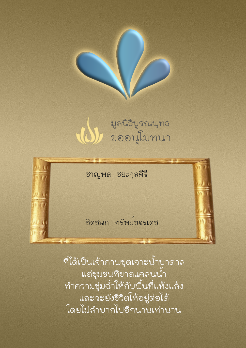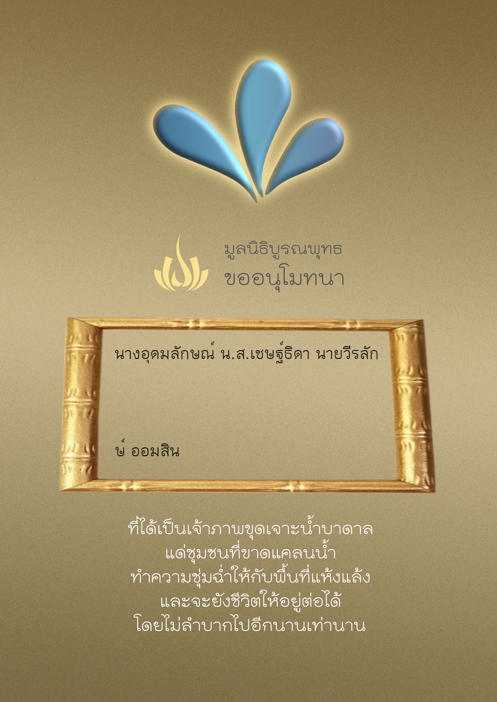| ลำดับที่ 56 | นายศุภพงษ์ อุดมแก้วกาญจนา | 500.00 บาท | ภาพที่ระลึก |