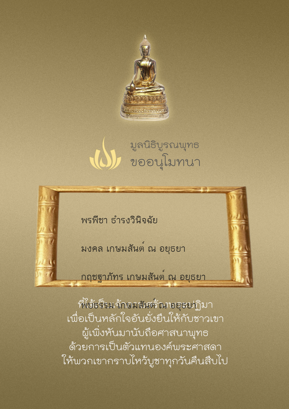 | ลำดับที่ 39 | ธญา อารยะทรงศักดิ์และครอบครัว | 850.00 บาท | ภาพที่ระลึก |