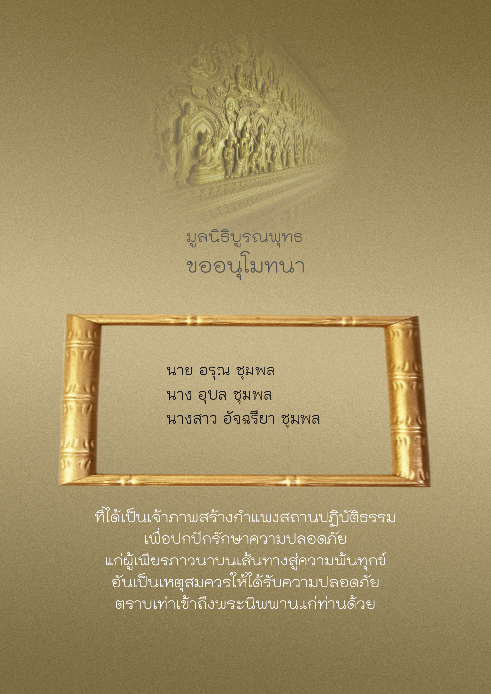 | ลำดับที่ 81 | ทศพล ศุภรัตน์ และครอบครัว | 500.00 บาท | ภาพที่ระลึก |